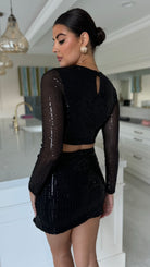 Morrow Black Sequin Mini Skirt & Crop Top Co Ord