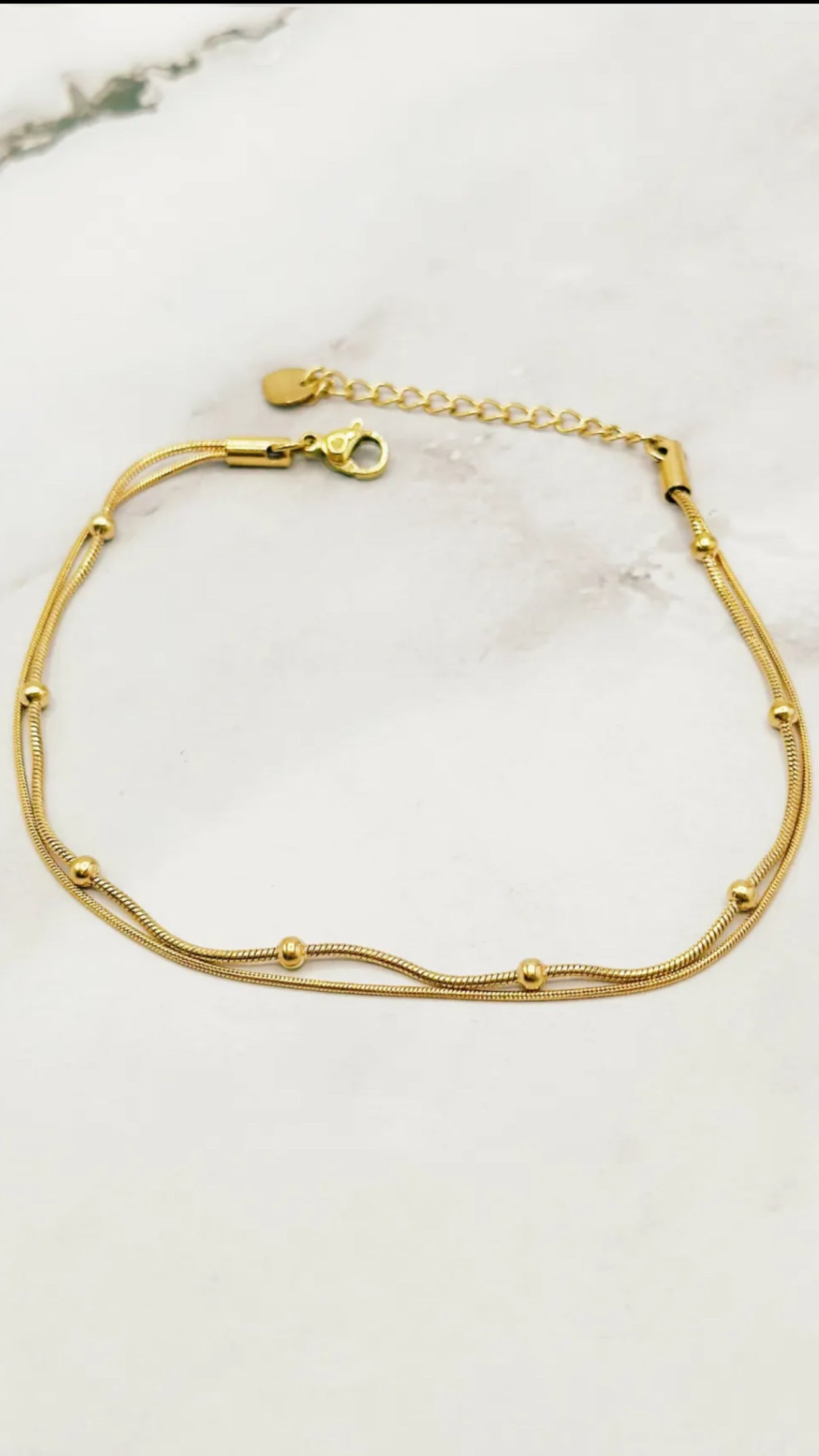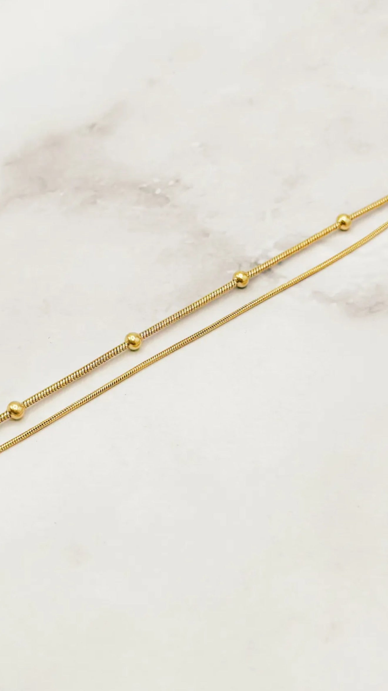 Add an extra layer of style to your look with the Fatima Gold Double Layered Anklet. The unique dual chain design and playful sphere accents add a lighthearted and stylish touch to any outfit.