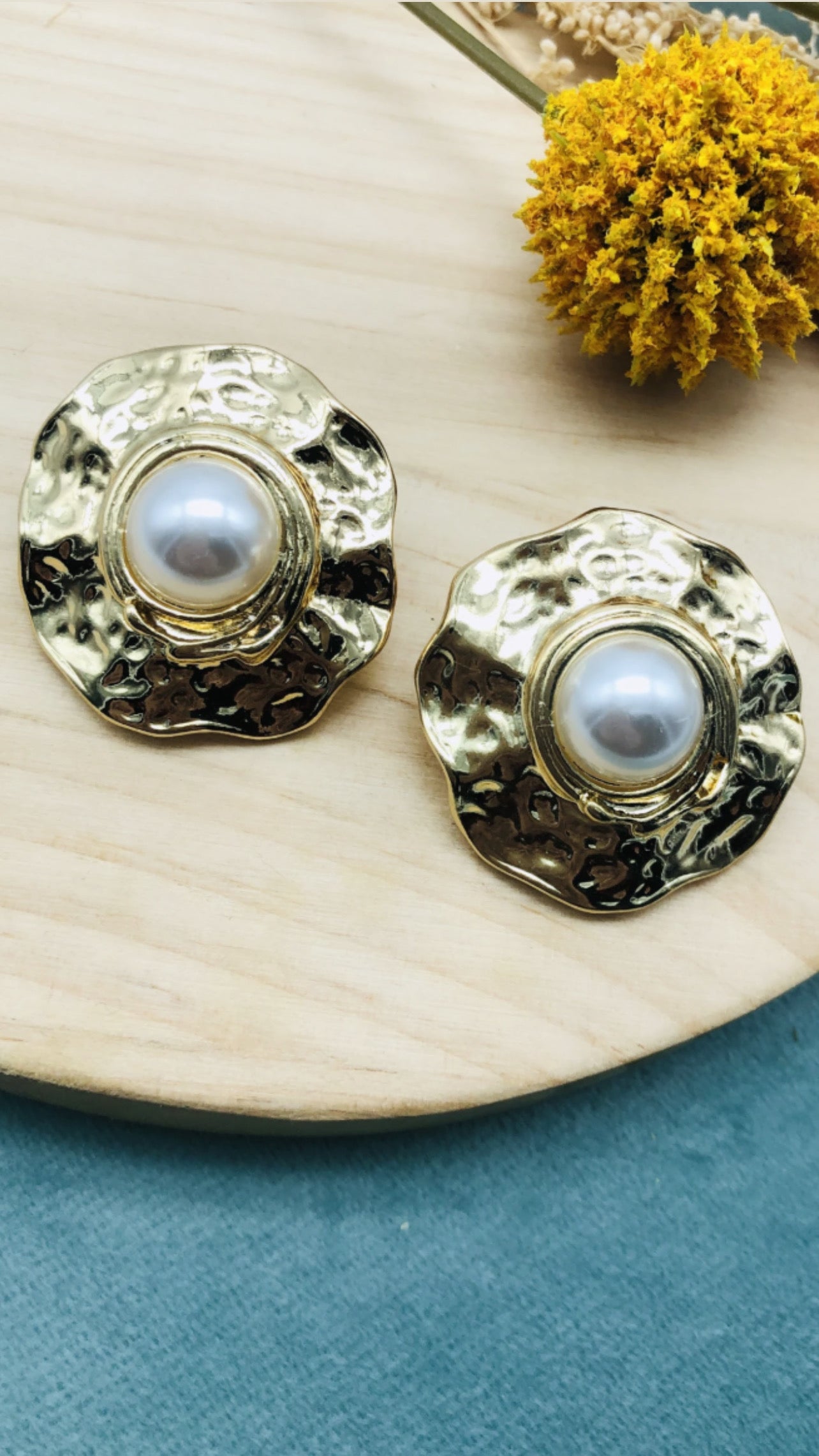 Helene Gold & Pearl Detail Wavy Design Earrings