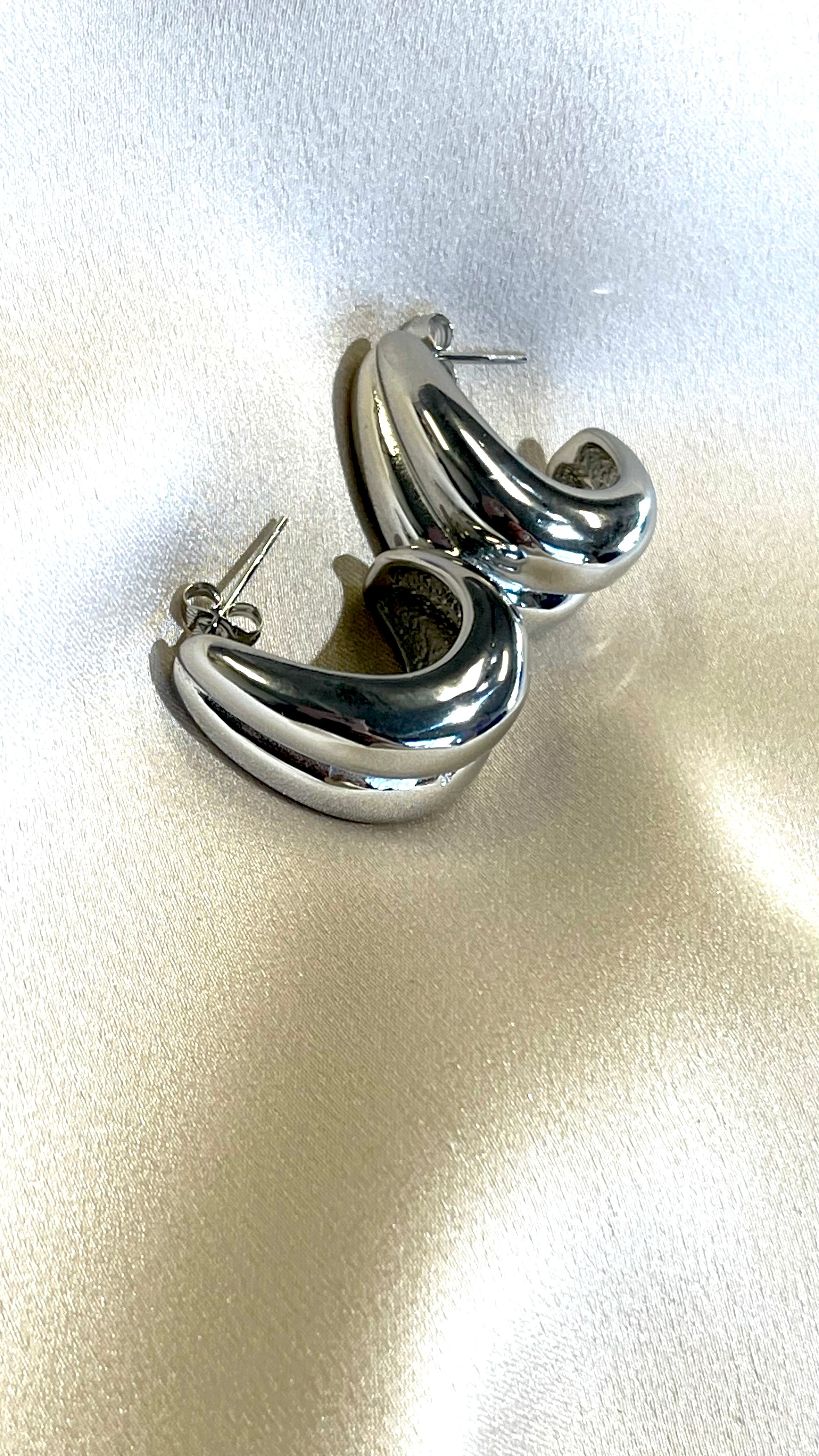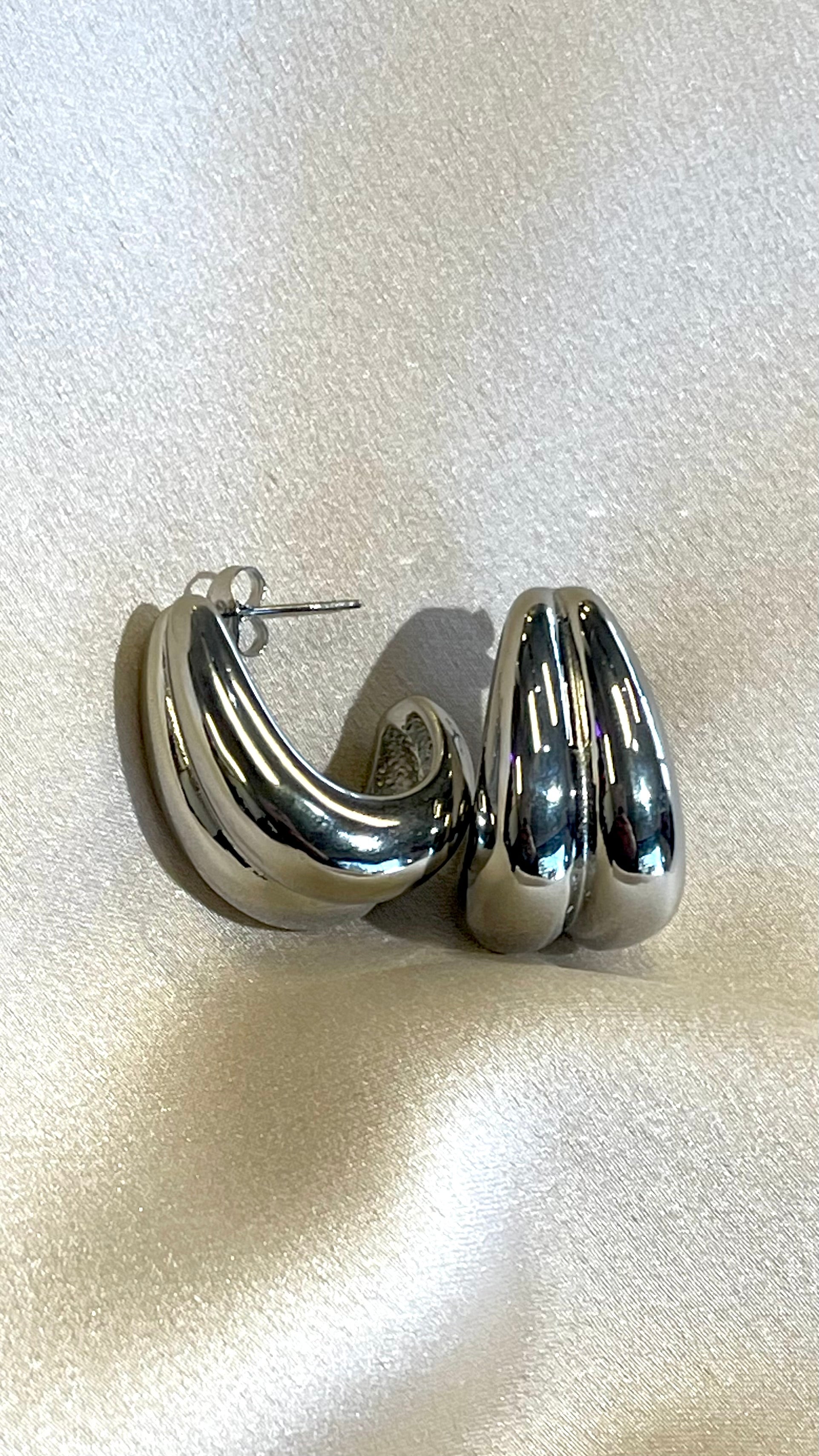 Add some extra shine to your look with these Jackie Silver Large Shiny Double Layer Style Earrings. Made with durable stainless steel, they are the perfect addition to any outfit. With a double layer design, these earrings will take your style to the next level.