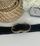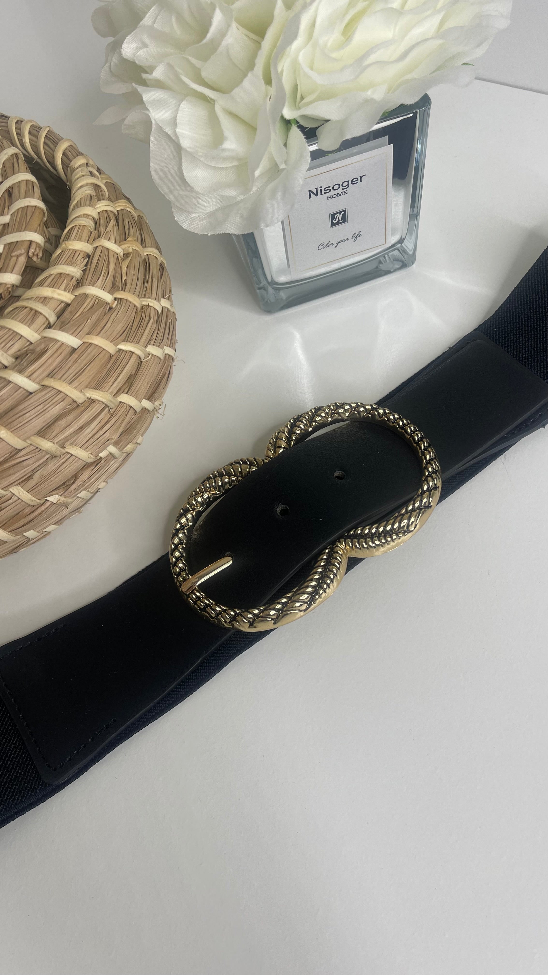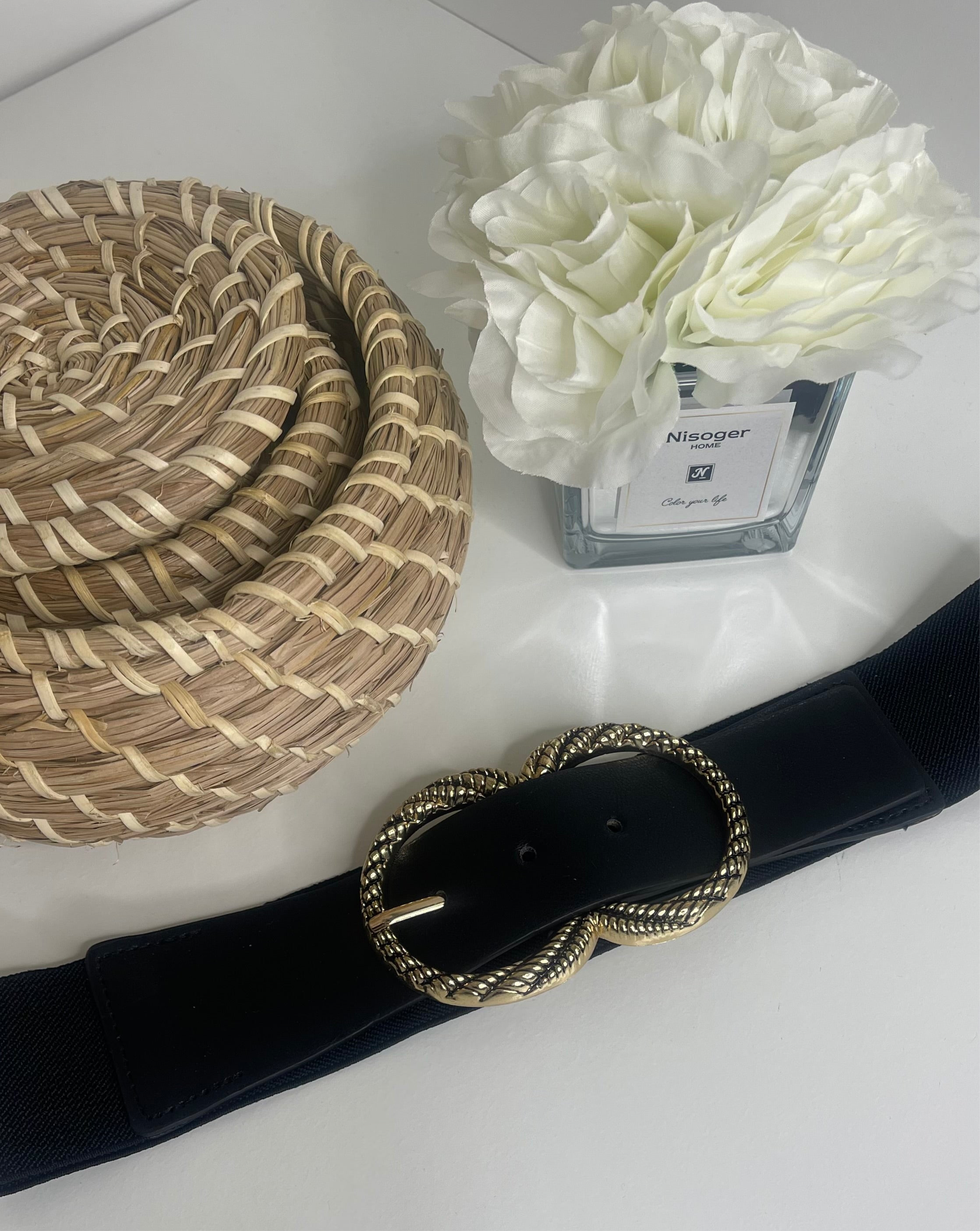 Add some 🔥 to your outfit with the Jaxine Black Gold Buckle Elasticated Belt! This 5cm wide belt brings both style and functionality with its adjustable elasticated design and sleek black and gold buckle. Upgrade your look with ease!