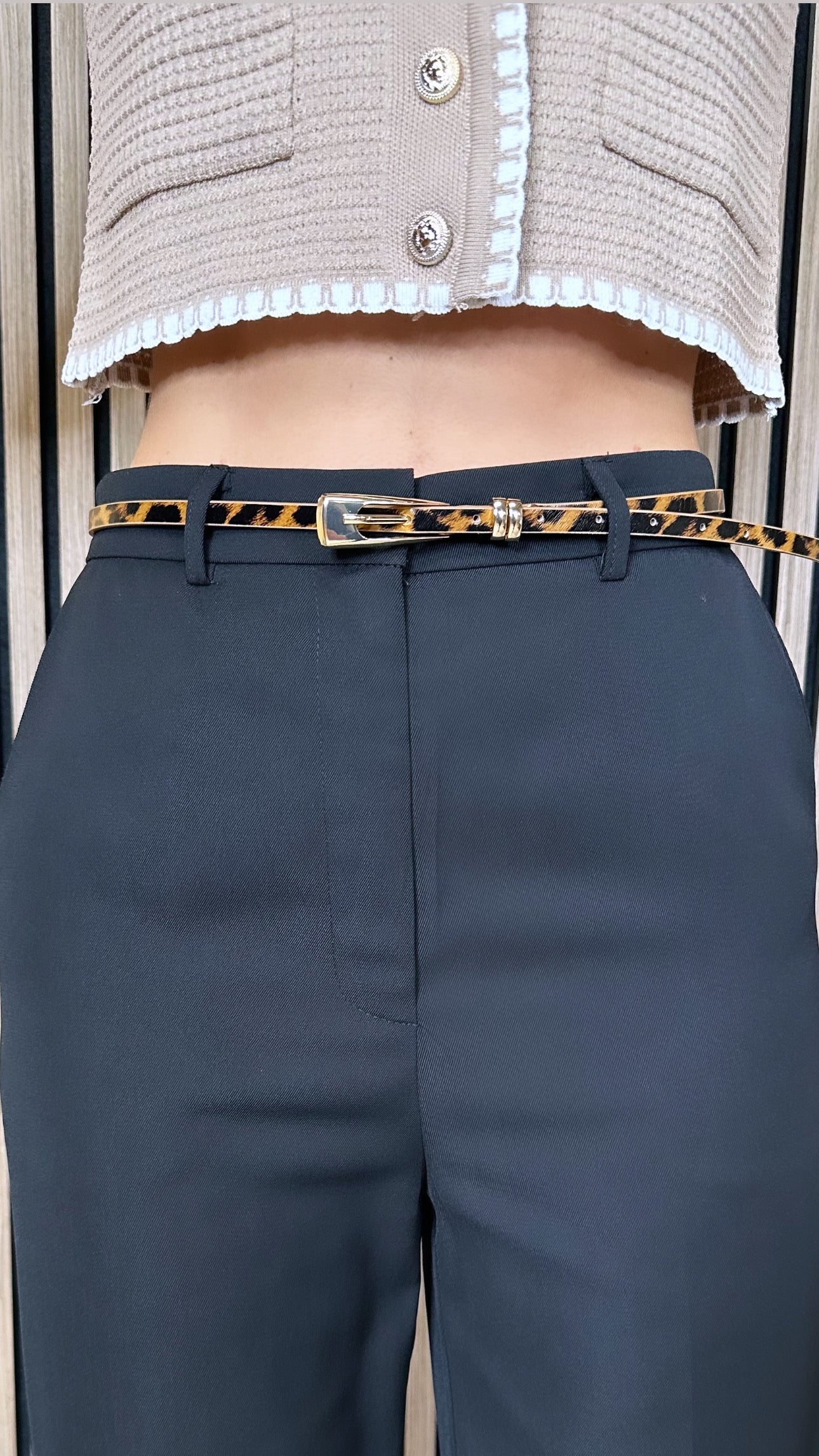 Add some edge to your look with the Lizzy Animal Print Belt! Featuring a sleek black design and a bold metal buckle, this belt is perfect for adding a touch of attitude to any outfit. Perfect for any fashionista (or wannabe) 😉!
