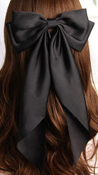 Add a touch of playful flair to your hairstyle with the Miller Black Oversized Satin Hair Bow Clip! Featuring an exaggerated knot bow and a long tail for added drama, this hair clip will surely make a statement. Say goodbye to boring hair days and hello to quirky style! 💁♀️🎀