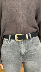 Sharon Black Chunky Belt With Gold Buckle