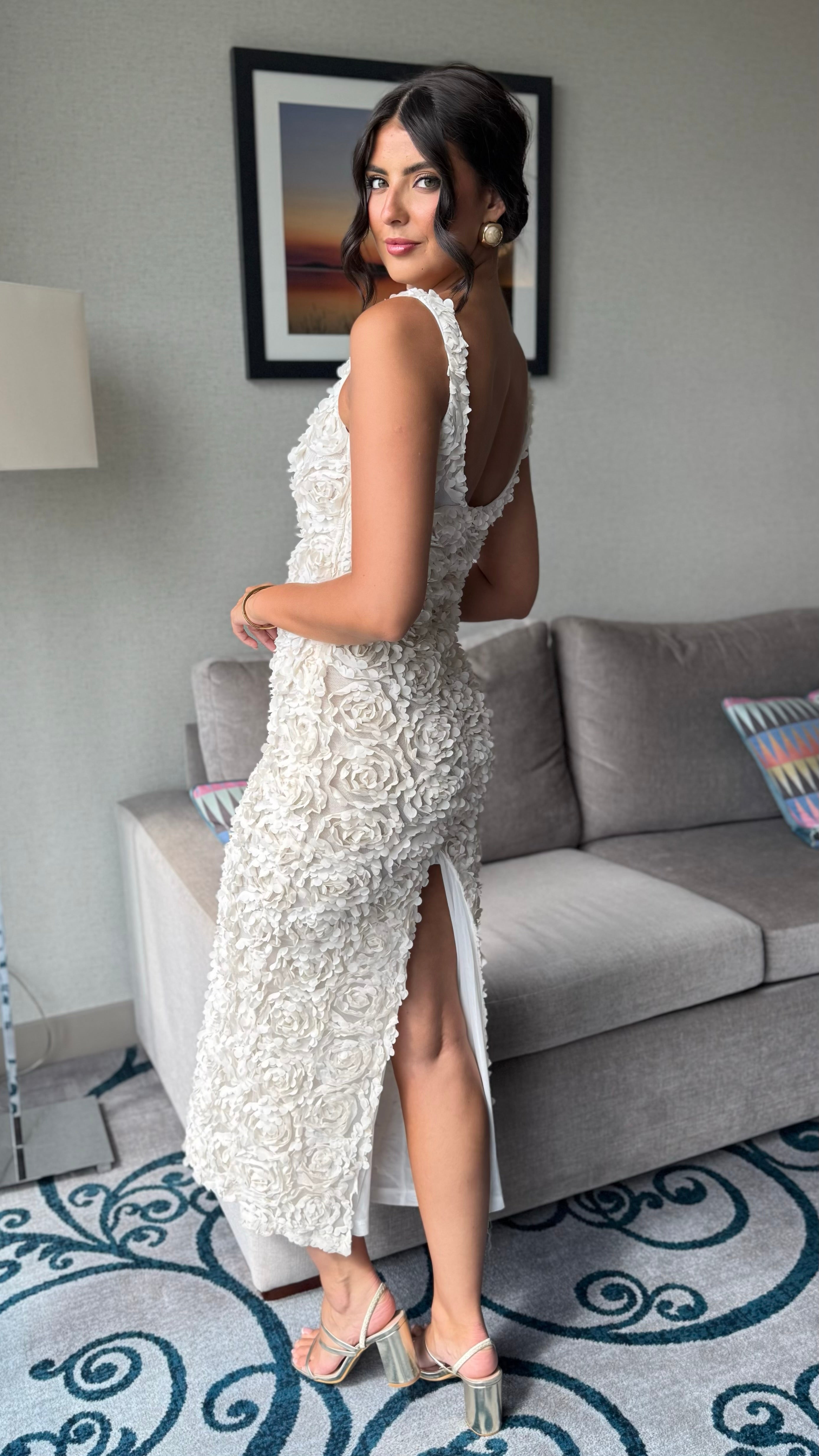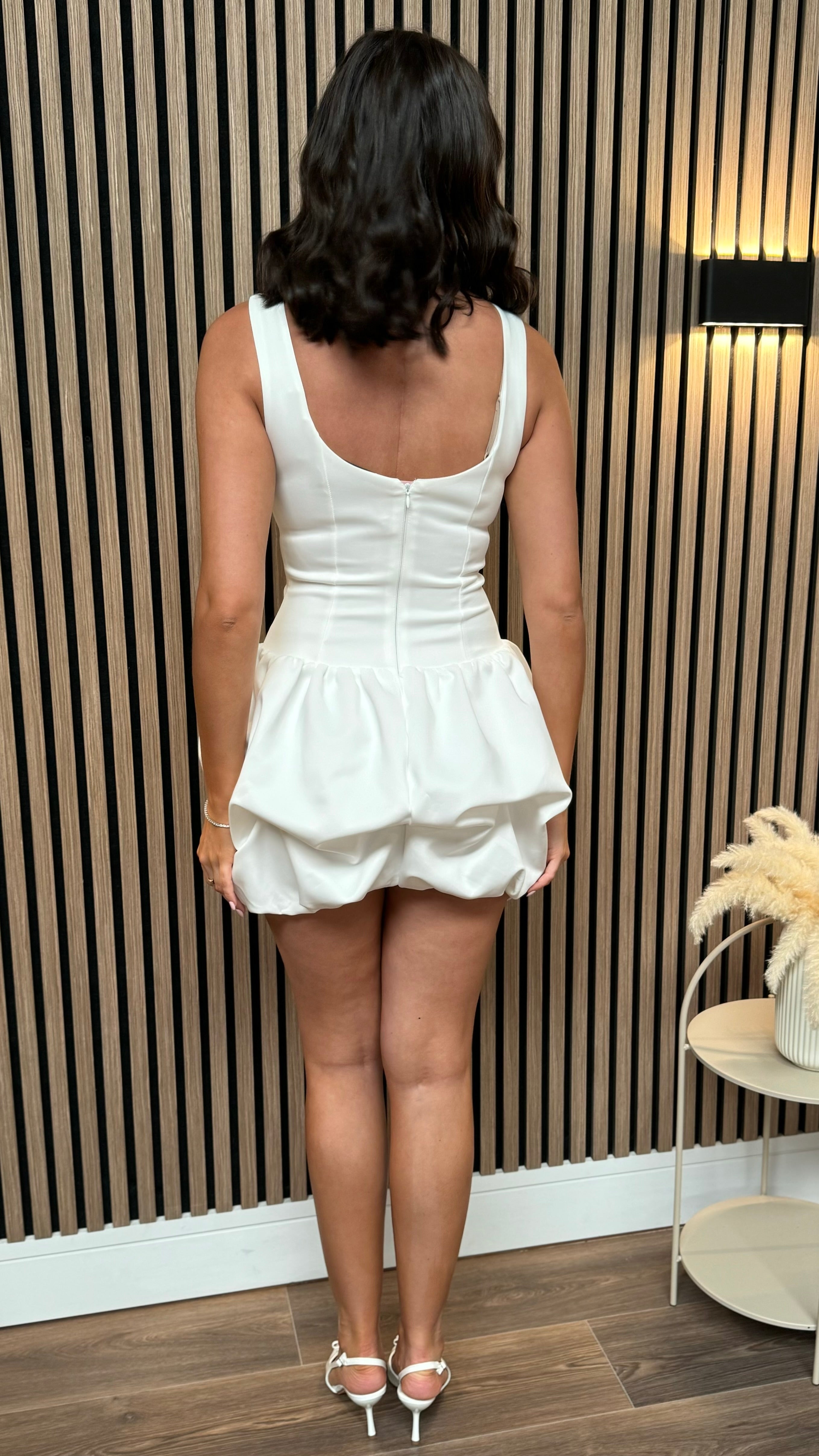Addy White Pearl Neckline Puff Ball Mini Dress