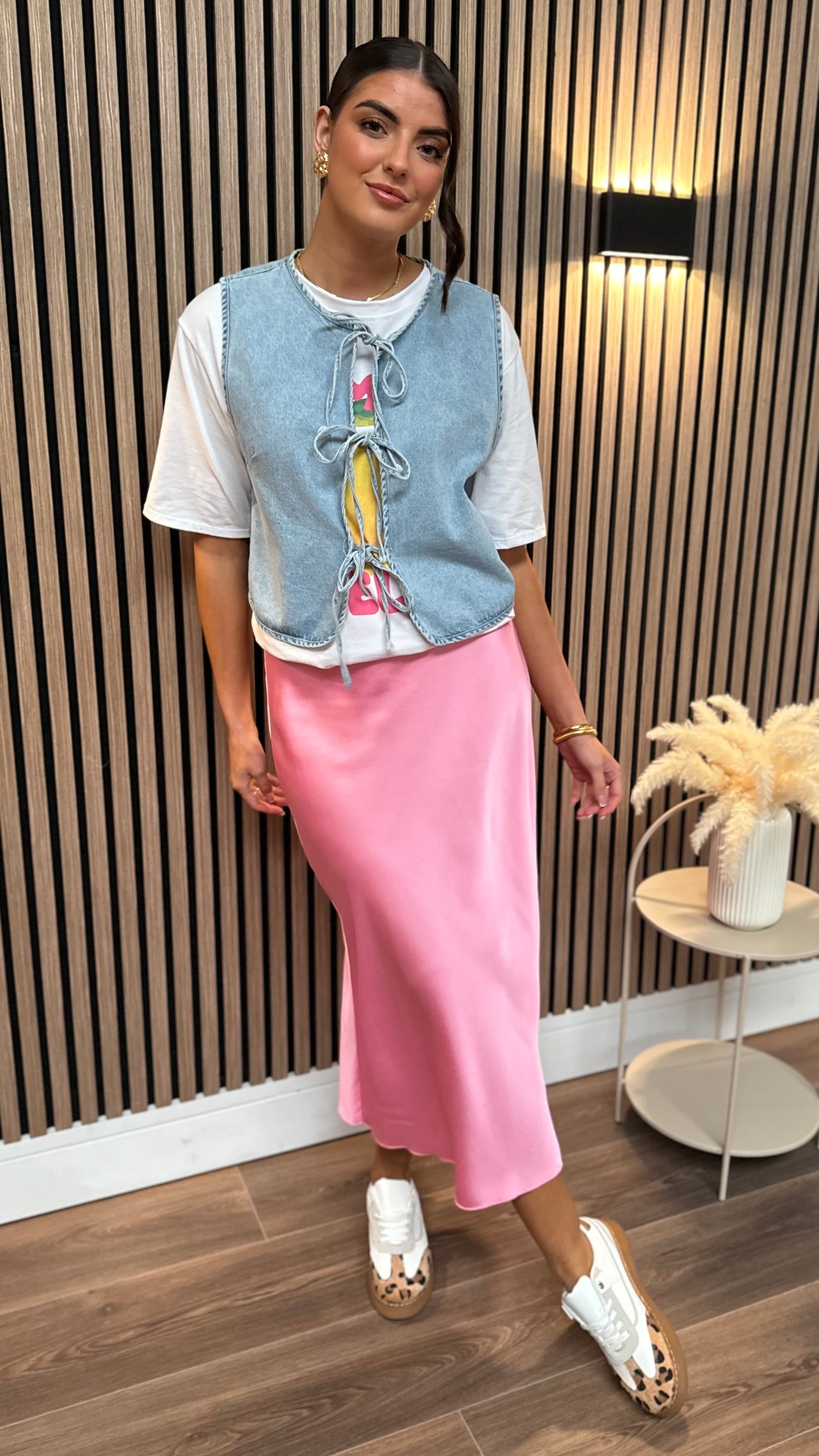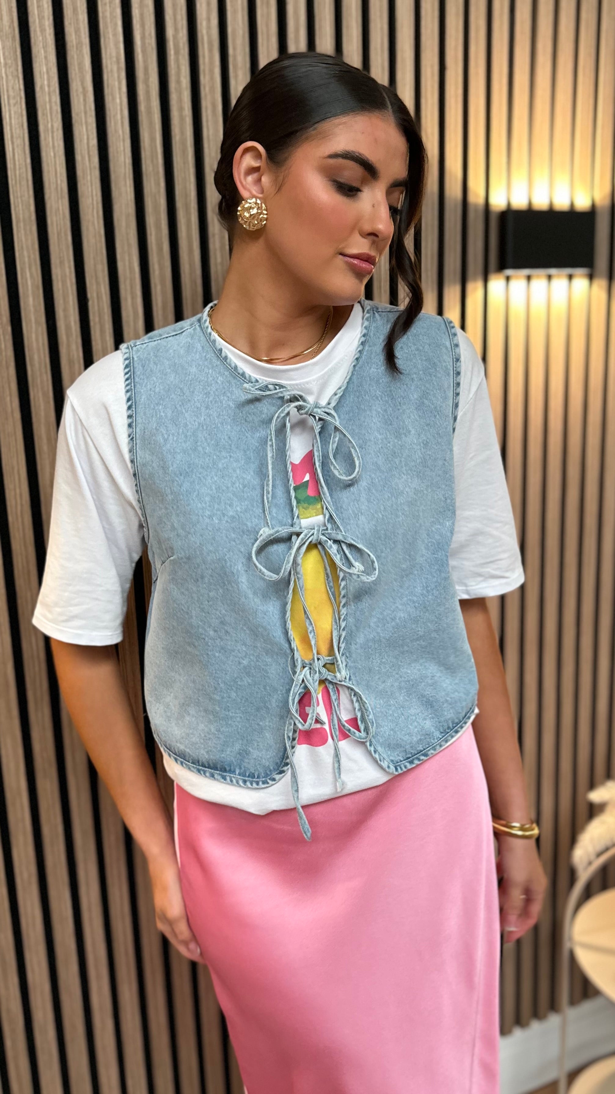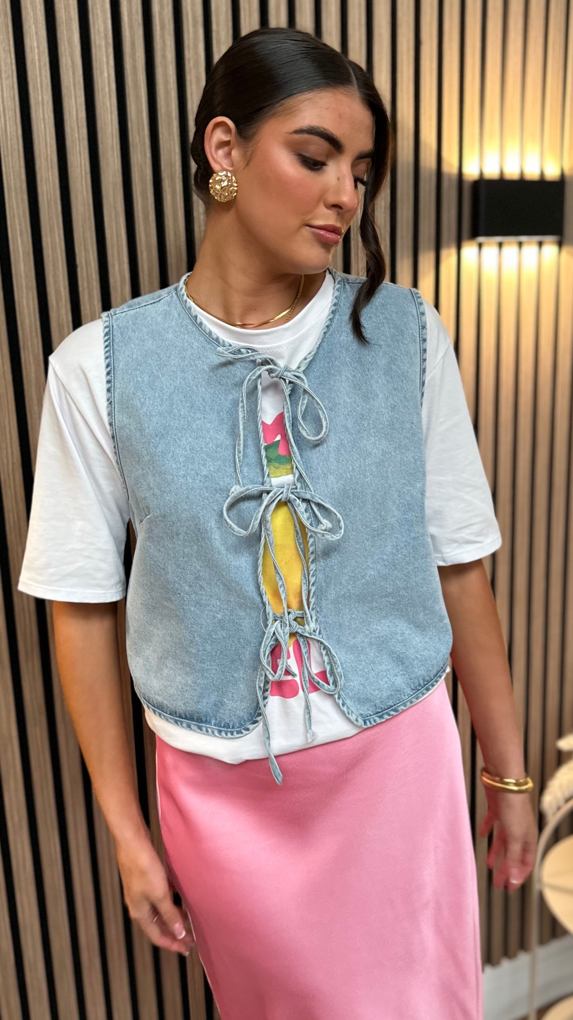 Gracen Light Blue Denim Tie Detail Waistcoat