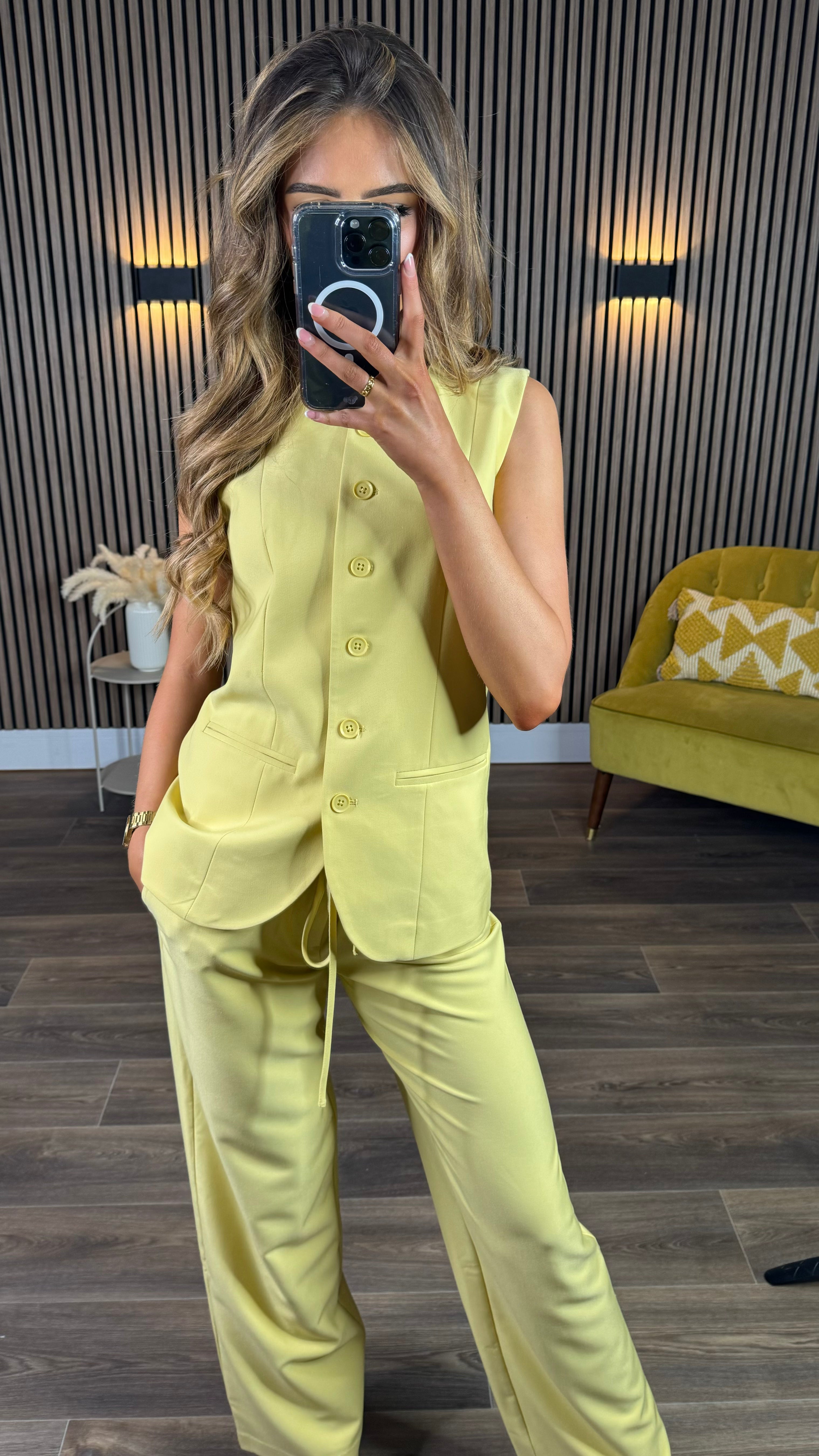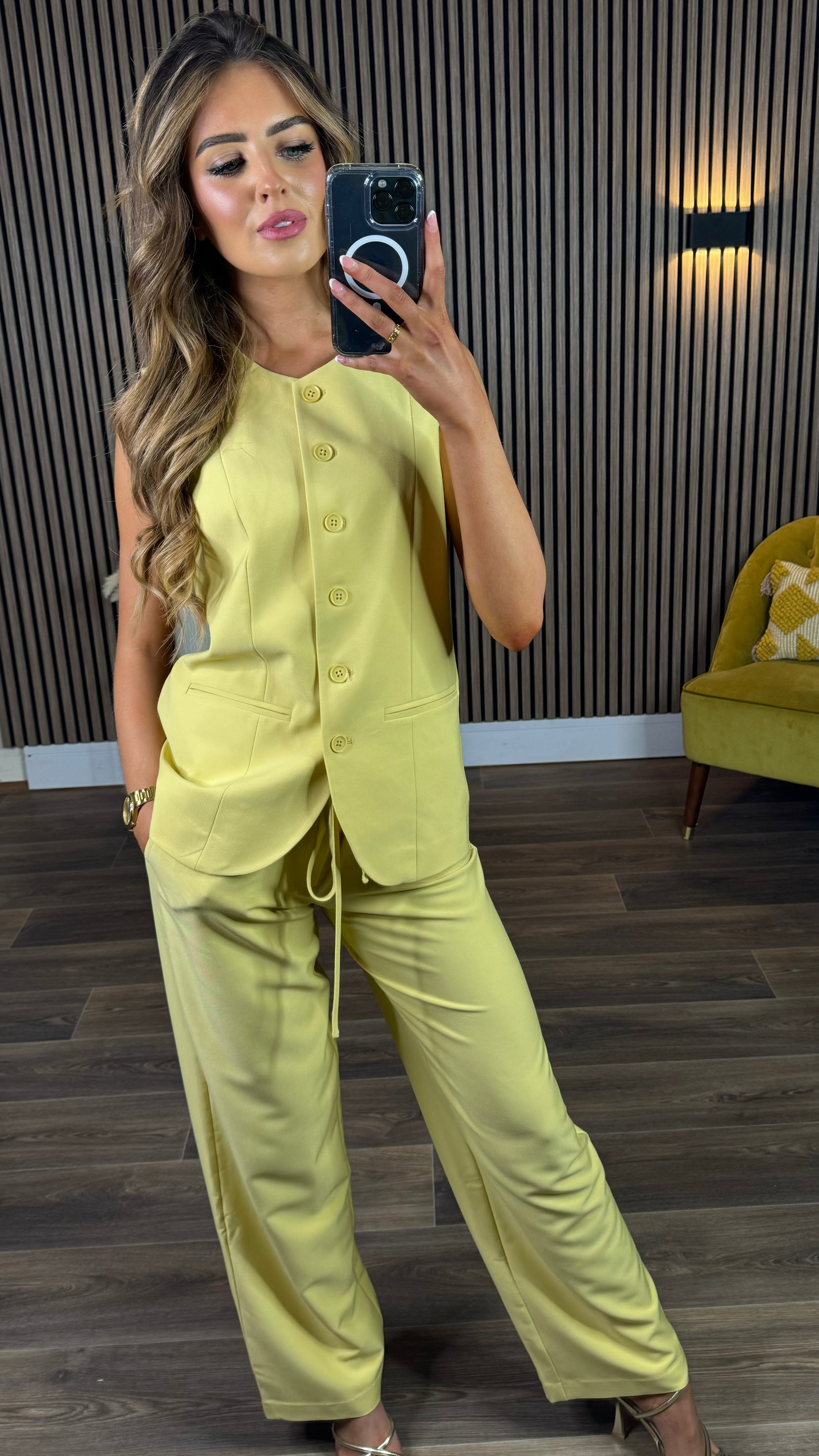 Gertie Yellow Button Down Longline Waistcoat