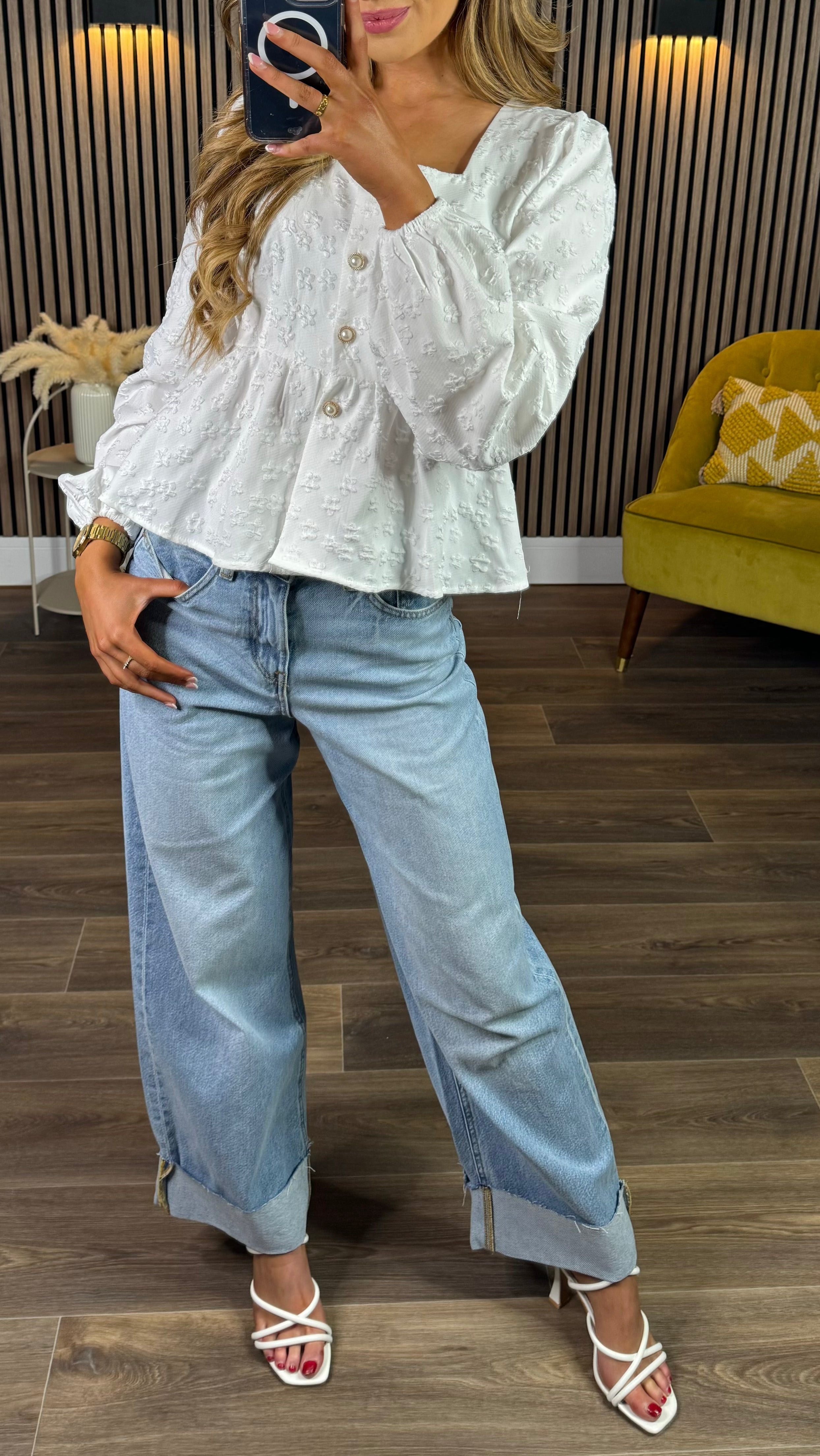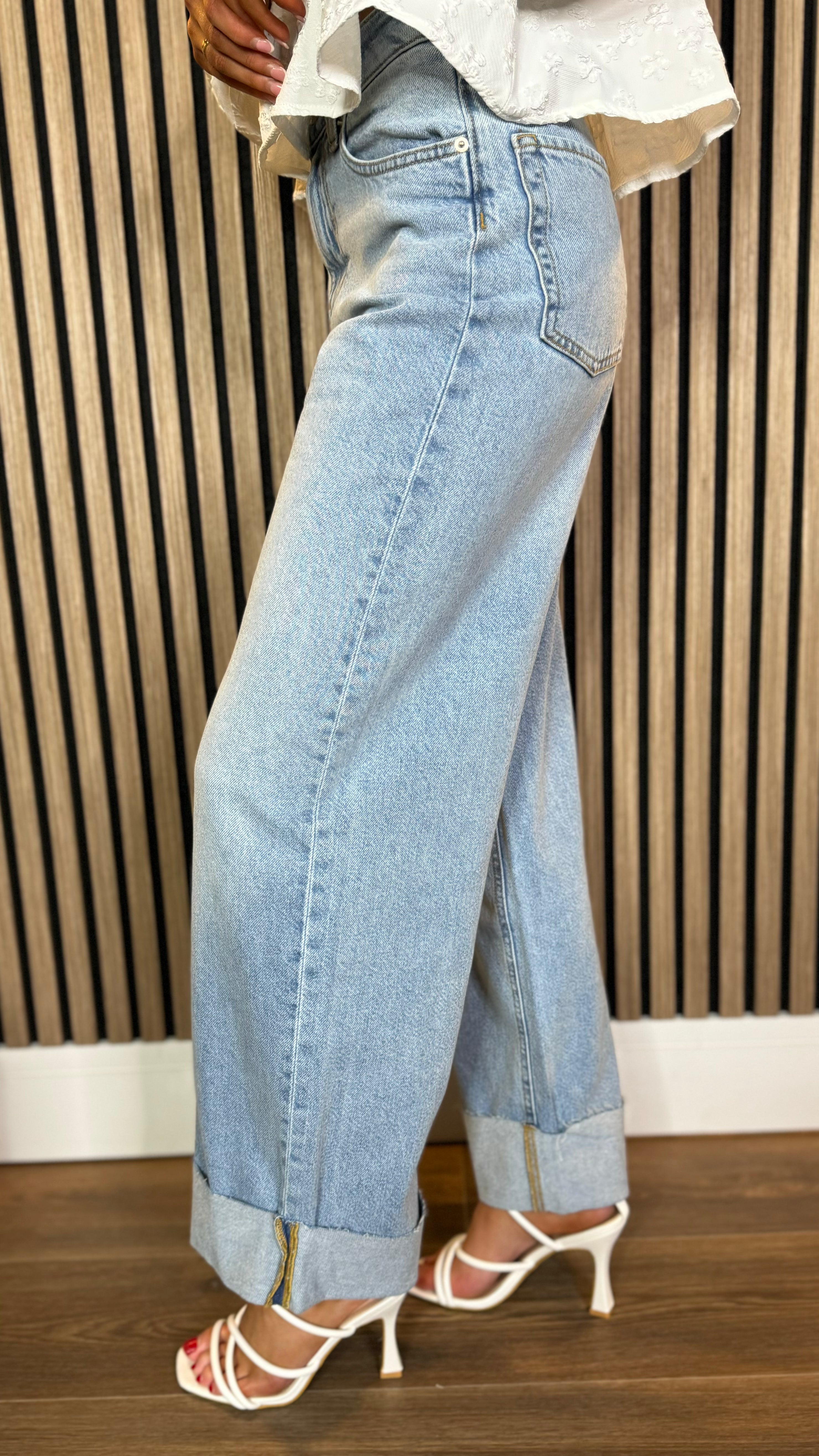 Sabrina Light Blue Wide Leg Turn Up Detail Jeans
