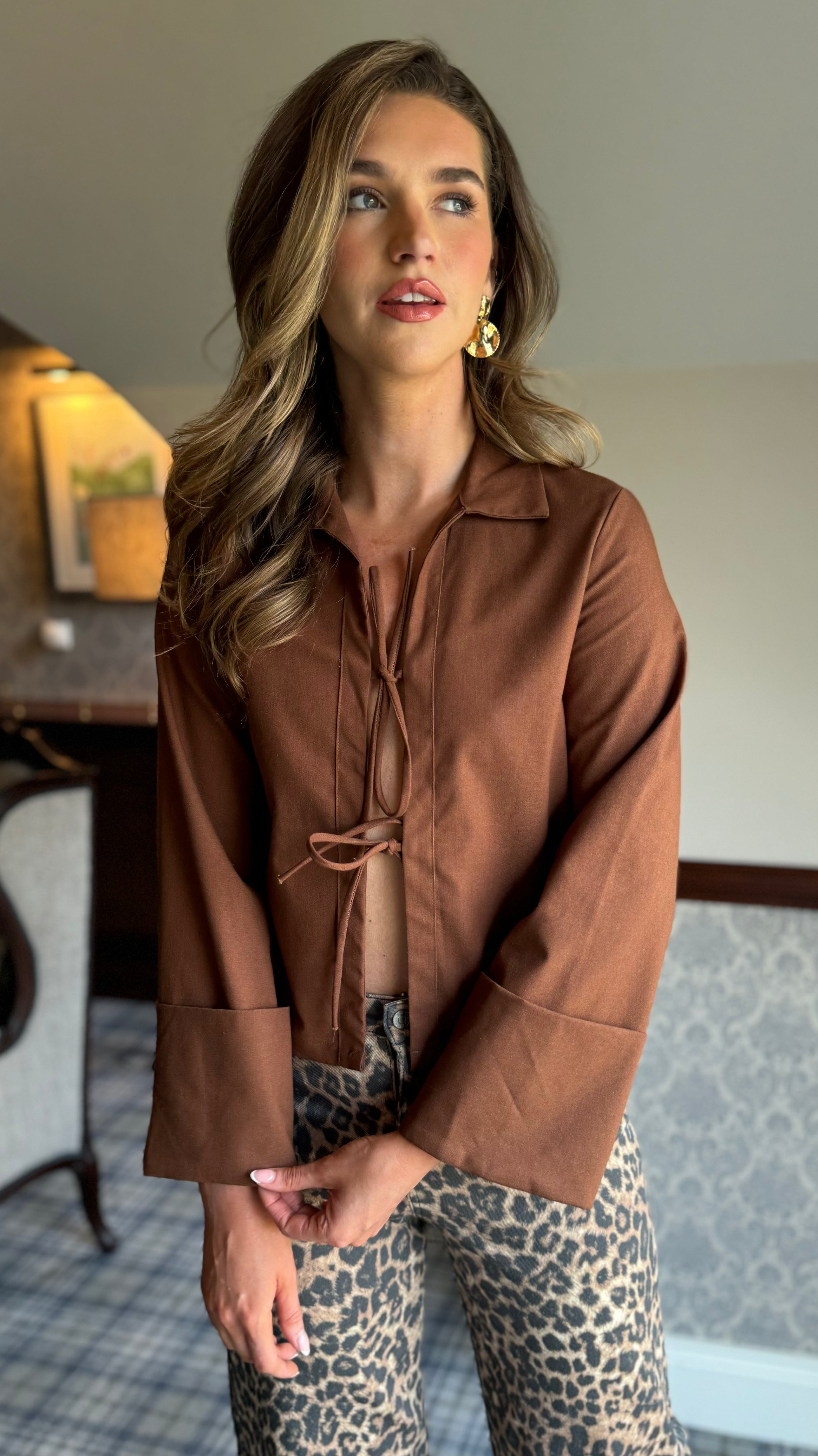 Oaklynn Chocolate Tie Detail Over Shirt