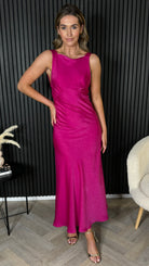 Amber Fuchsia Round Neck V Back Midi Dress