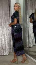 Embellished head to toe in sequins in a comfortable fabric that stretches as you move, this party dress will ensure all eyes are on you! This gorgeous Nelson Sequin Wrap Over Maxi Dress, featuring an elasticated waist with ruched detail, a wrap skirt with slit detail, and a wrap front top. Achieve this chic look with your favourite heels and matching clutch.