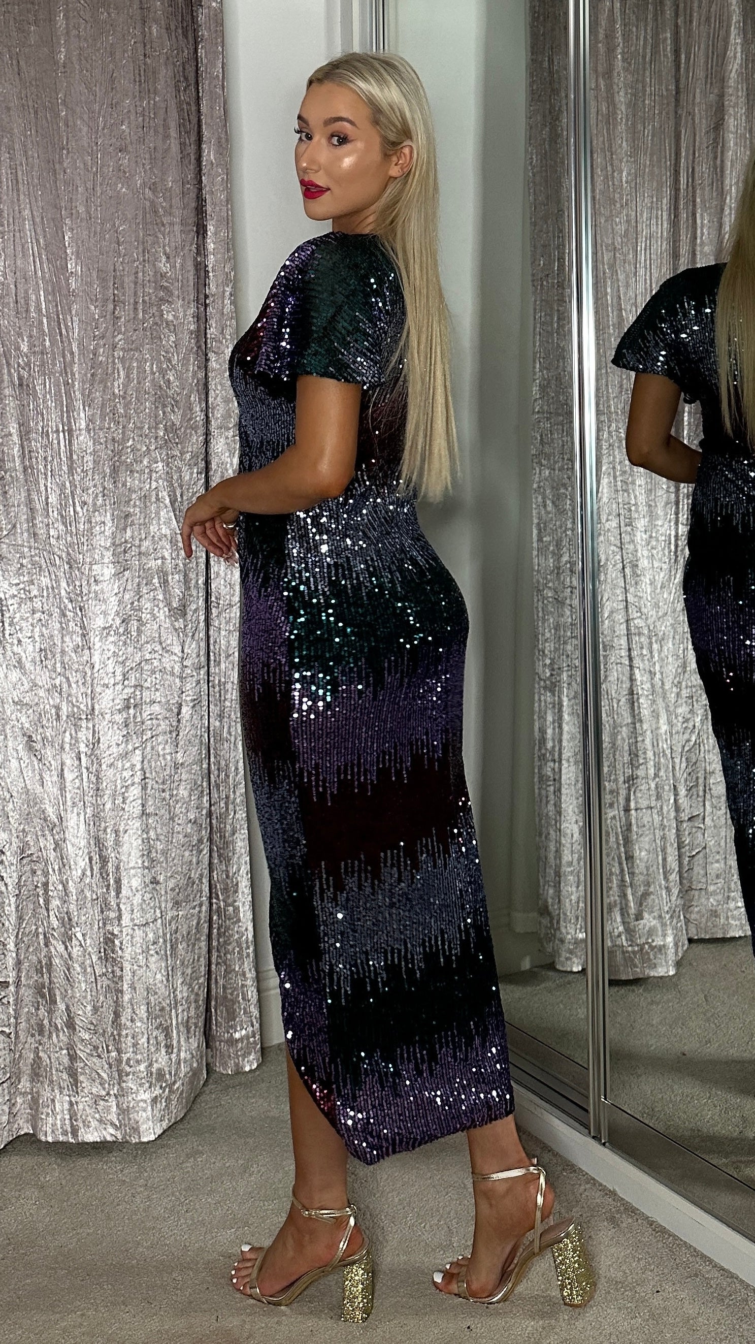 Nelson Multi Sequin Wrap Over Maxi Dress