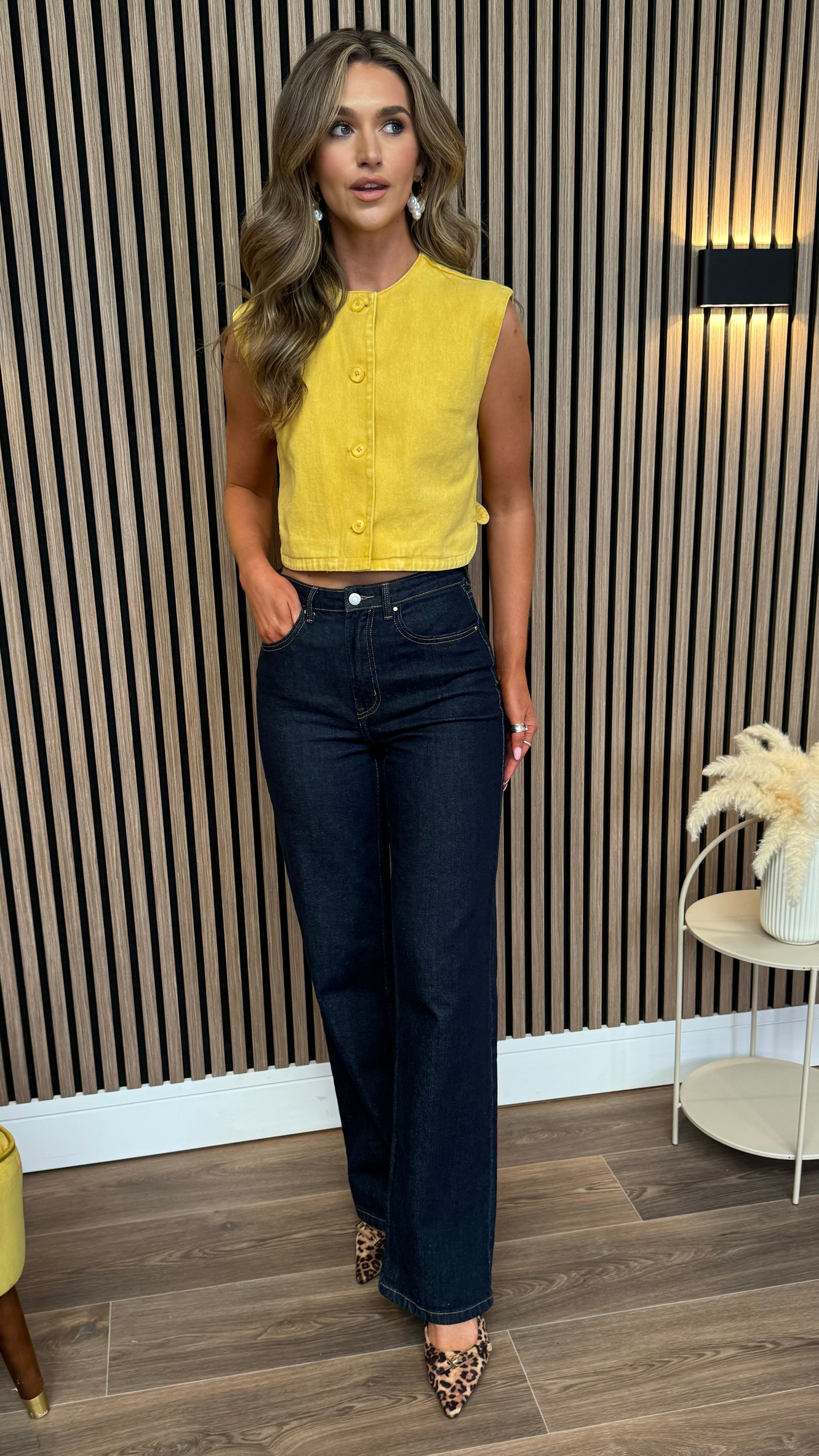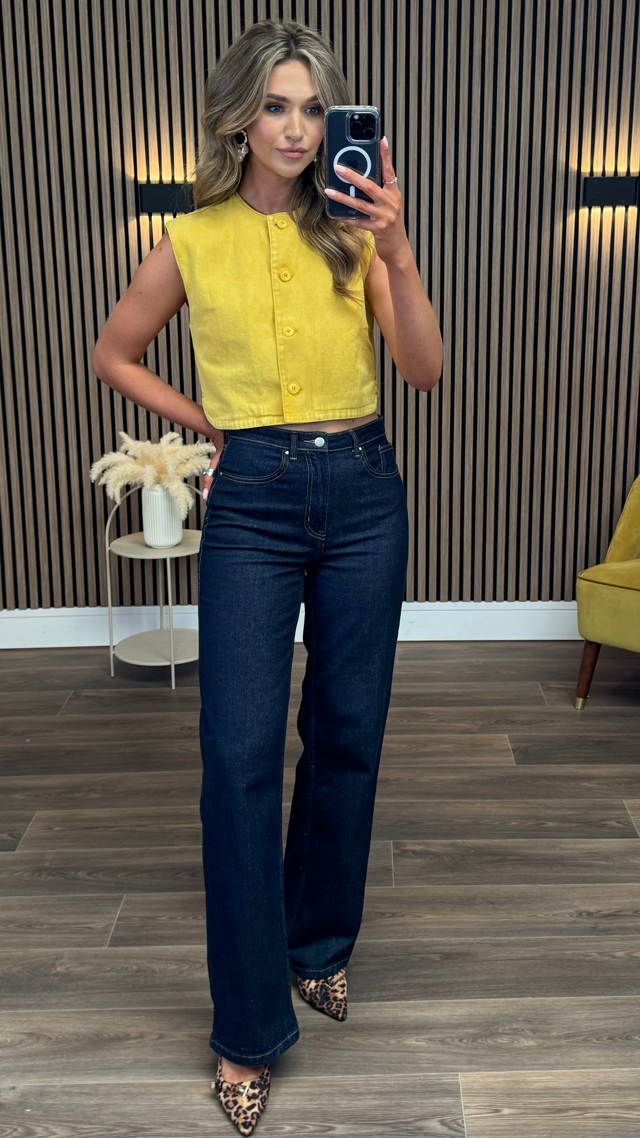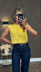 Get ready to make a statement with the Marsha Yellow Round Neck Waistcoat! This stylish waistcoat features a flattering round neck design and is made with high-quality denim fabric for durability. Perfect for adding a touch of edginess to any outfit, this waistcoat will make you stand out from the crowd.