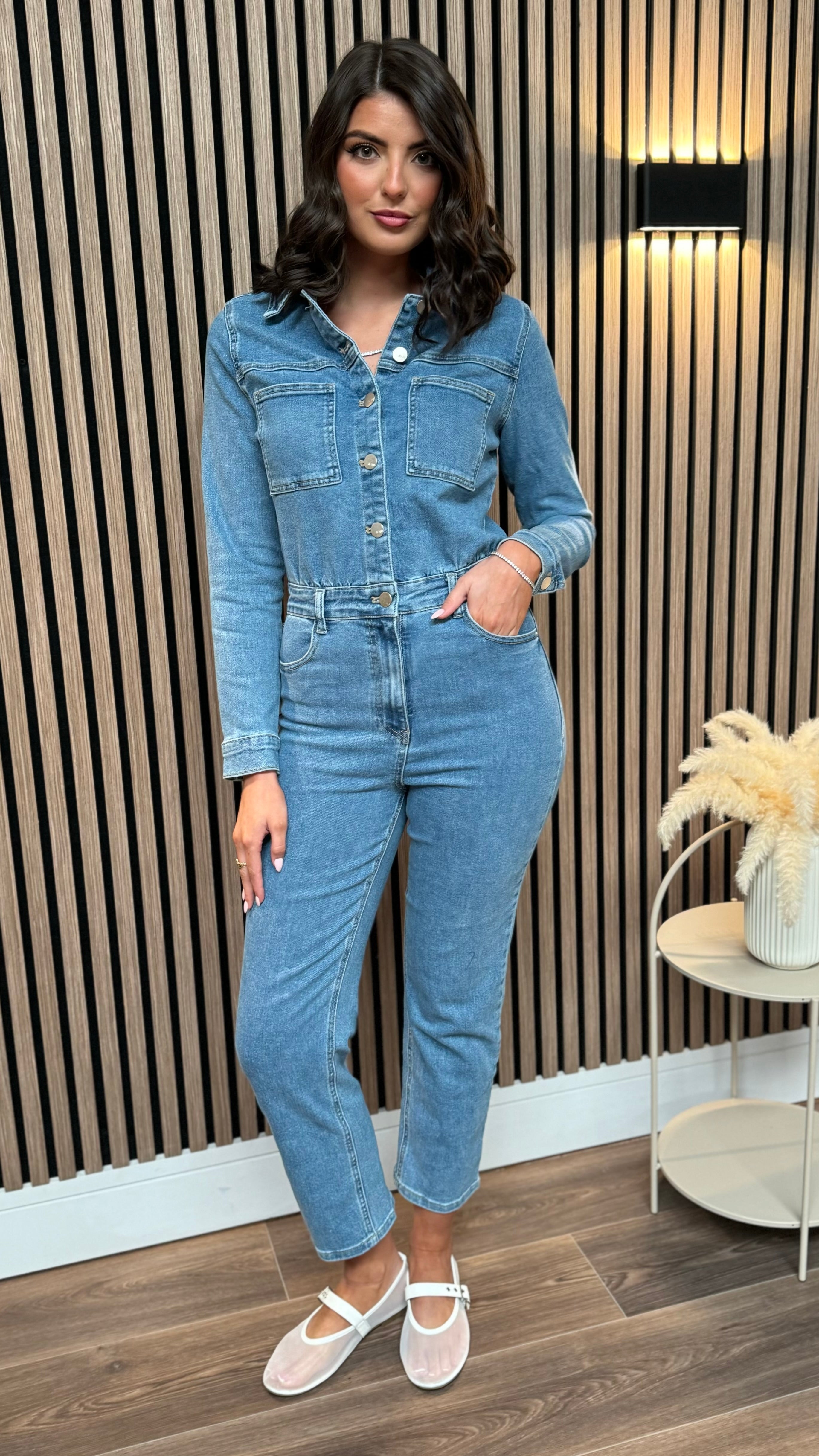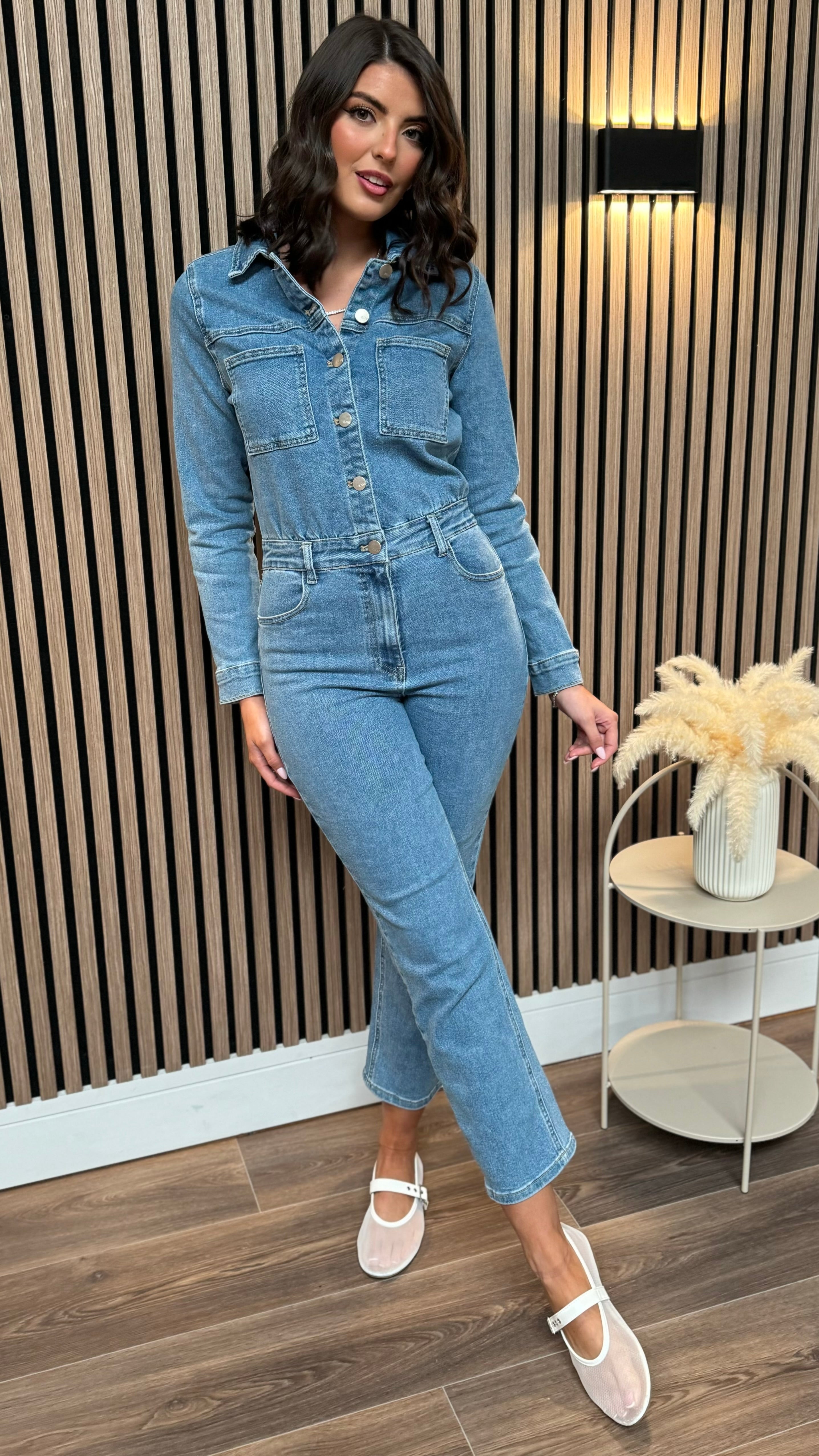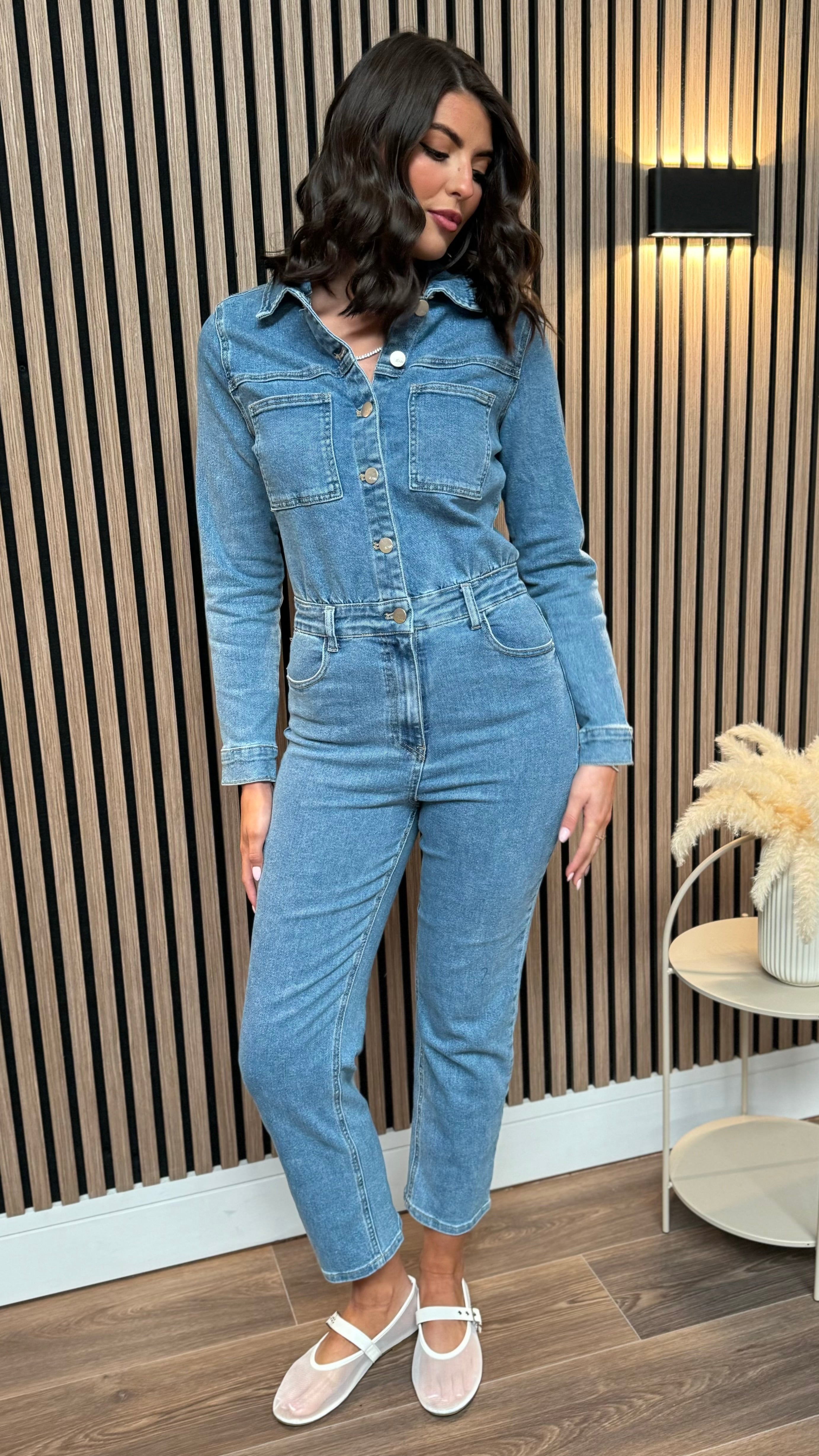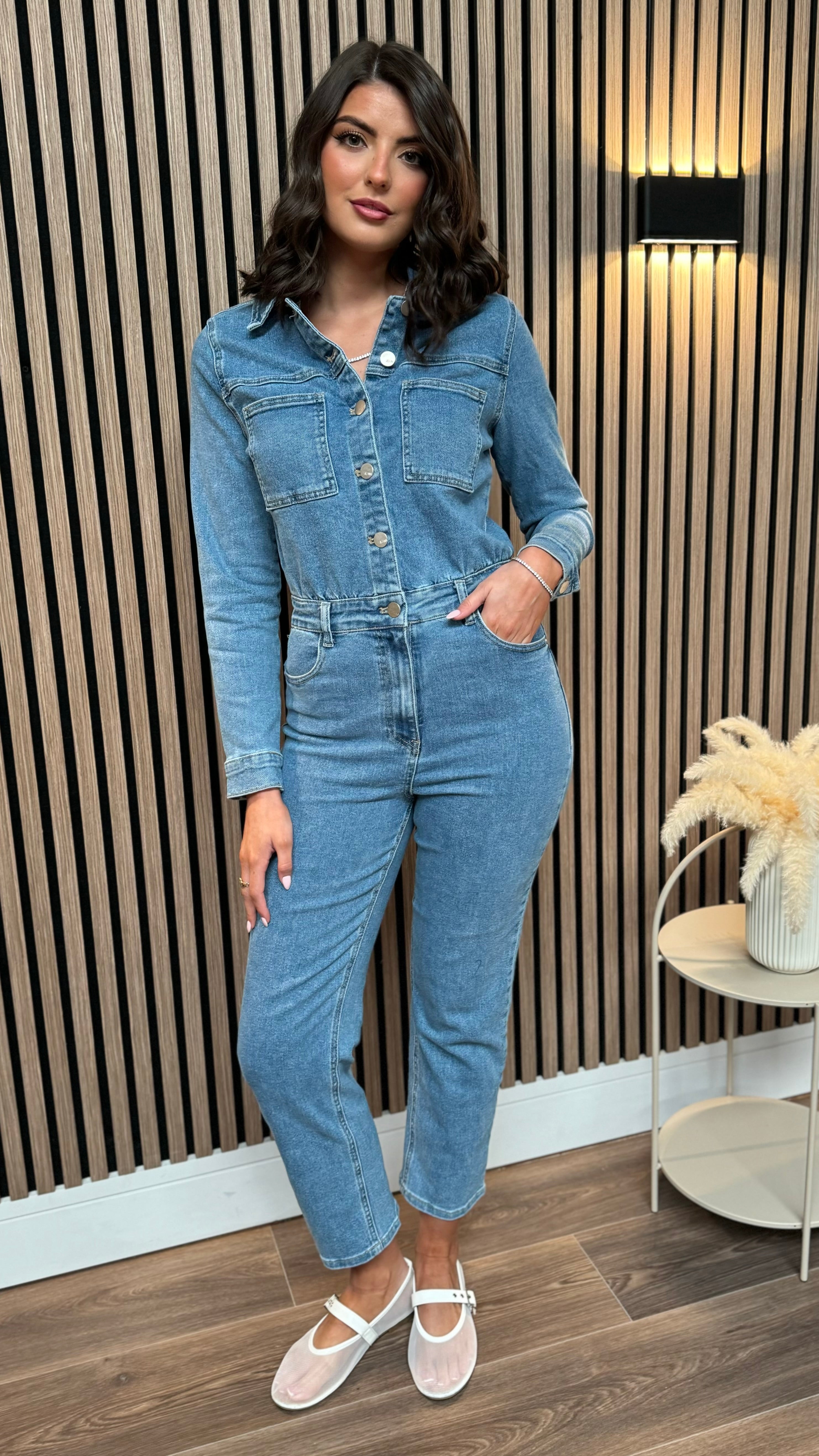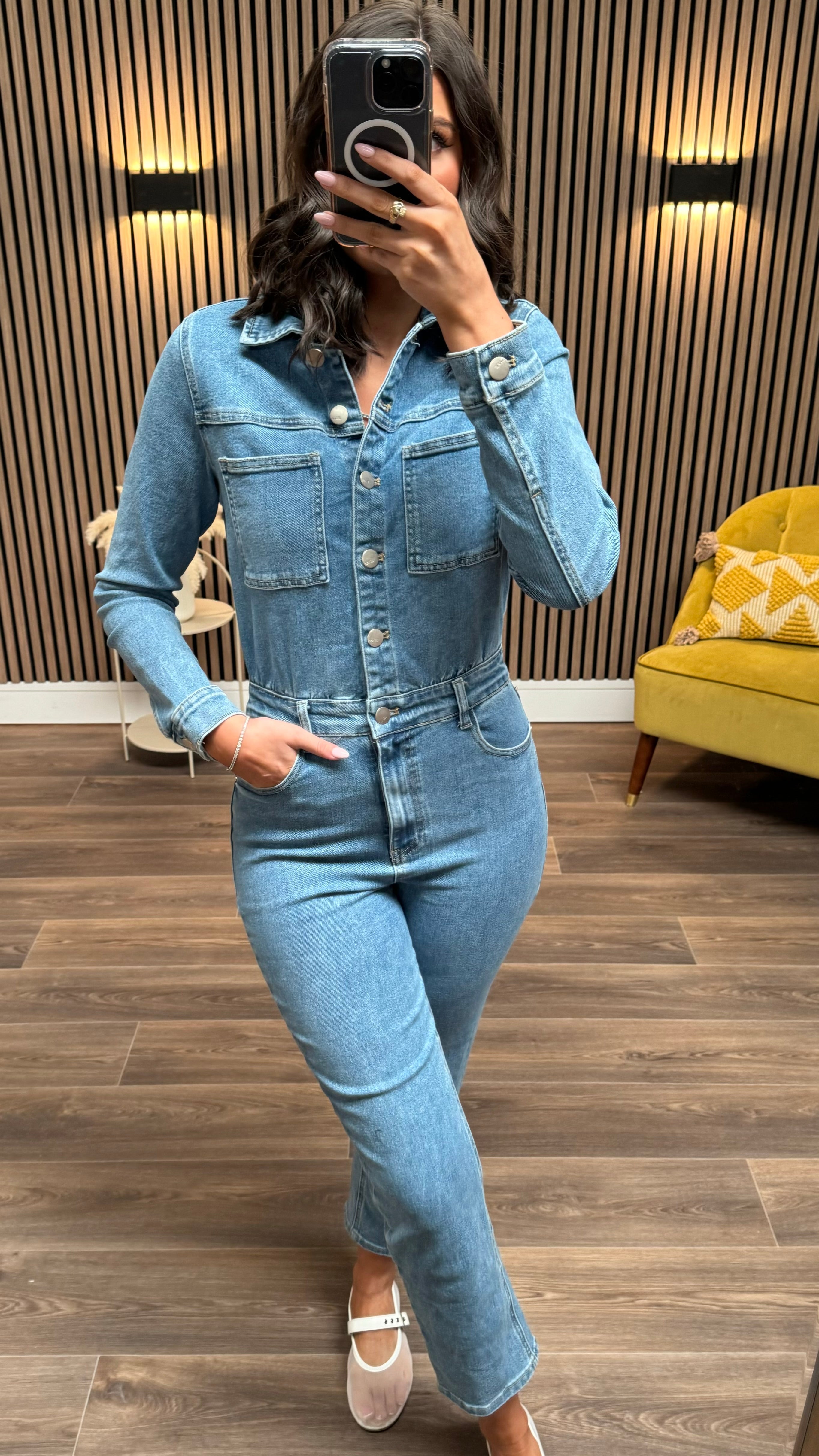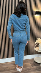 Unleash your inner fashionista with the Wynn Mid Blue Belted Denim Jumpsuit! This style jumpsuit features a classic mid blue color and a flattering belted waist. With pocket detail for added convenience, this jumpsuit is both stylish and practical. Perfect for any occasion! 🌟