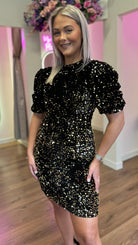 Make a statement in the Katana Gold Sequin Mini Dress 😍 With its playful cut out back and unique puff sleeves, this quirky dress is sure to turn heads and add a fun touch to your wardrobe. Get ready to stand out and have a blast in this stylish and flirty dress! 💜