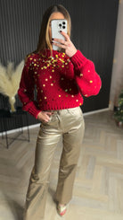 Susie Red Sparkling Gold Sequin Jumper