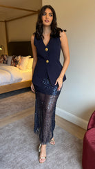 Zena Navy Sequin Midi Skirt Shimmer and shine in this show-stopping sequin midi skirt! Crafted with all-over sequins that catch the light with every move, this navy beauty features a comfortable elasticated waistband for easy wear. The mesh construction keeps things breathable, while the soft lining extends to mid-thigh for a flattering fit and added comfort. Perfect for parties, nights out, or whenever you want to sparkle.