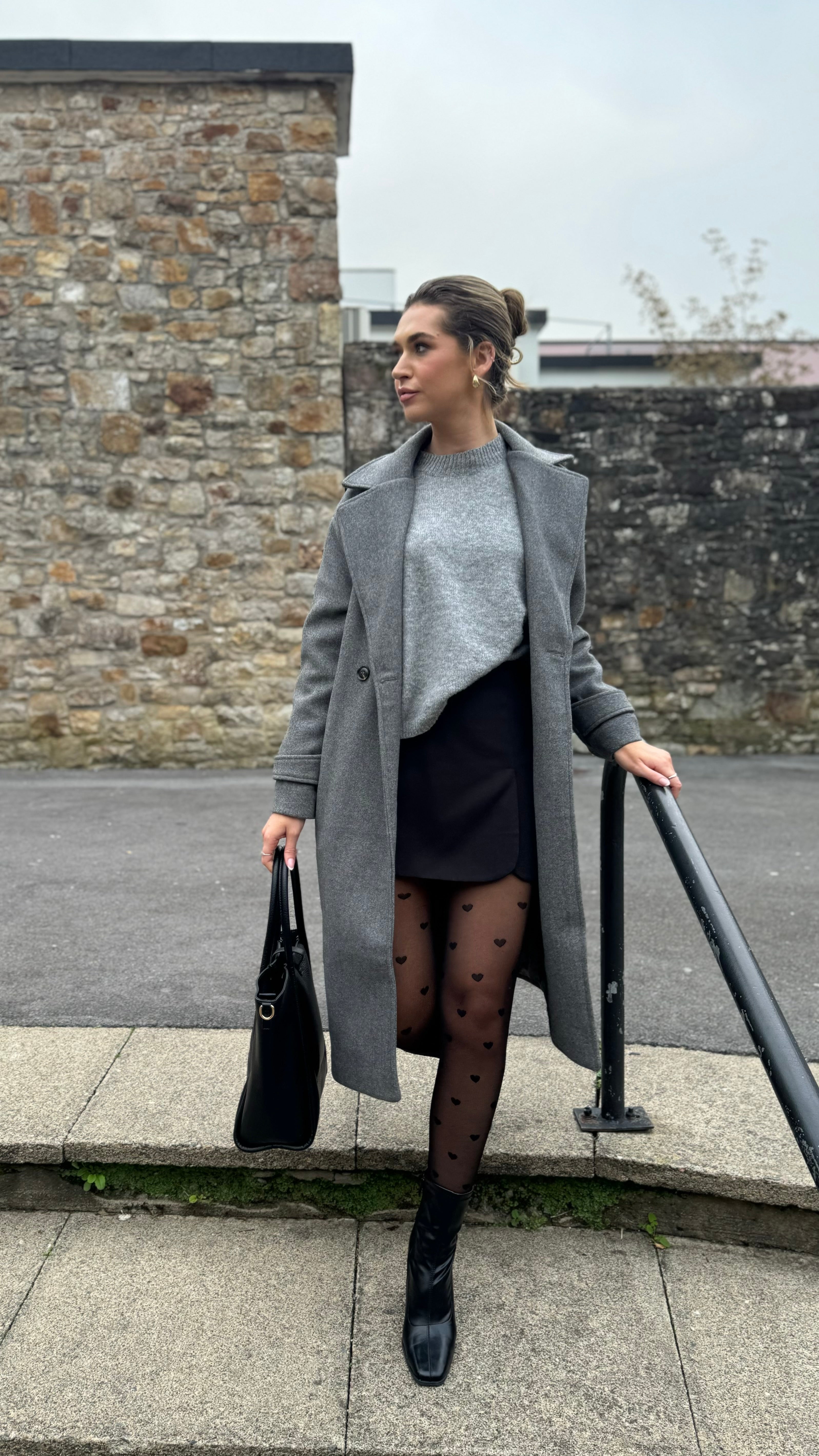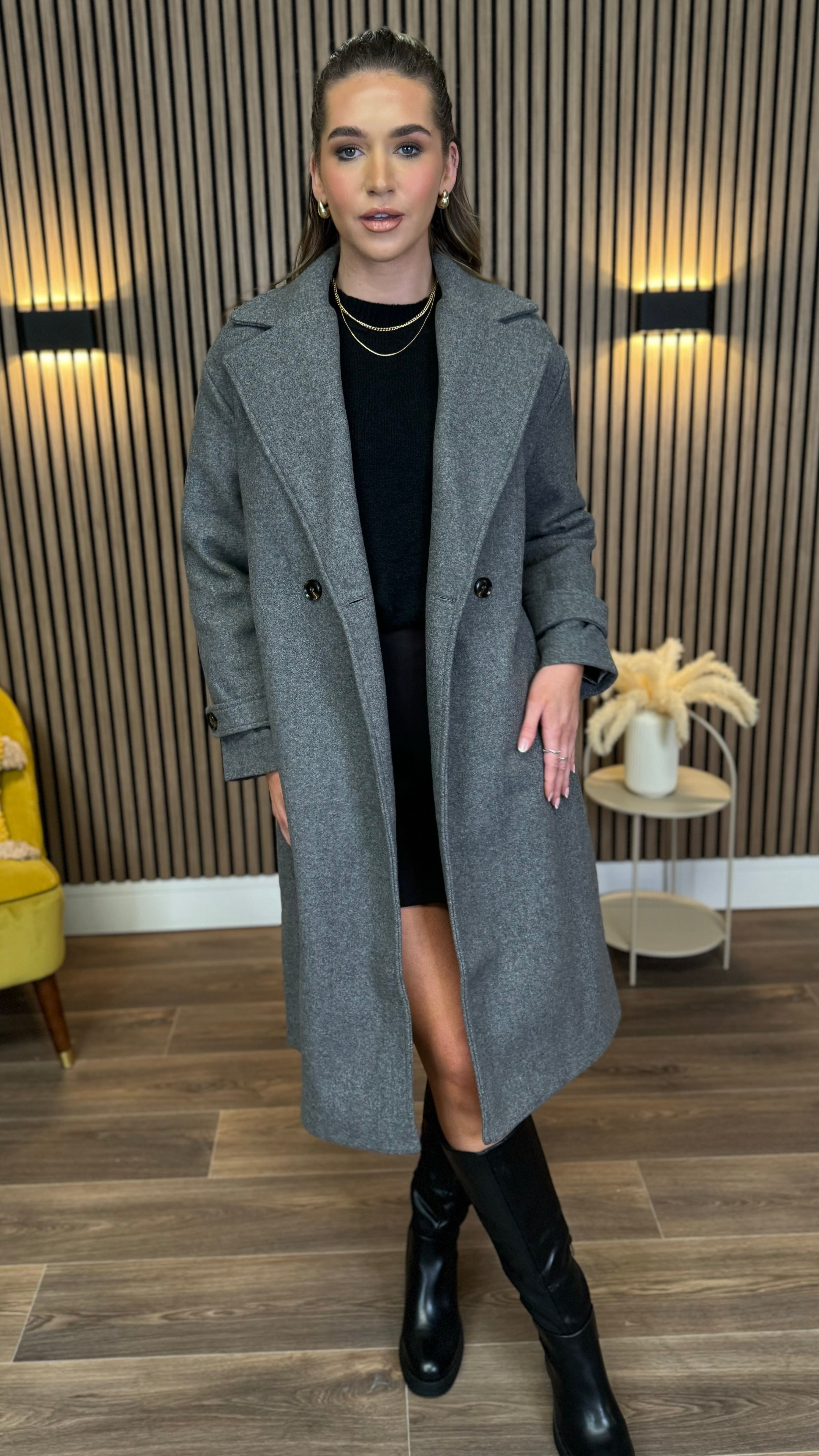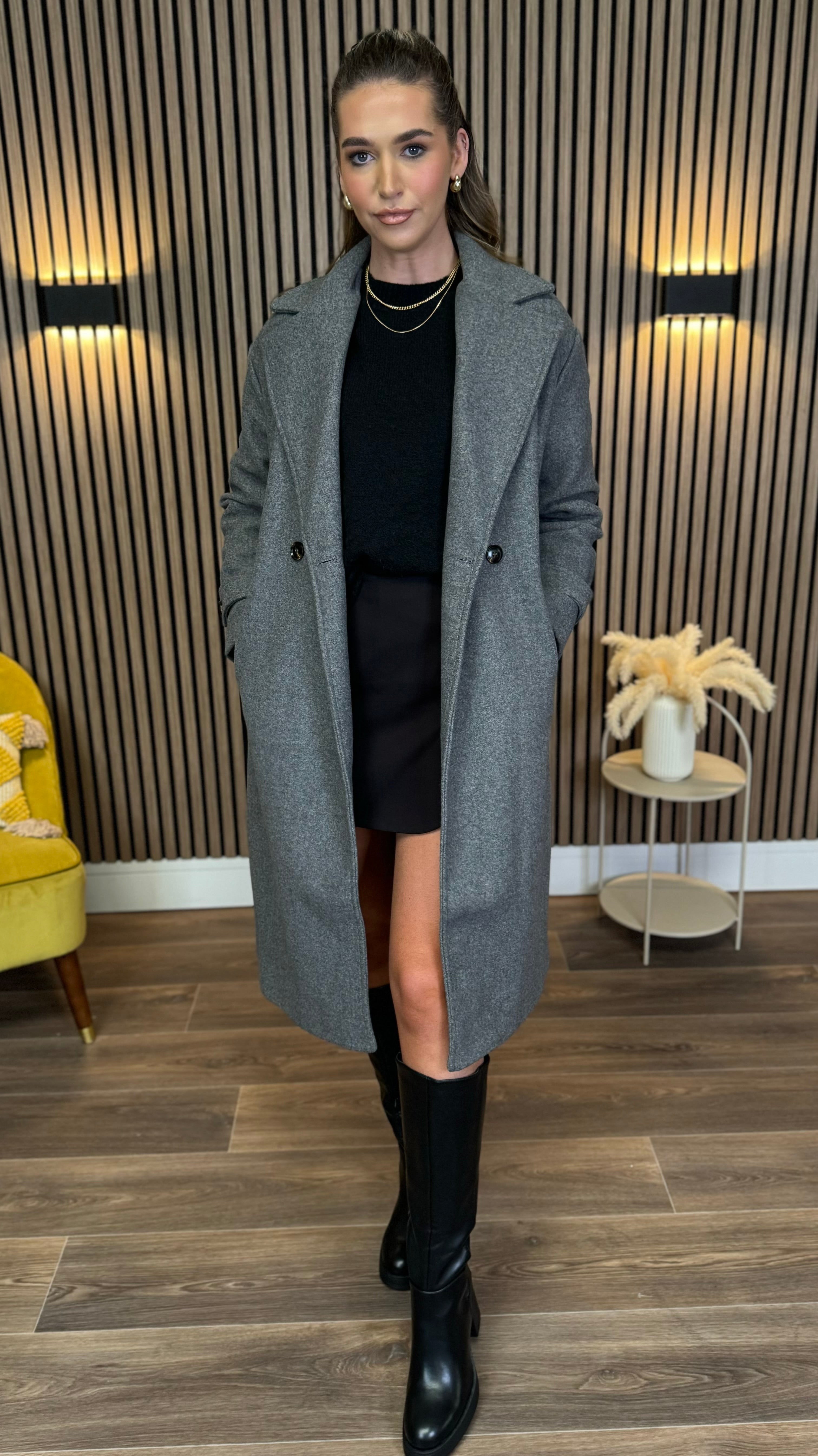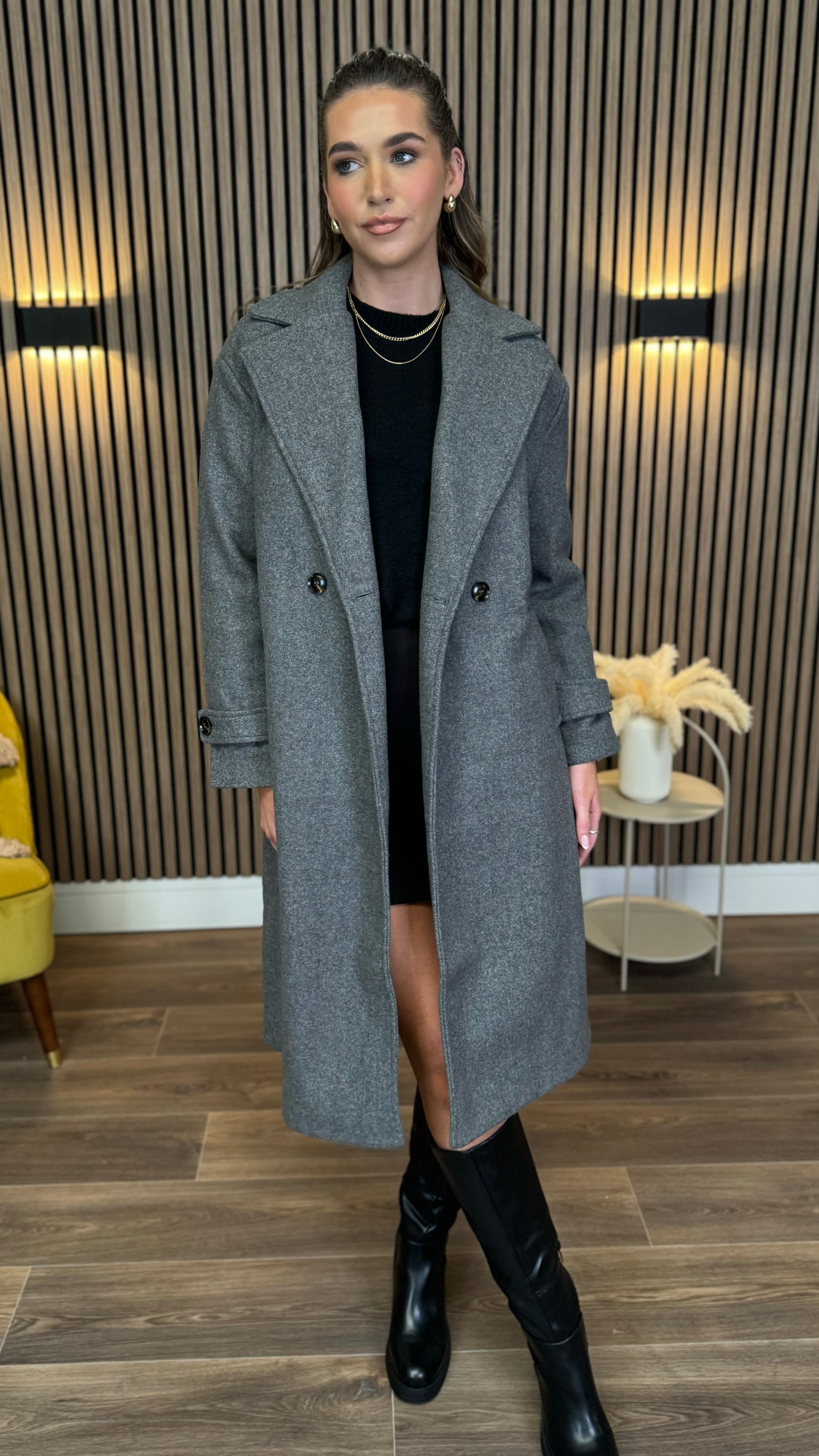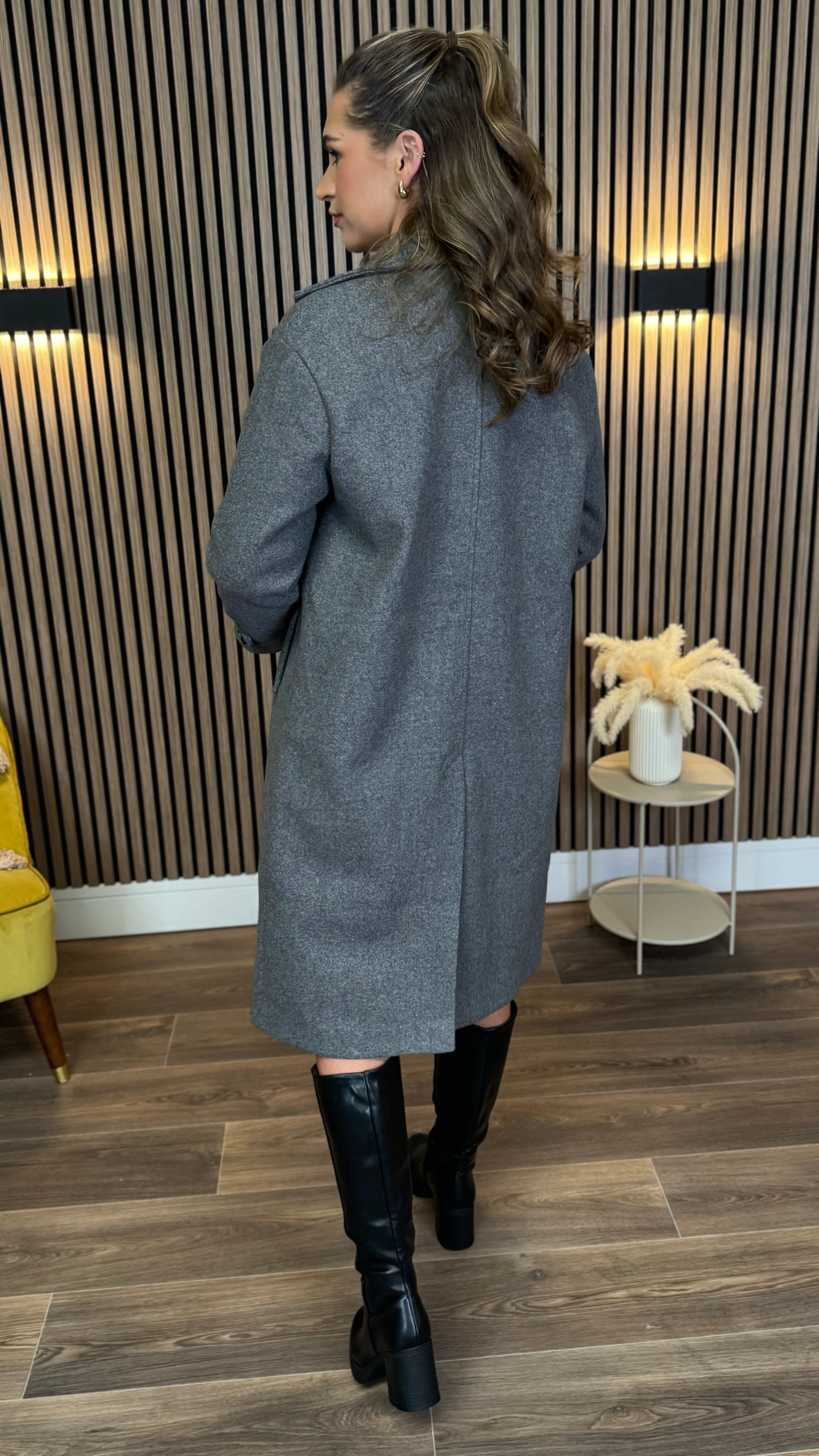 Step out in style with the Anisa Grey Oversized Button Detail Coat, featuring striking buttons that pop against the rich grey fabric. Enjoy functional pockets perfect for keeping your hands cozy or stashing essentials. The oversized collar adds a fun, bold twist to your look, while belted cuffs let you play with fit and flair.