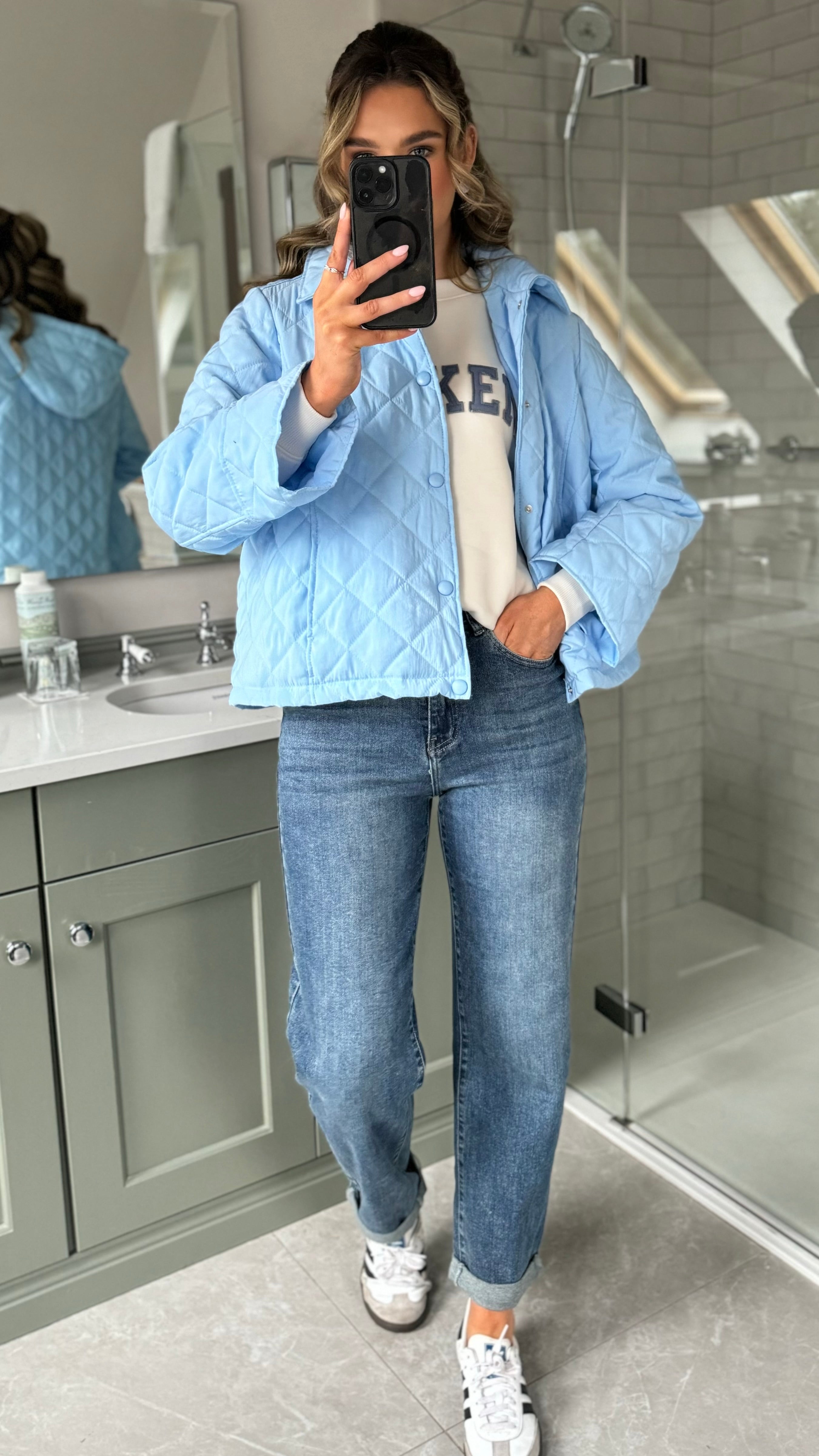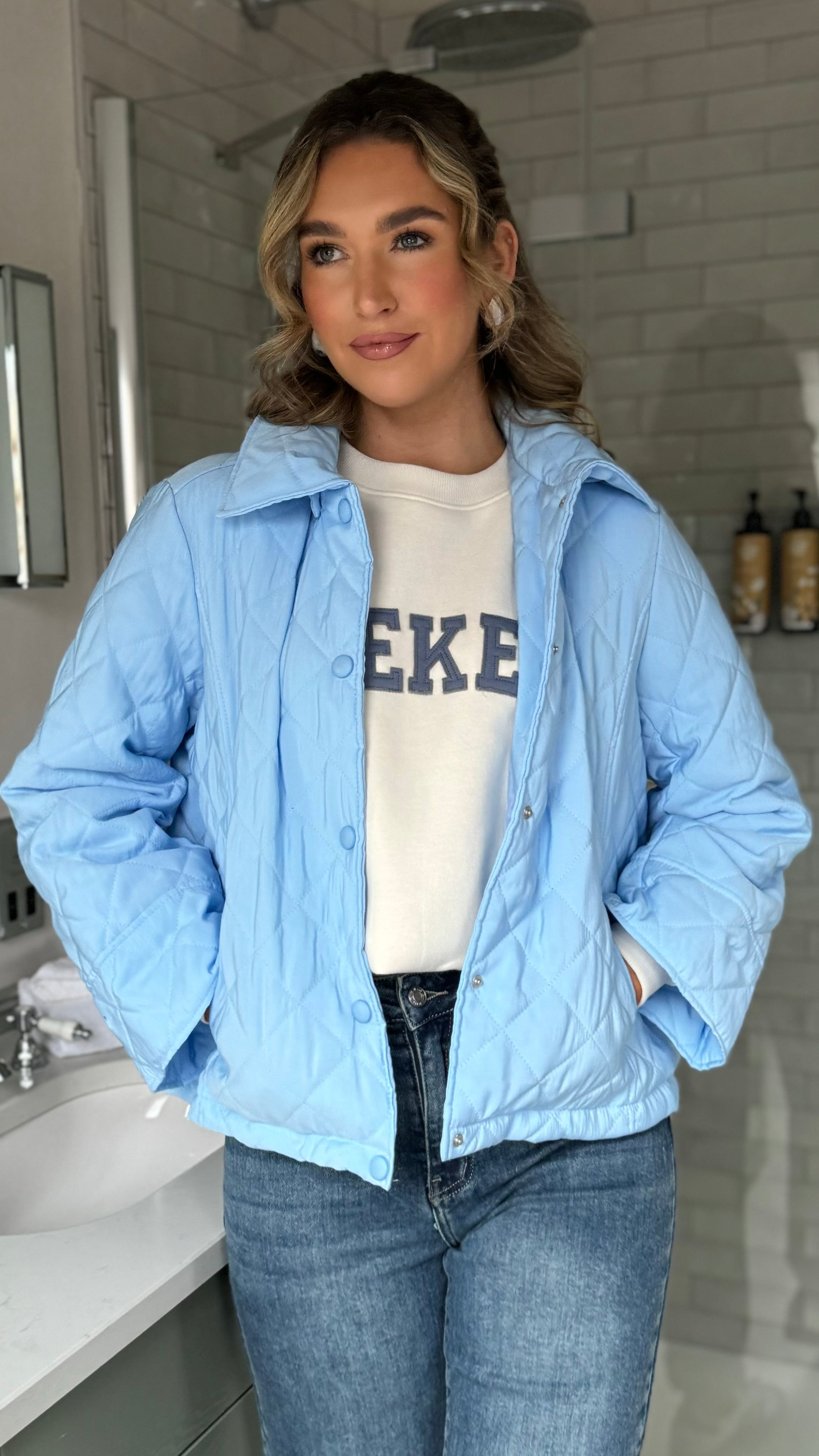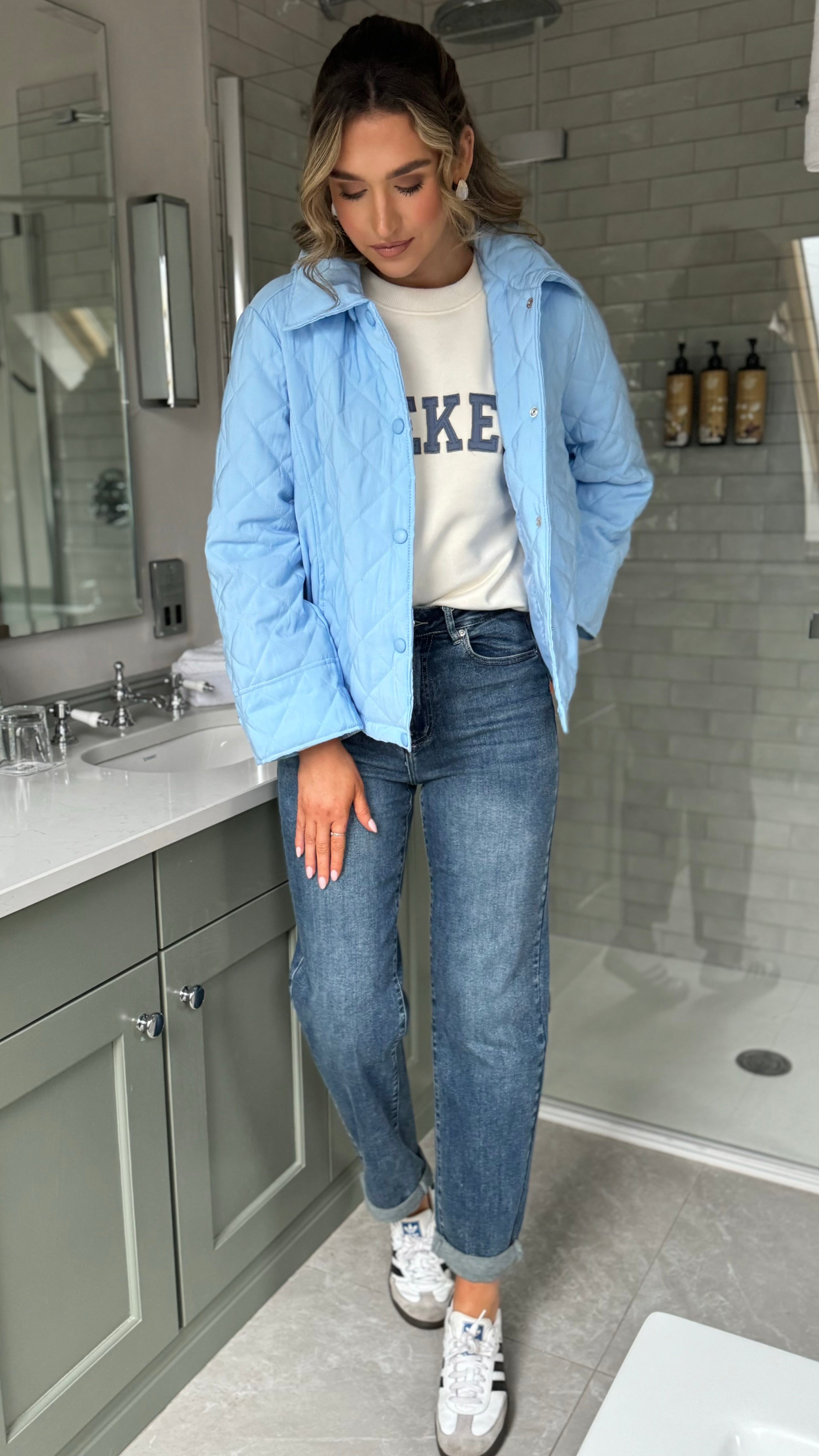 Stay cozy in style with the Collette Blue Quilted Hooded Jacket—your new go-to layer for chilly days. This cheerful piece features a soft quilted lining, a snug hood to keep you warm, and practical turn-up sleeves for the perfect fit. The charming collar detail adds a touch of personality, while the button-up front makes getting dressed a breeze. Whether you're running errands or meeting friends, this jacket brings sunshine to any outfit.