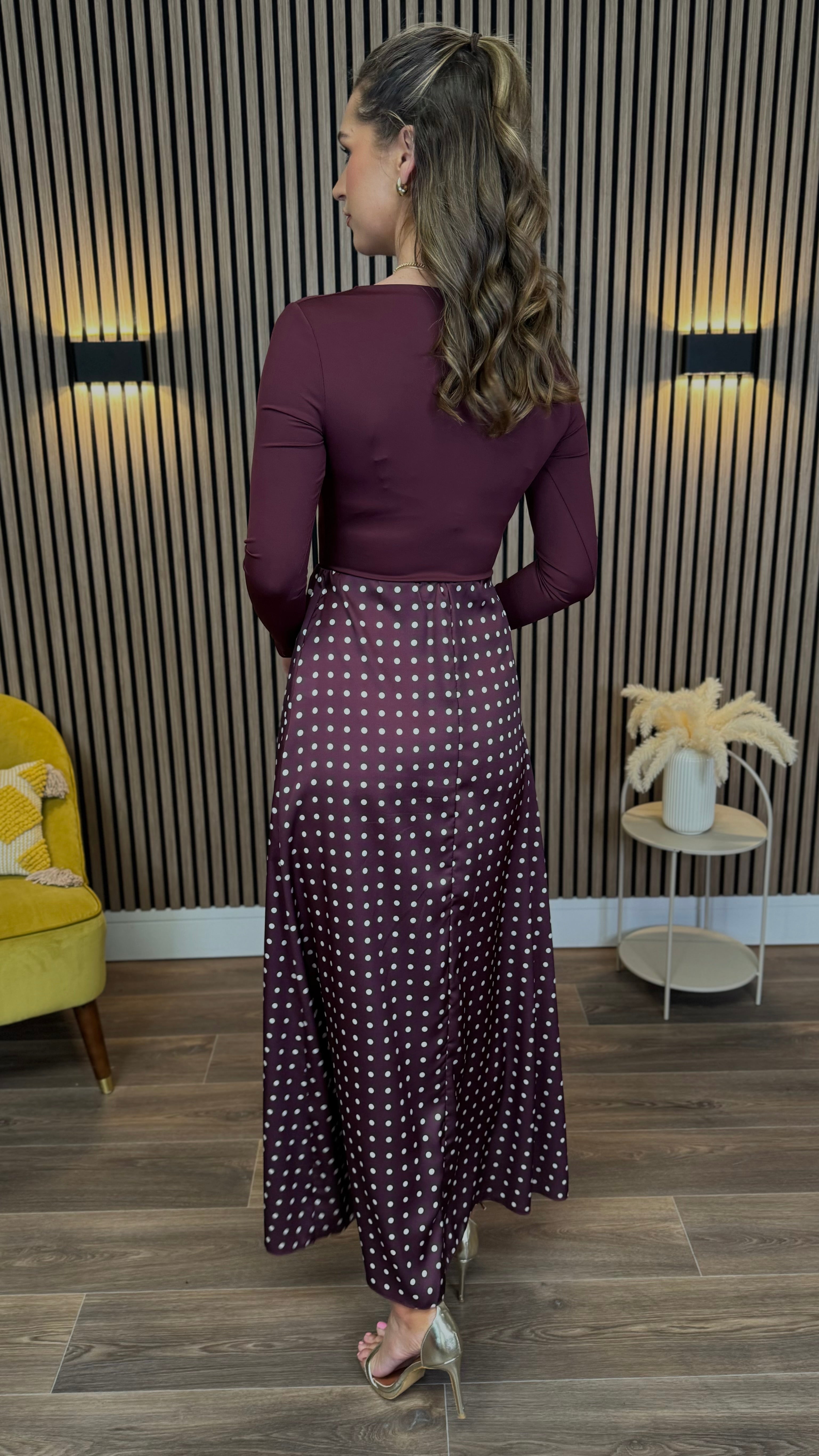 Deedee Burgundy Ruched Gold Detail Bodysuit
