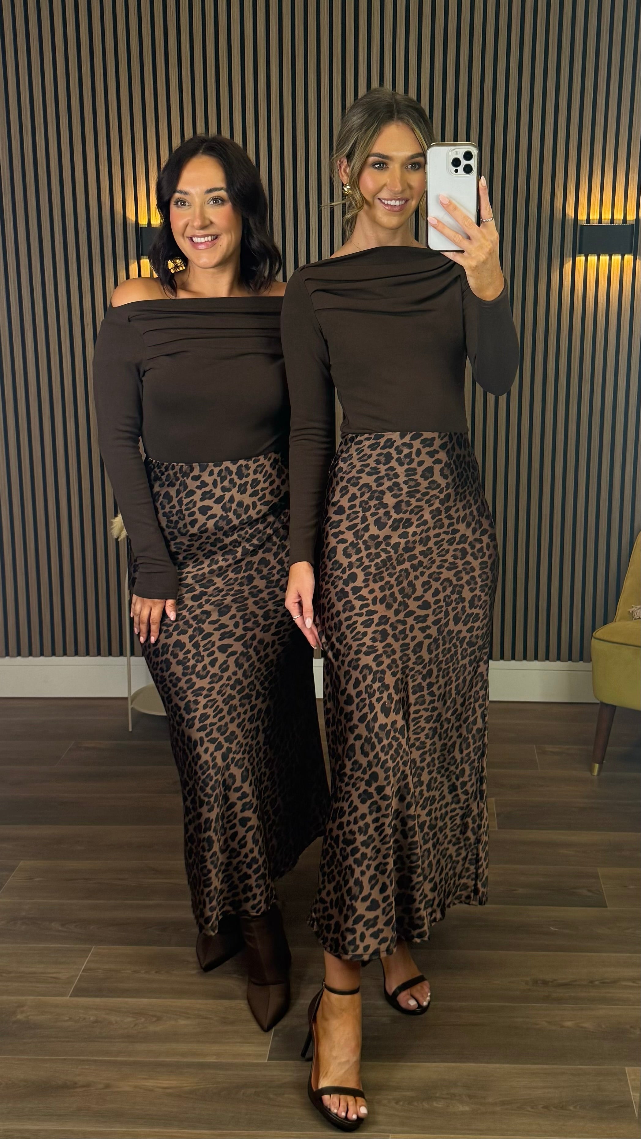 Add a wild twist to your wardrobe with the Kerry Brown & Black Leopard Print Midi Skirt 🐆. This bold print brings fun and flair to every step, while the midi length keeps it classy and comfortable. Perfect for day-to-night looks, this skirt pairs easily with your favourite tops to make a statement wherever you go! 🖤✨