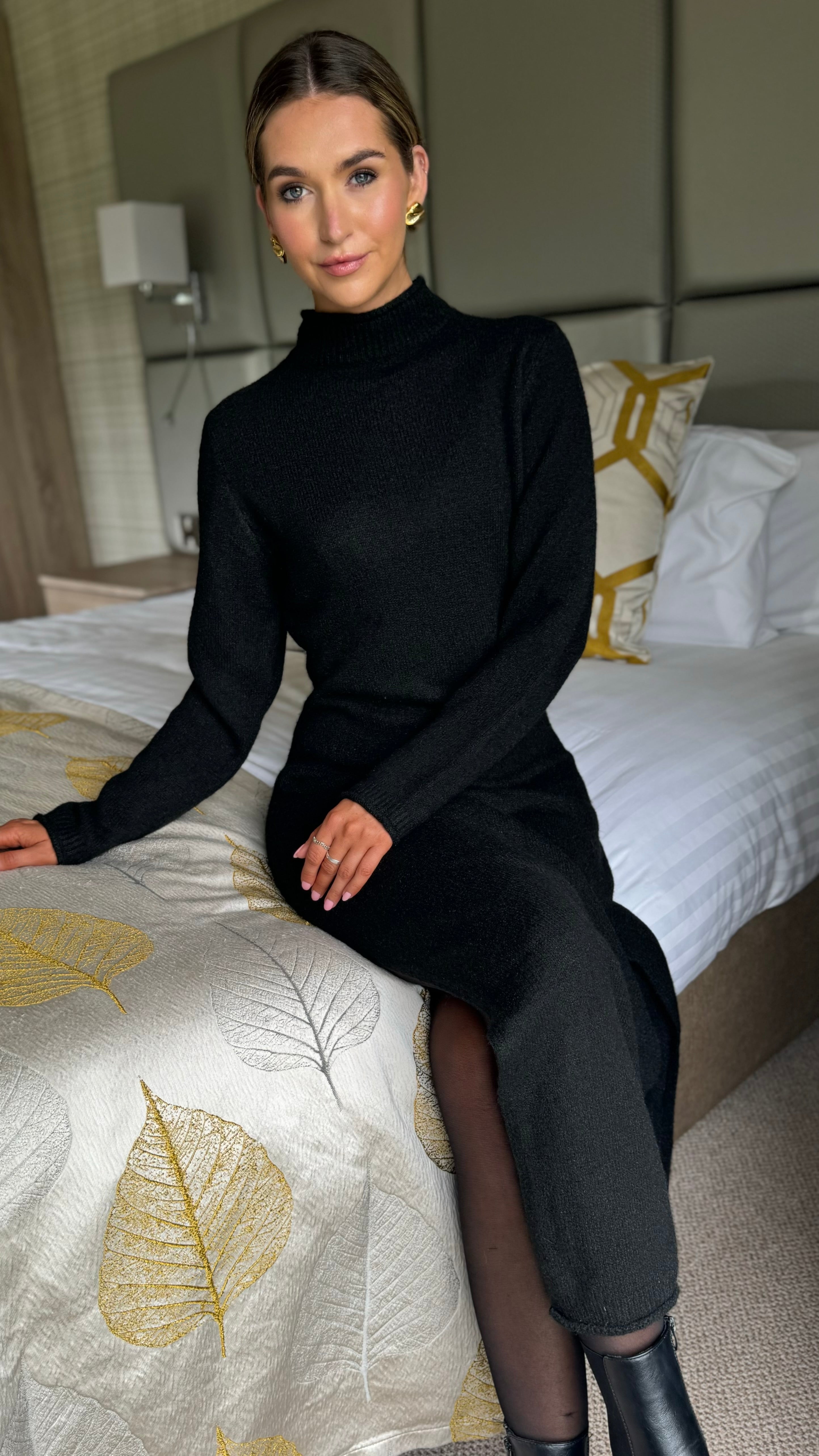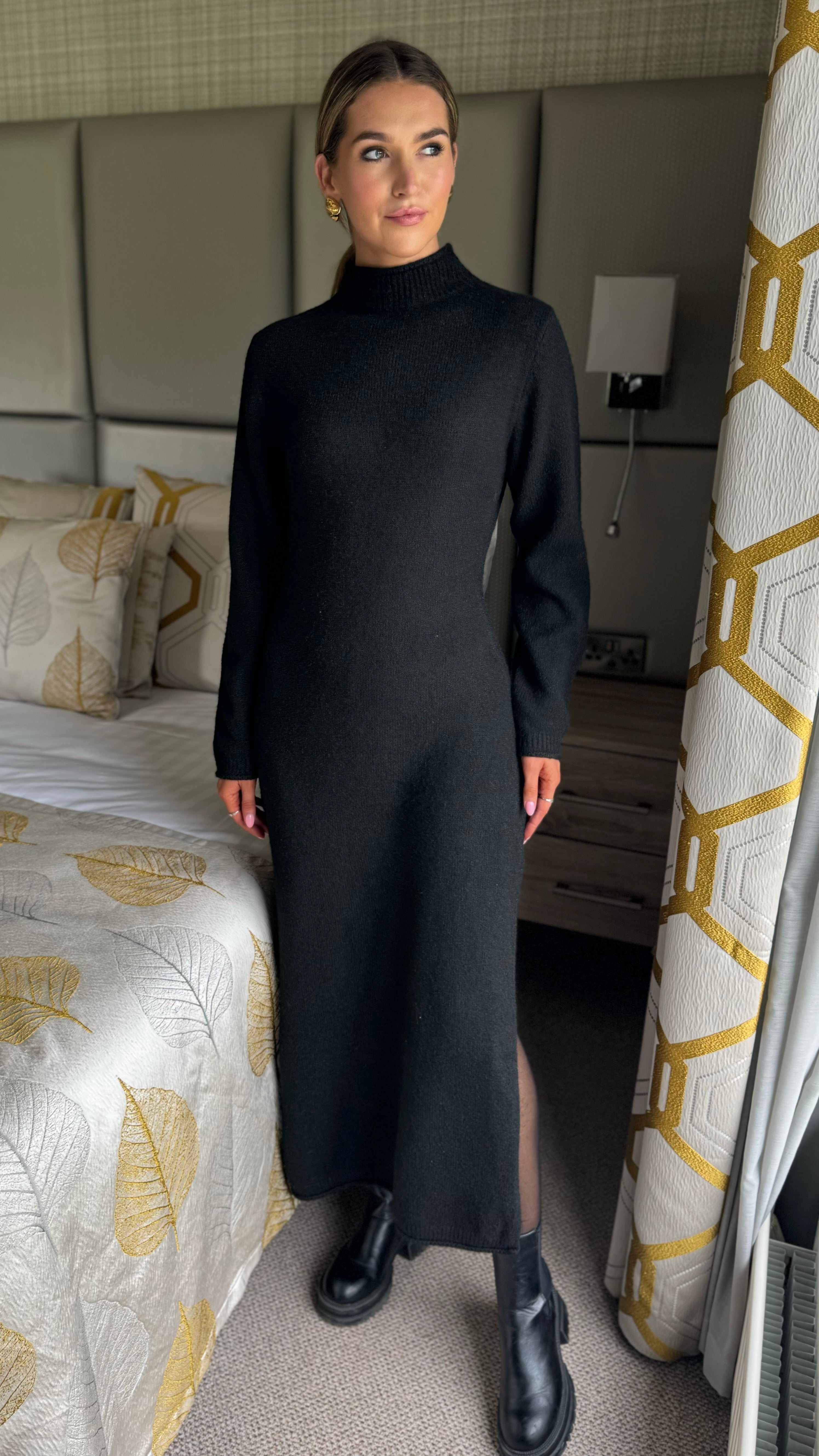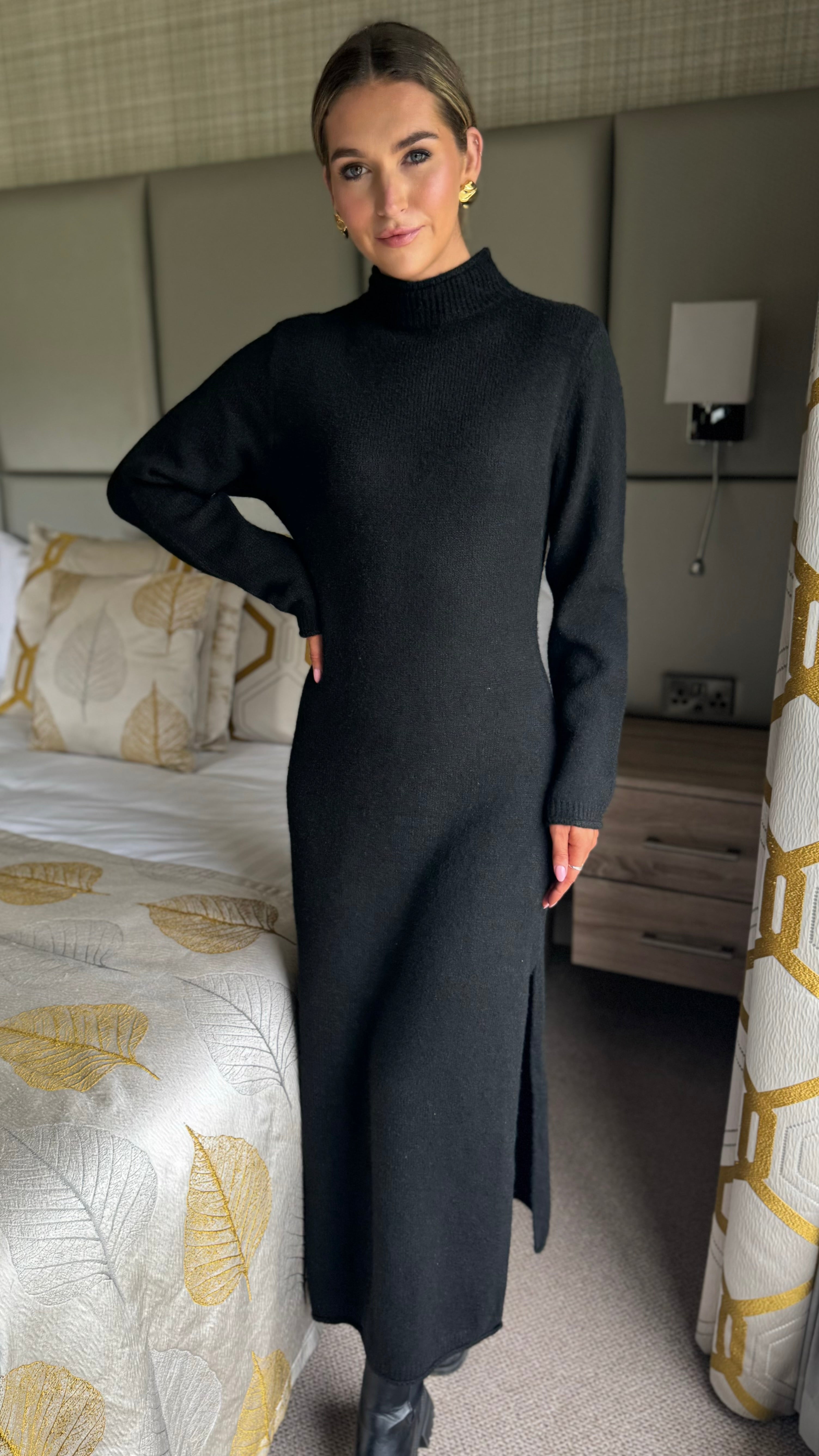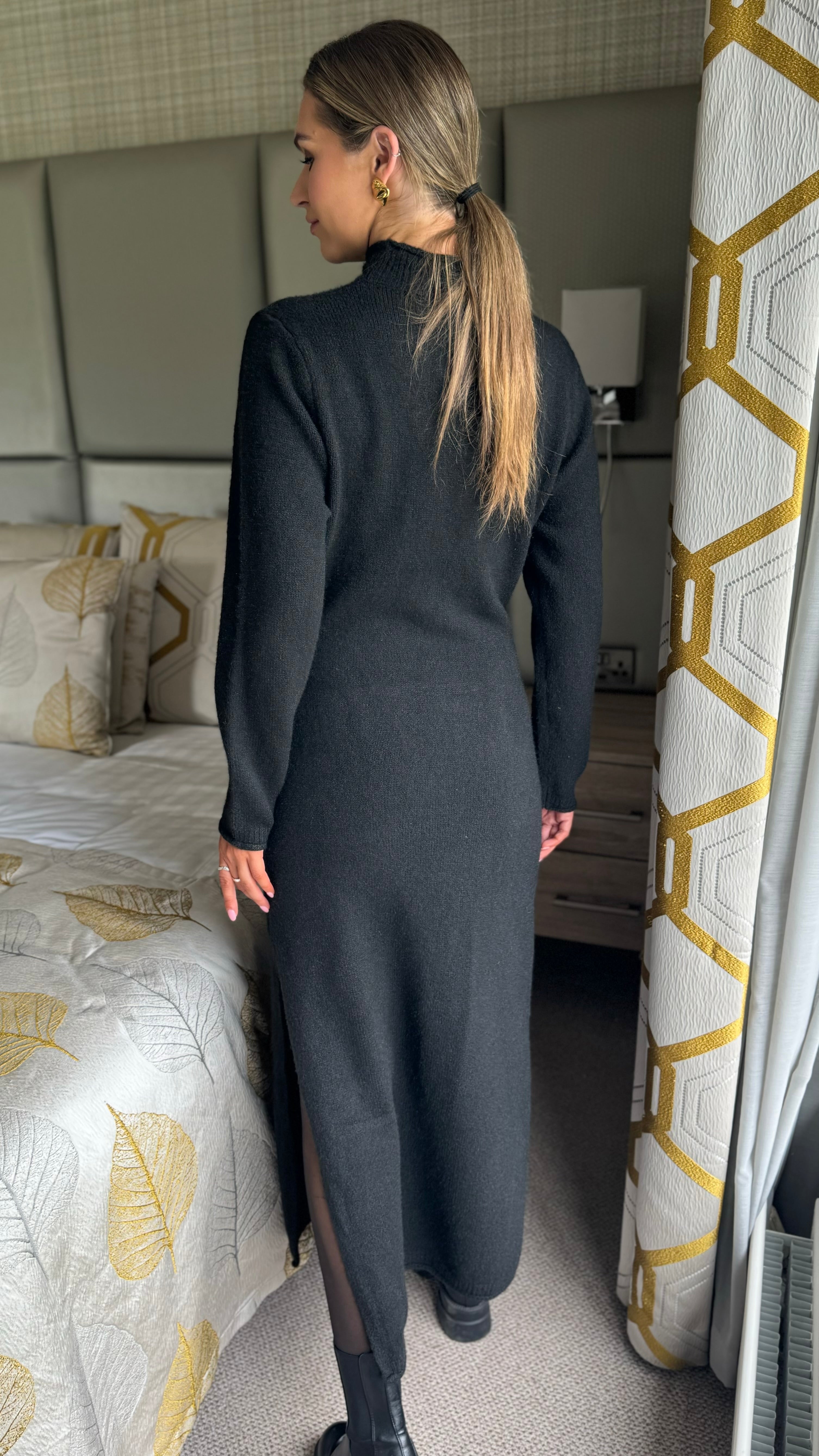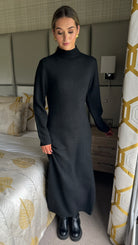 Kelly Black Turtle Neck Knit Jumper Midi Dress