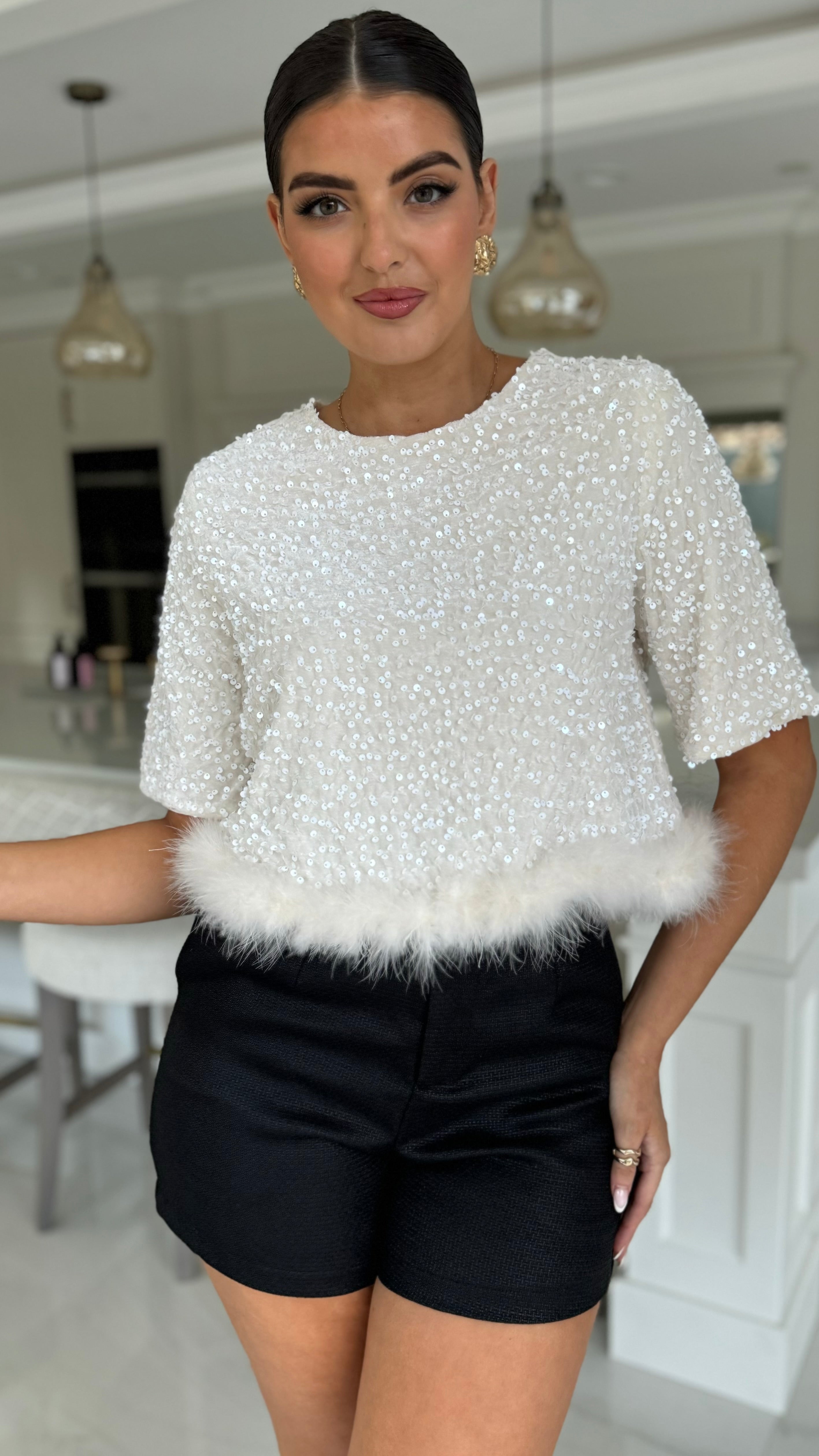 Sizing Info: Our model Katie is a UK8 (5ft9) and is wearing the size UK8-10 in these shorts.