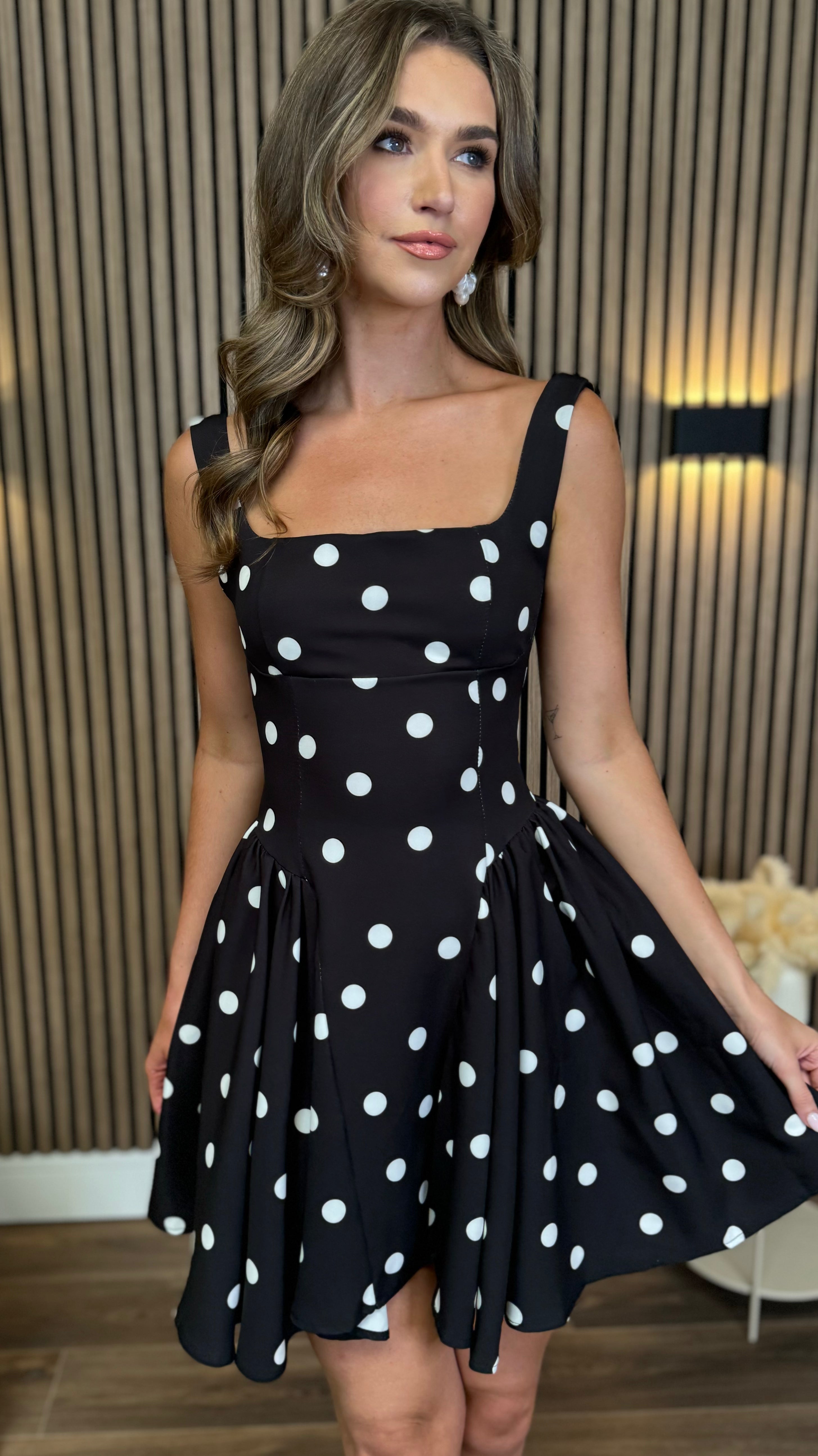 Step into style with the Demi Black & White Polka Dot Sleeveless Mini Dress! šŗ Its playful tie detail and polka dot pattern bring a fresh, feminine touch to your outfit. Lightweight and breezy, this dress keeps you cool while turning heads wherever you go. Perfect for brunch dates or garden partiesāembrace effortless style today! šš