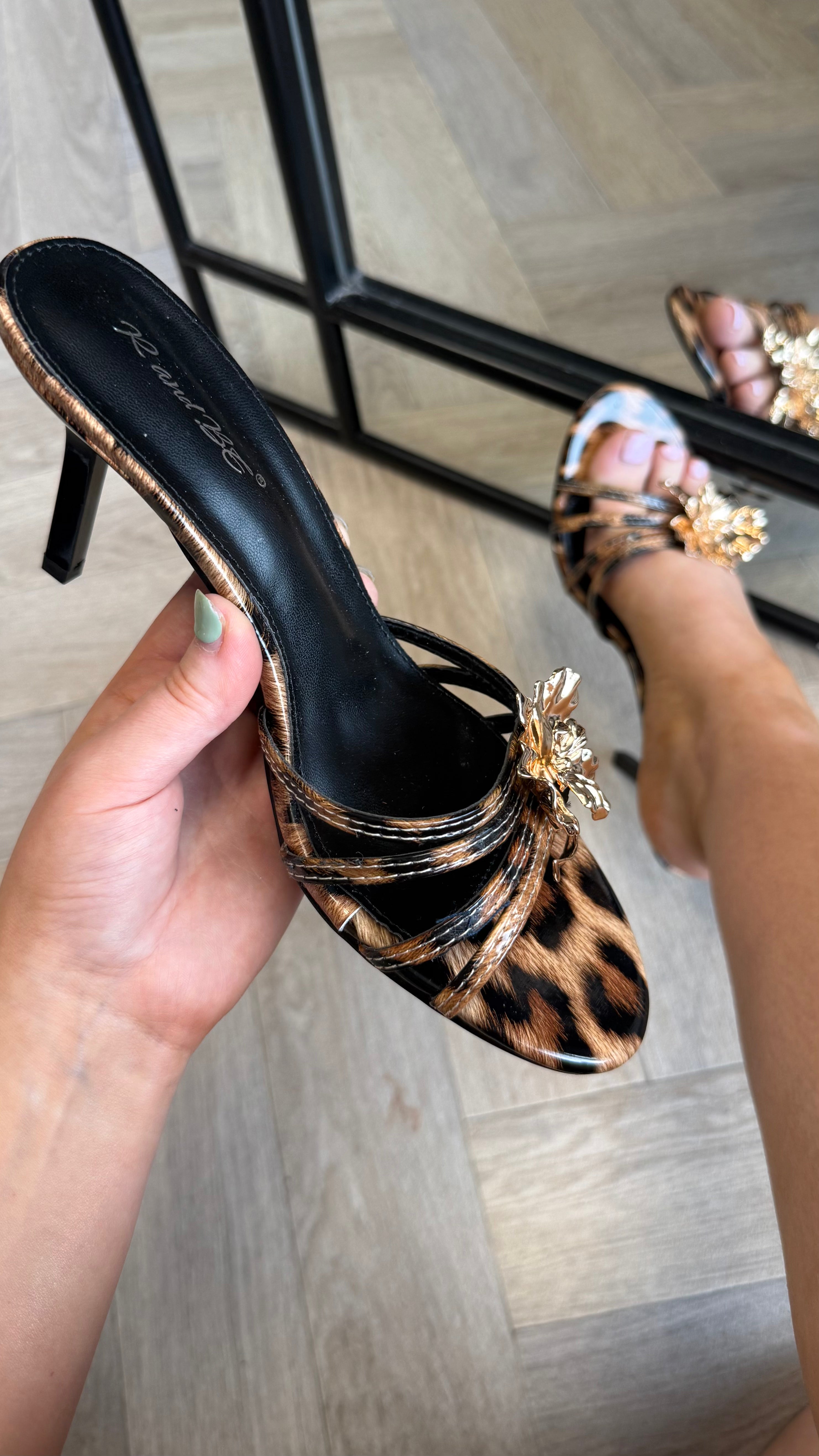 Luz Cheetah Print Gold Detail Stiletto Sandals