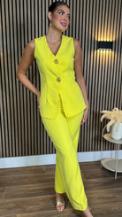 Aaliyah Yellow Waistcoat & Wide Cut Trousers Co-Ord