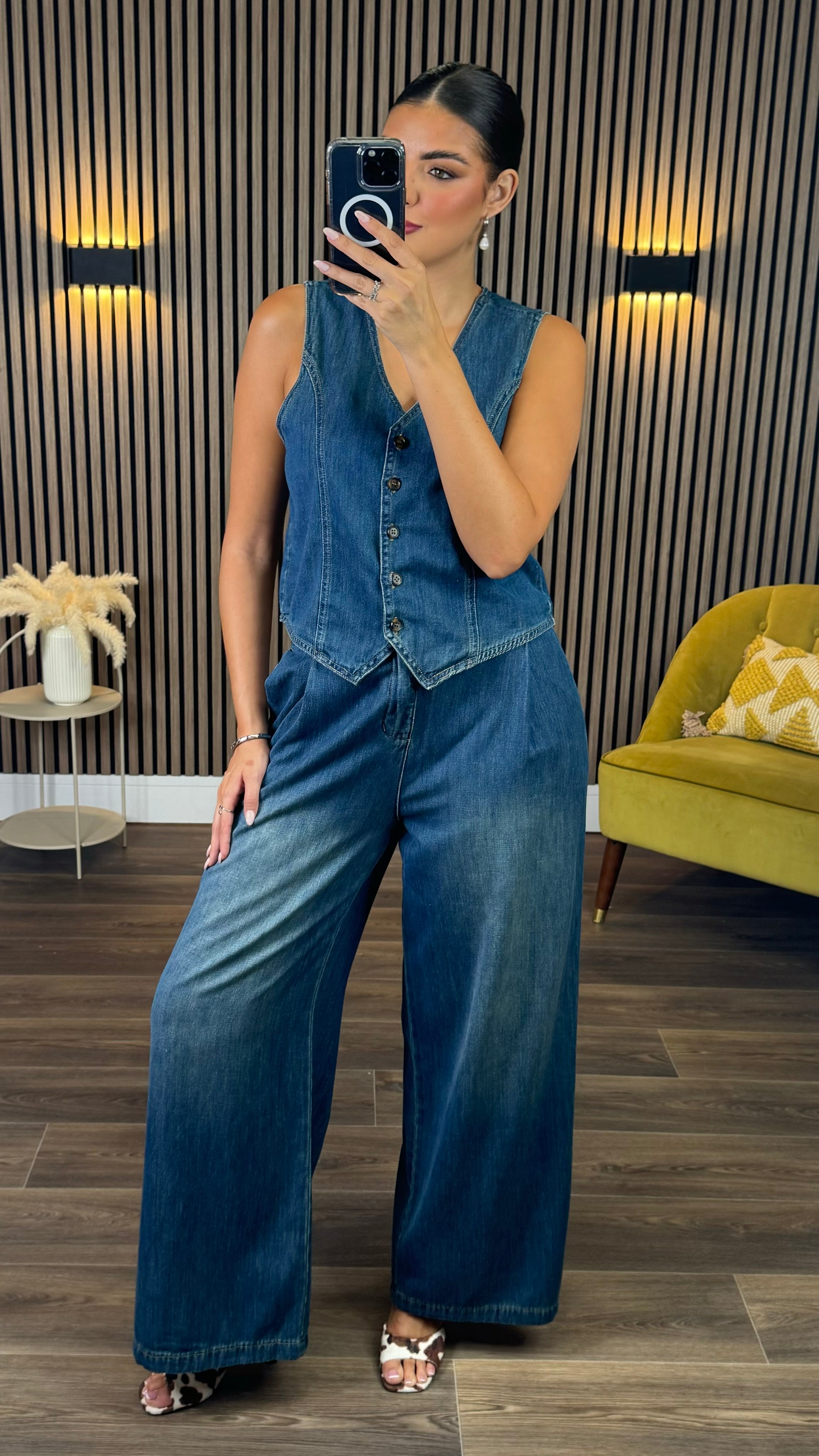 Step out in style with the Astrid Denim Waistcoat & Wide Leg Jean Co-Ord! 👖✨ This playful pair blends a sleek denim waistcoat with breezy wide-leg jeans for a look that’s both fun and effortlessly cool. Perfect for mixing, matching, or rocking together, it’s your new go-to outfit for turning heads and feeling fabulous! 😍🎉