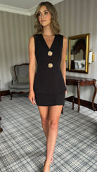 Aura Black Longline Gold Detail Waistcoat & Mini Skirt Co-Ord