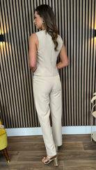 Elevate your style with our Lorie Waistcoat And Trouser Set. This sleek and exclusive design comes in a sophisticated stone color and features a tailored waistcoat and matching trousers. Perfect for any occasion, this set adds a touch of luxury and elegance to your ensemble. 💫