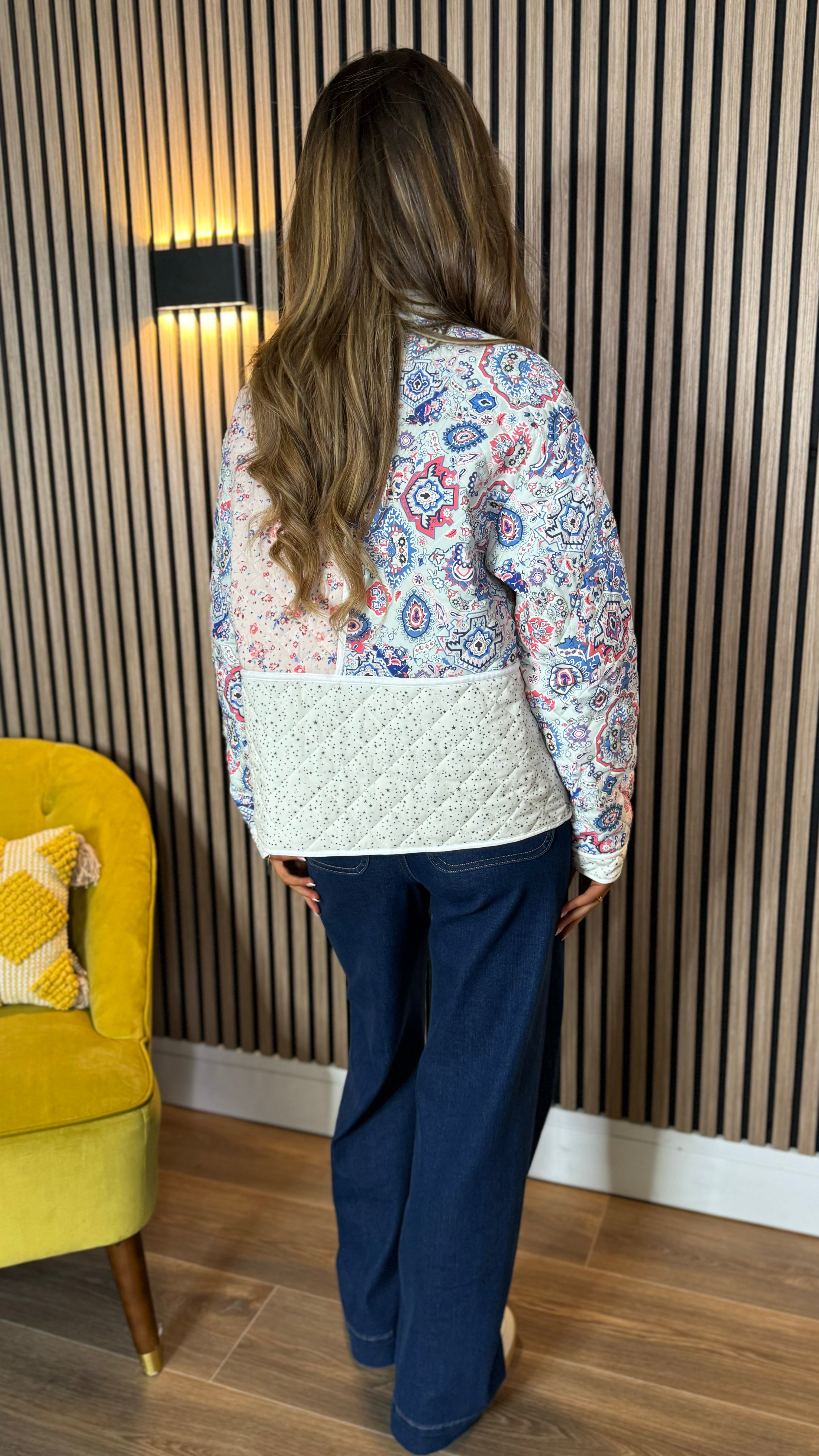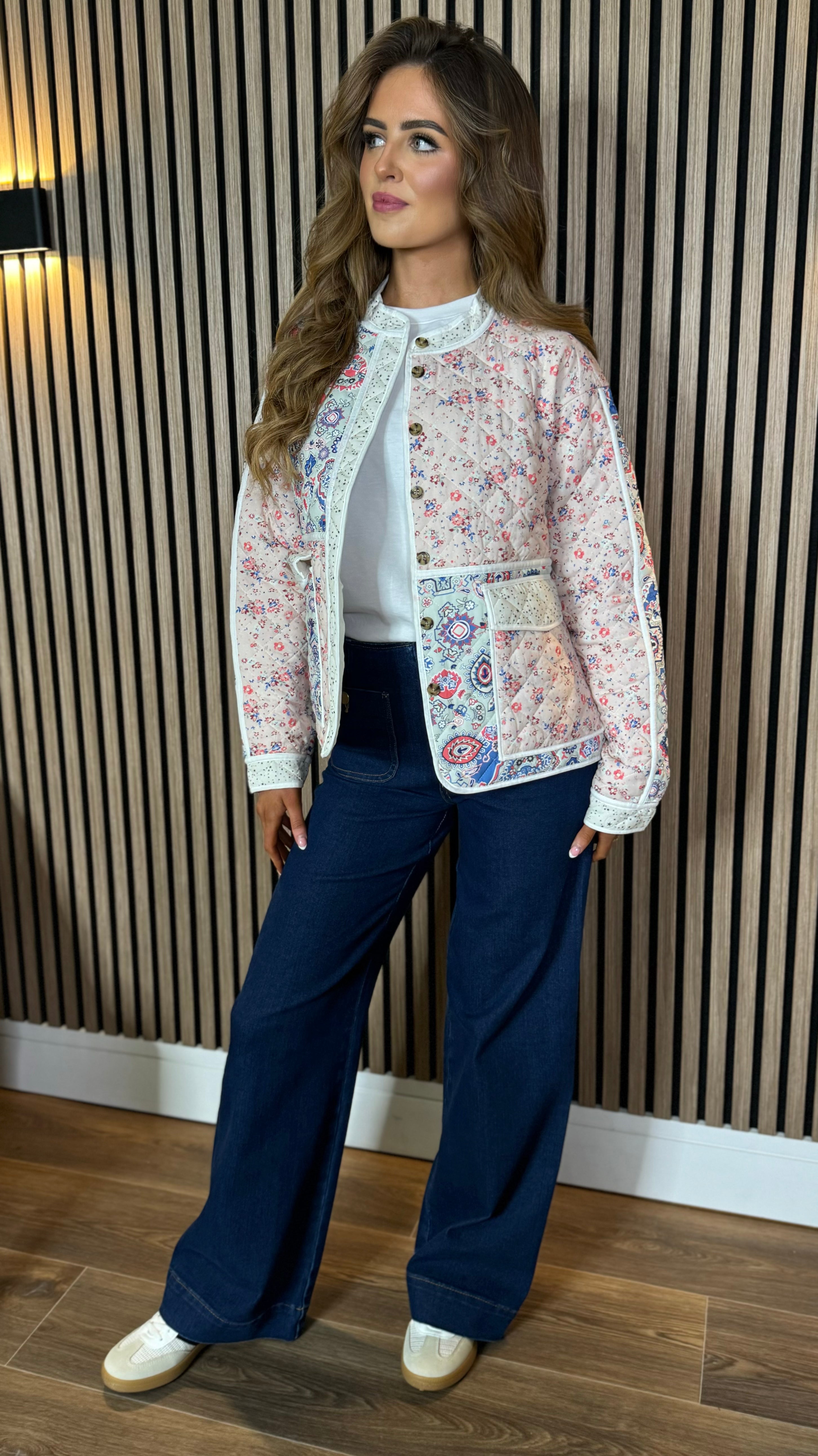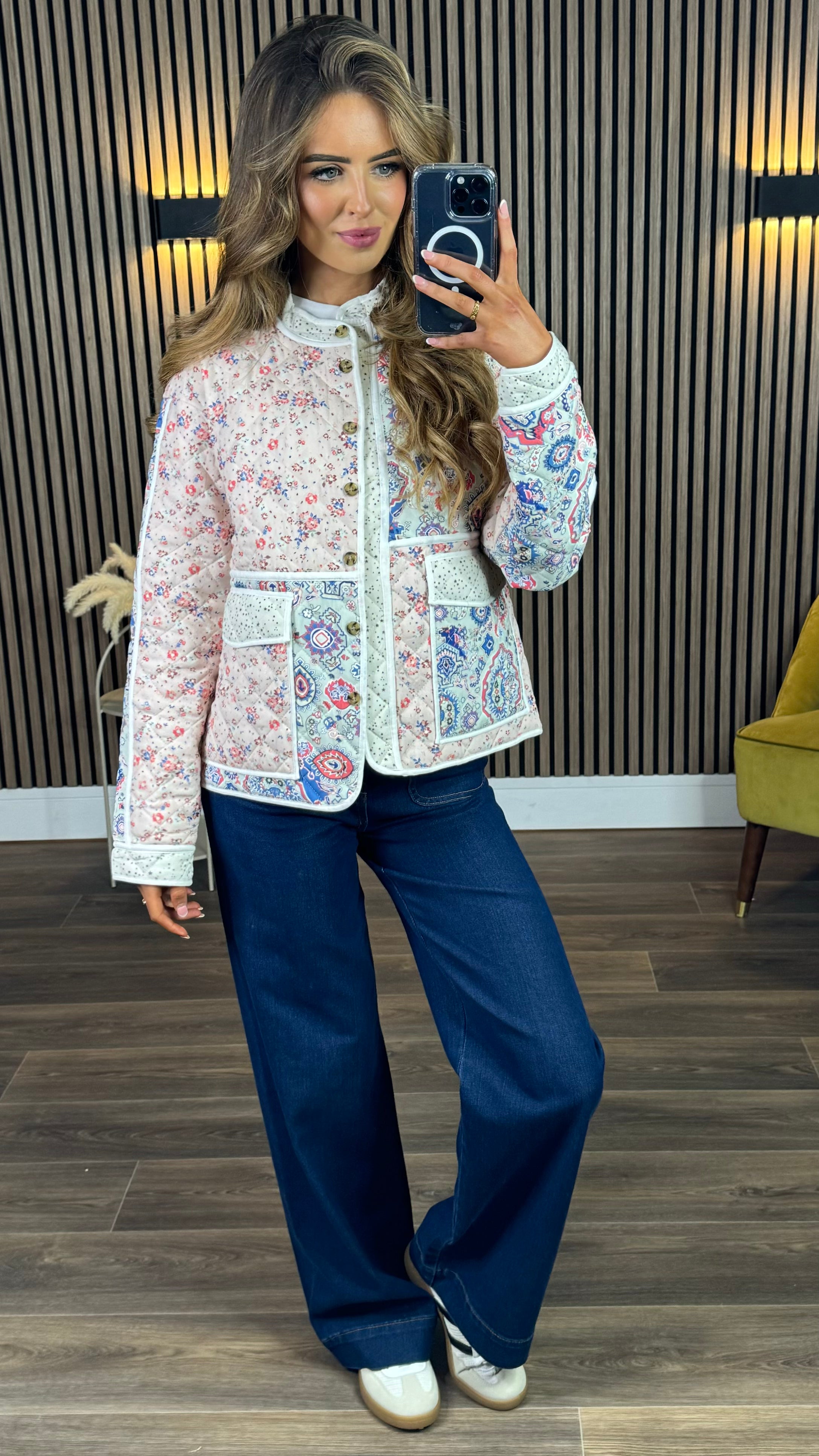Jules Light Pink & Blue Floral Patchwork Quilted Jacket