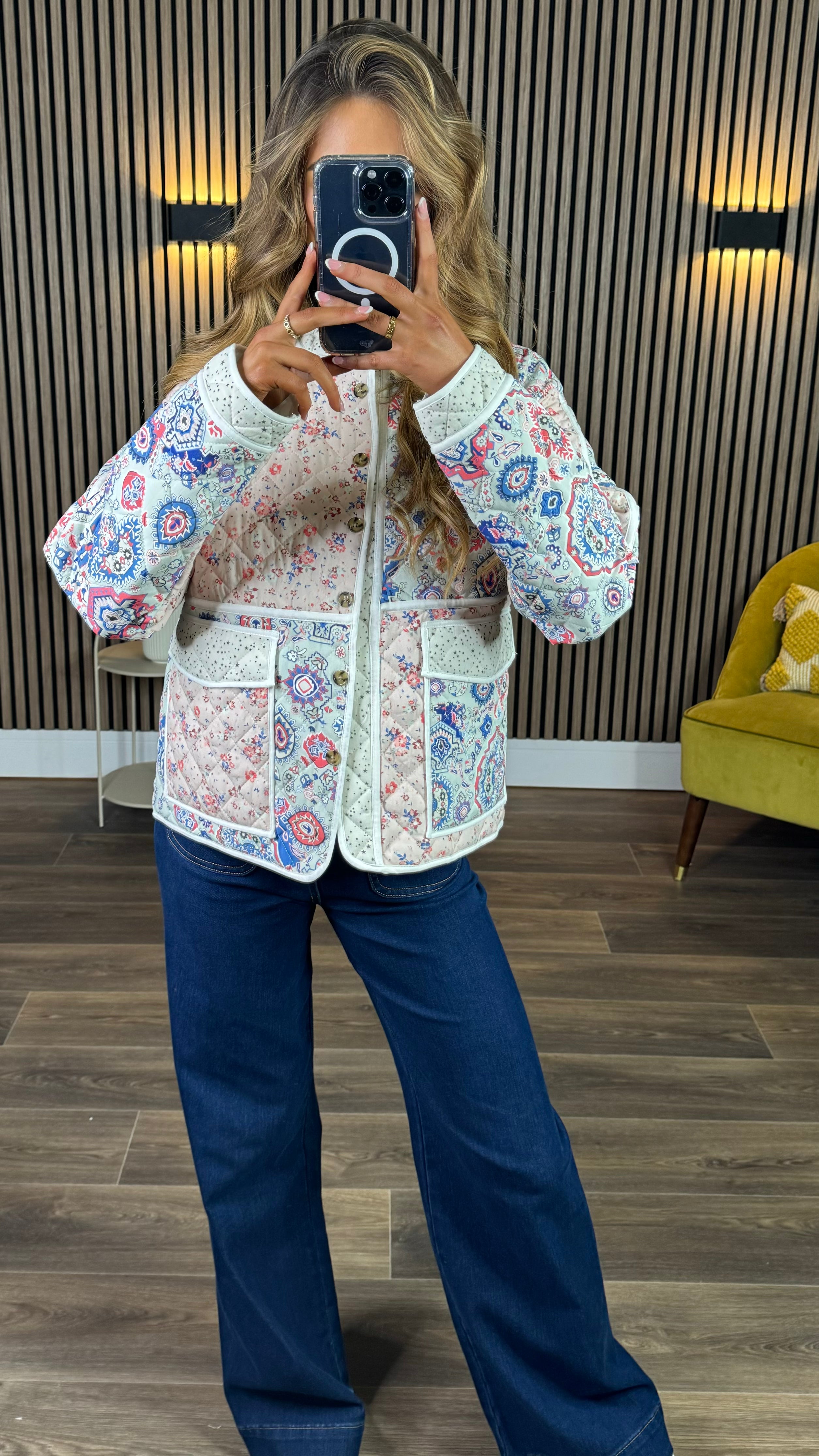 Stay comfortably stylish with the Jules Floral Patchwork Quilted Jacket!🌸💙 Featuring a round neckline and convenient button fastening, this jacket keeps you cozy and chic. Perfect for everyday wear or dressing up any outfit.👌