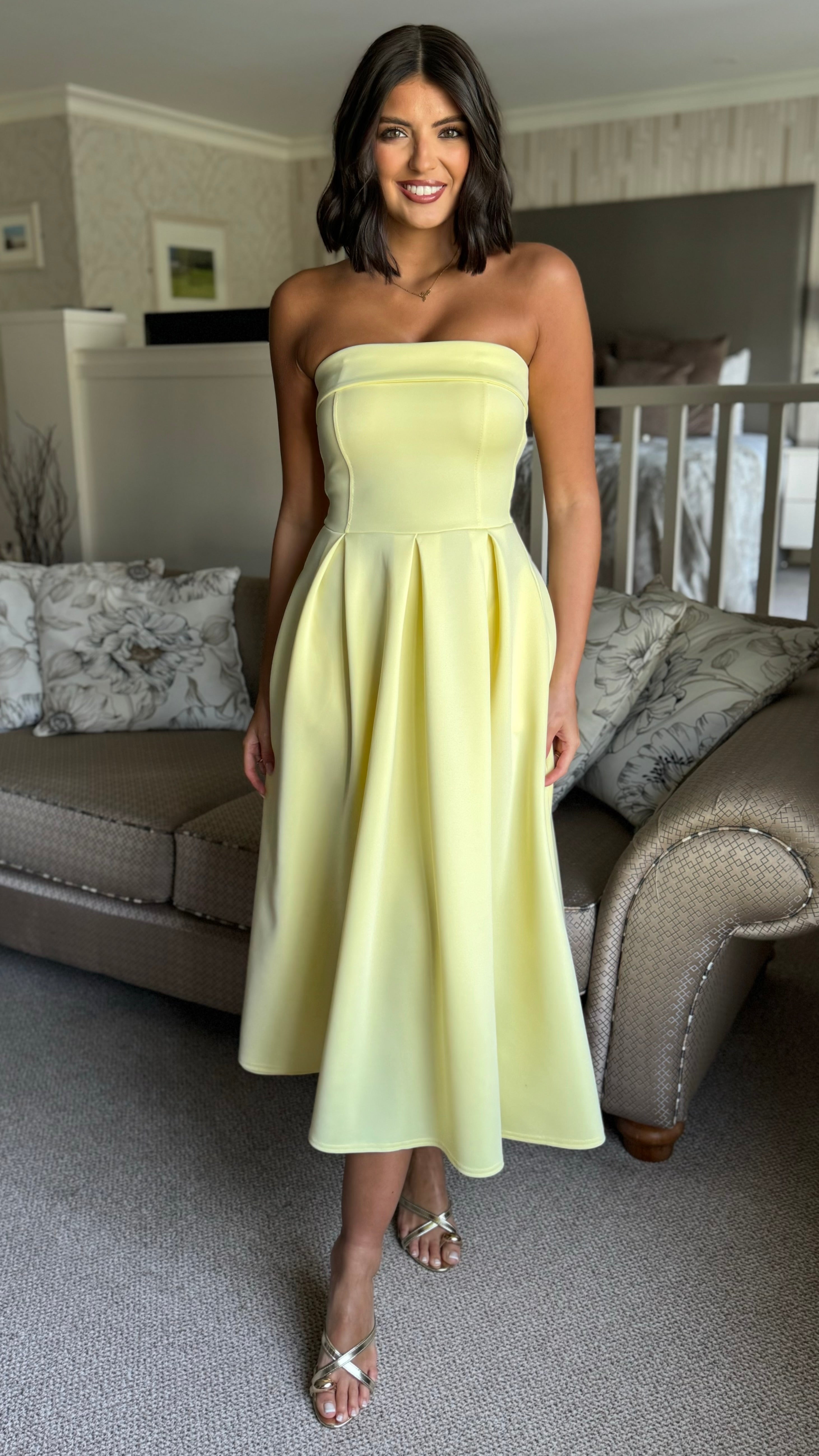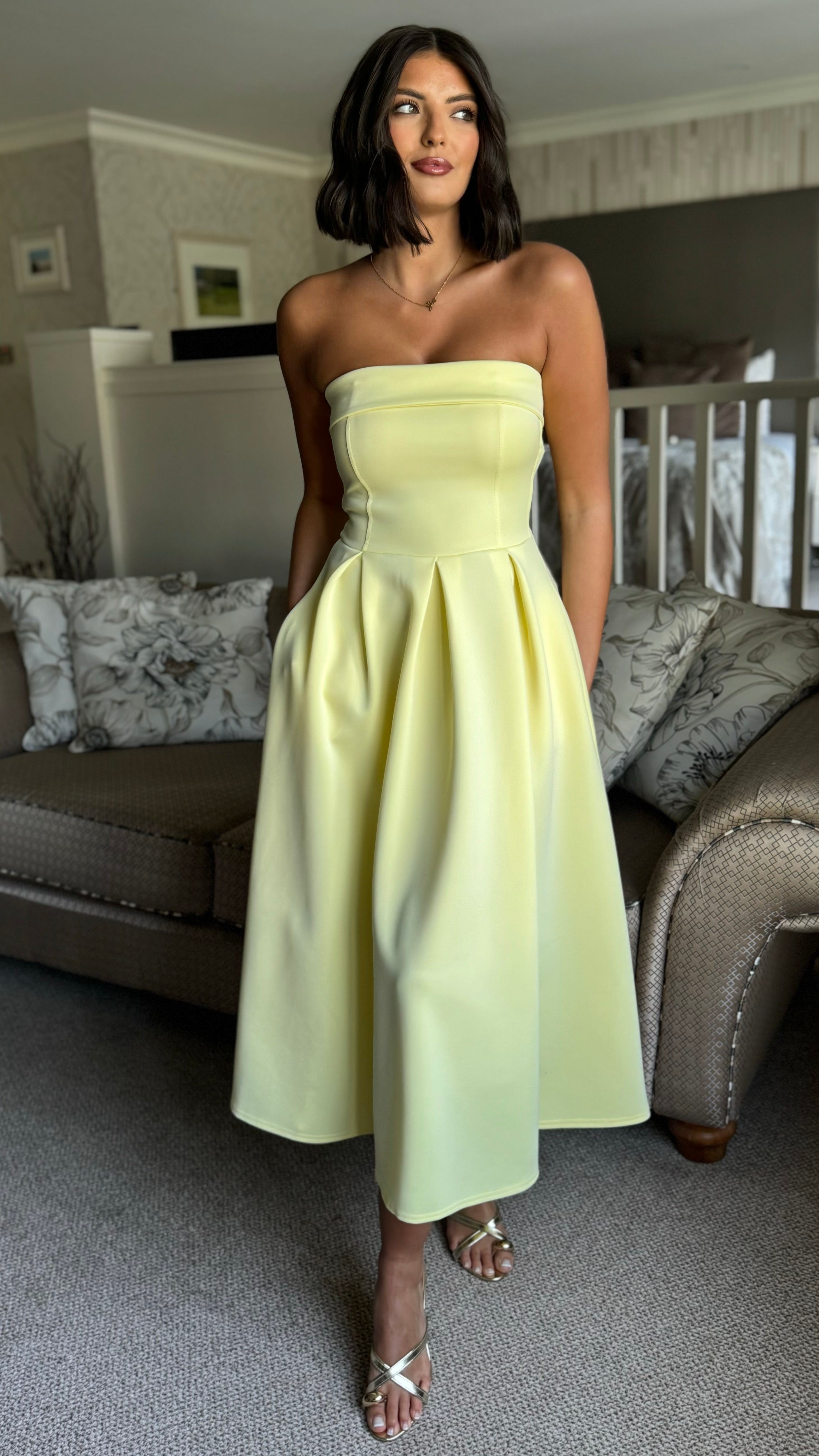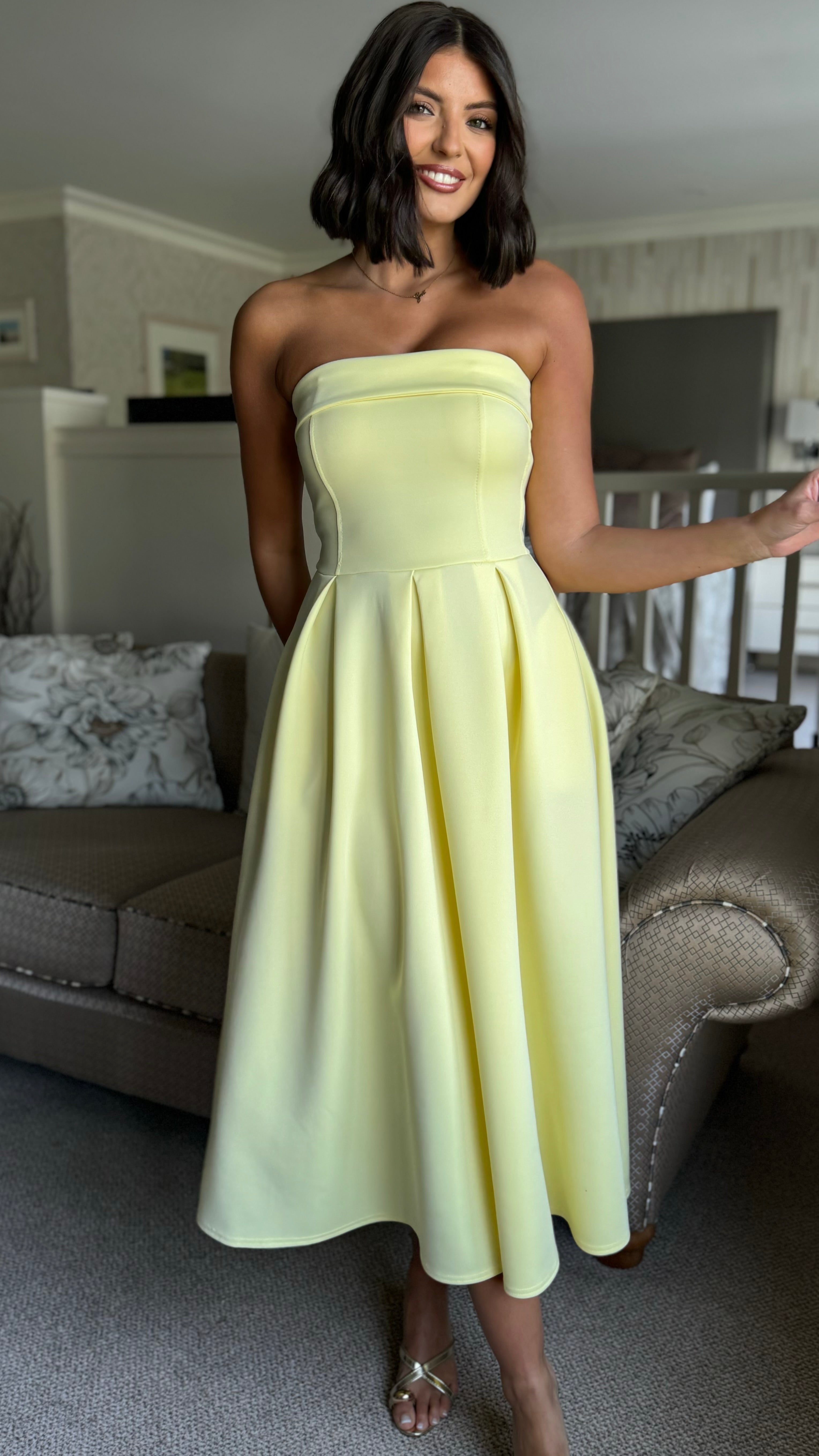 Ayda Lemon Strapless Bandeau Midi Dress (PRE ORDER)
