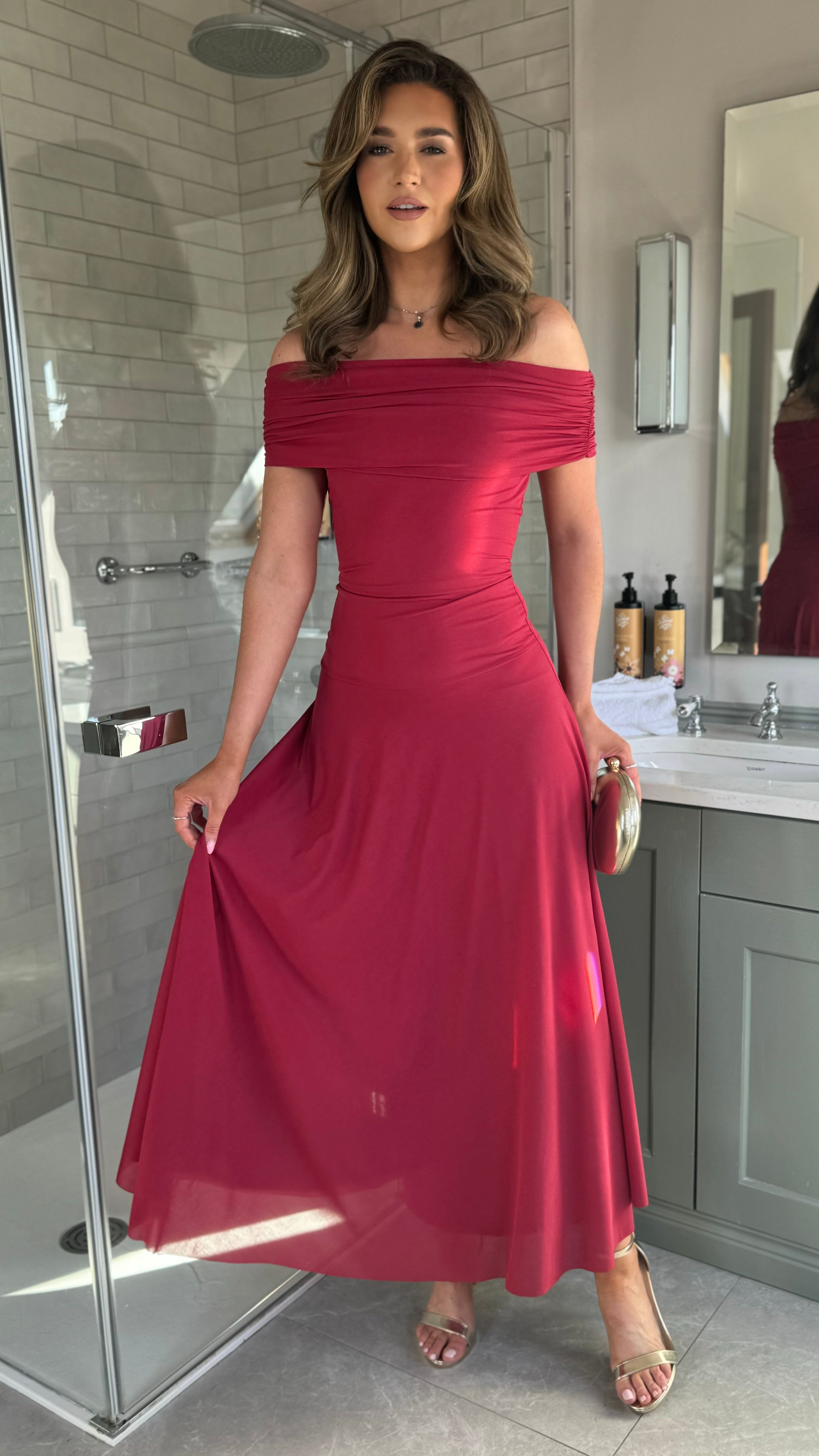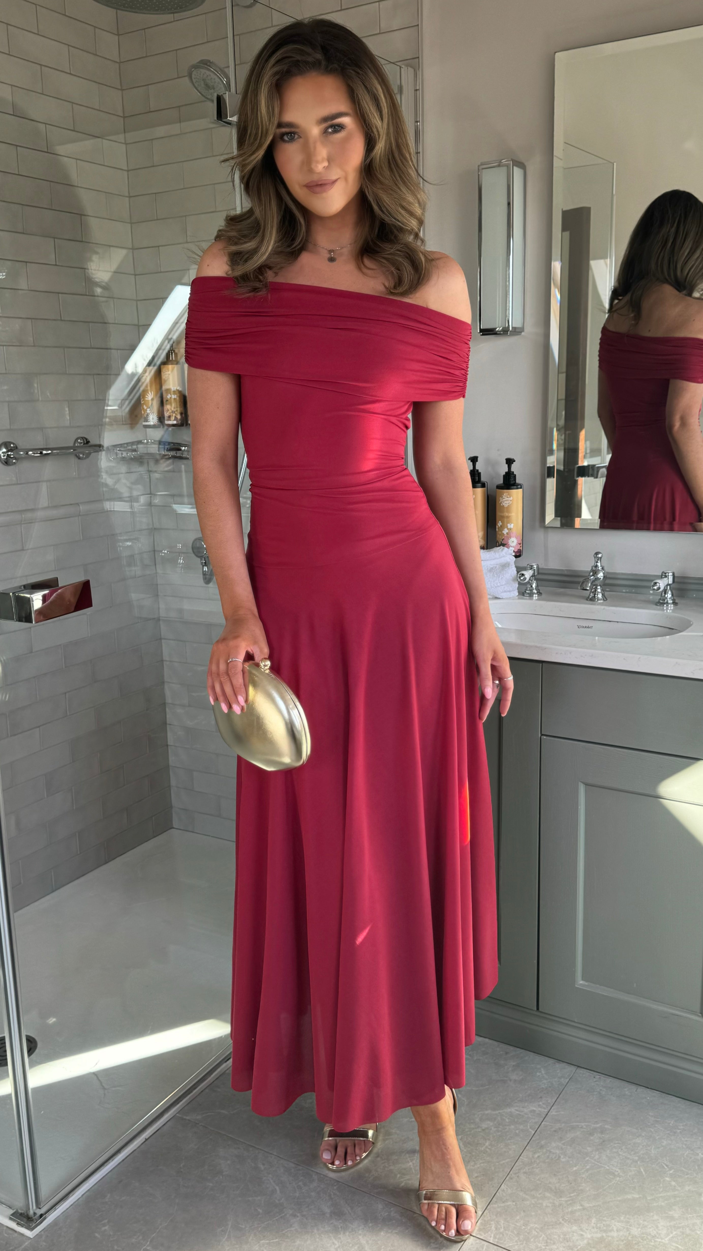 Emma Berry Off Shoulder Flared Maxi Dress (PRE ORDER)