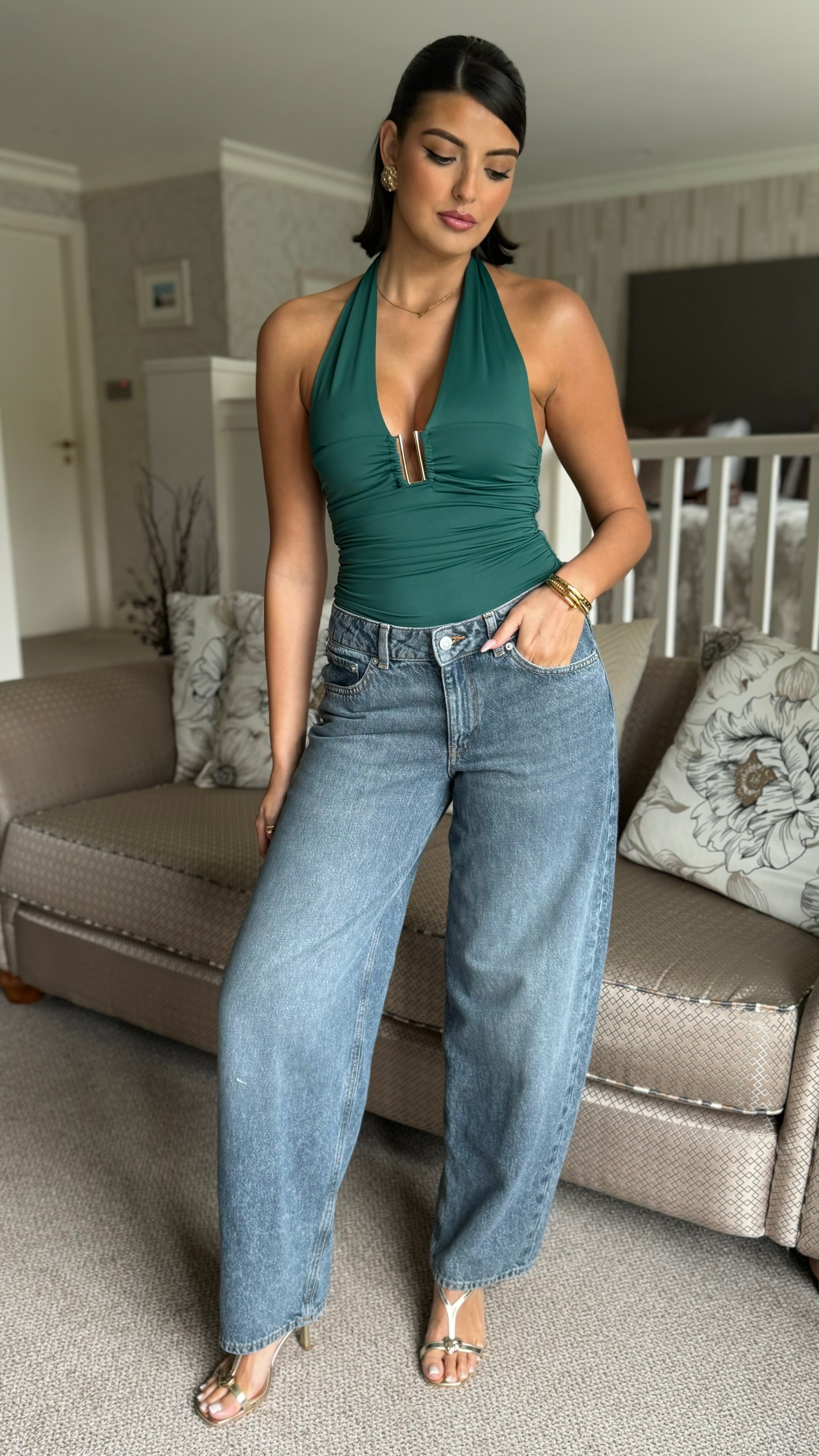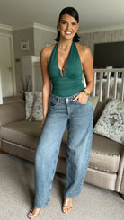 Quintessa Green Plunge Neck Top (PRE ORDER)
