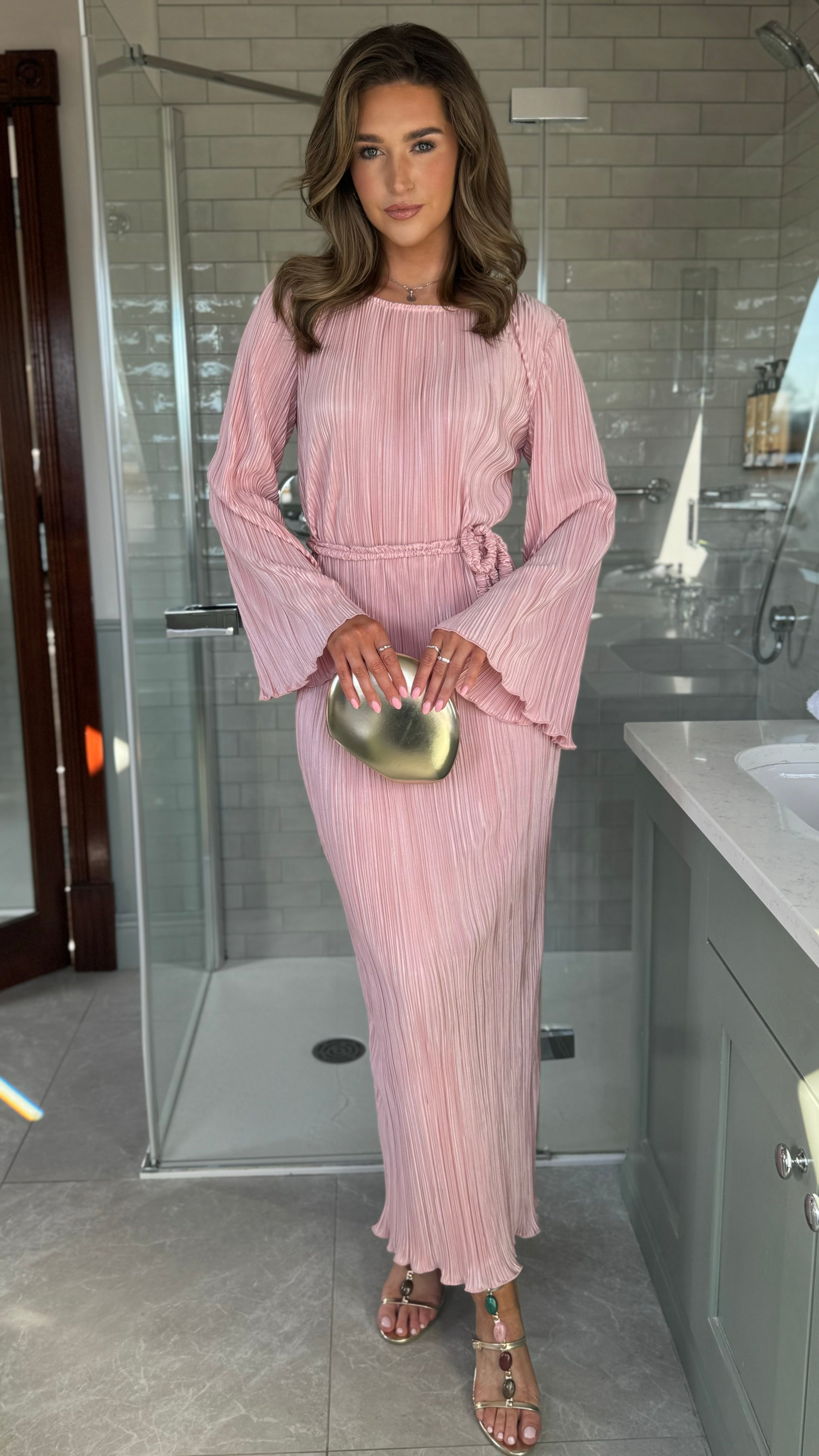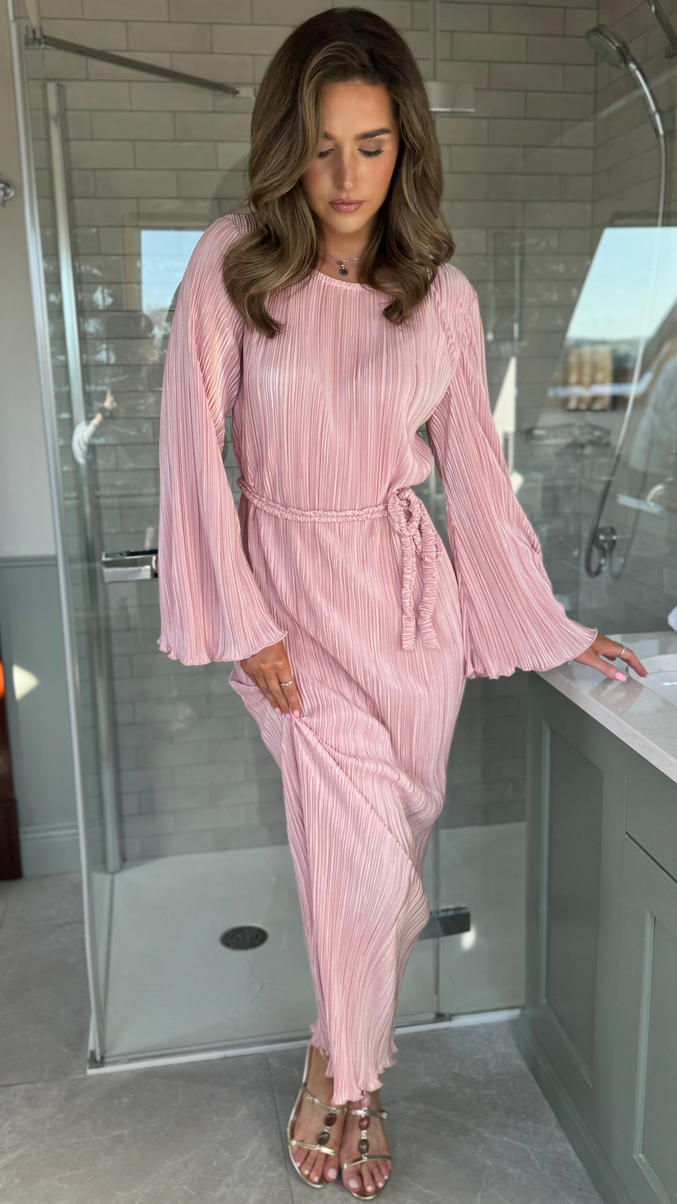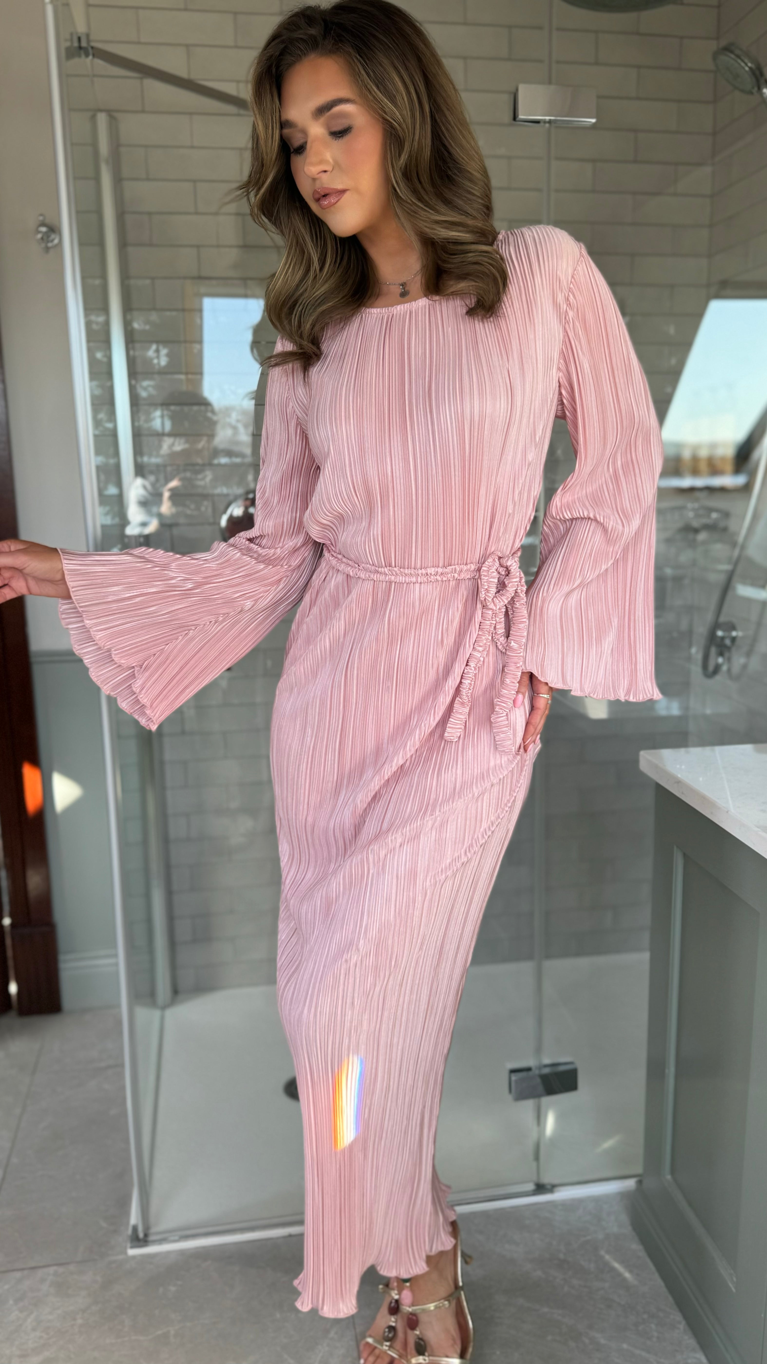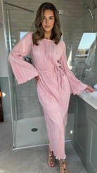 Tyler Pink Plisse Long Sleeve Midi Dress (PRE ORDER)