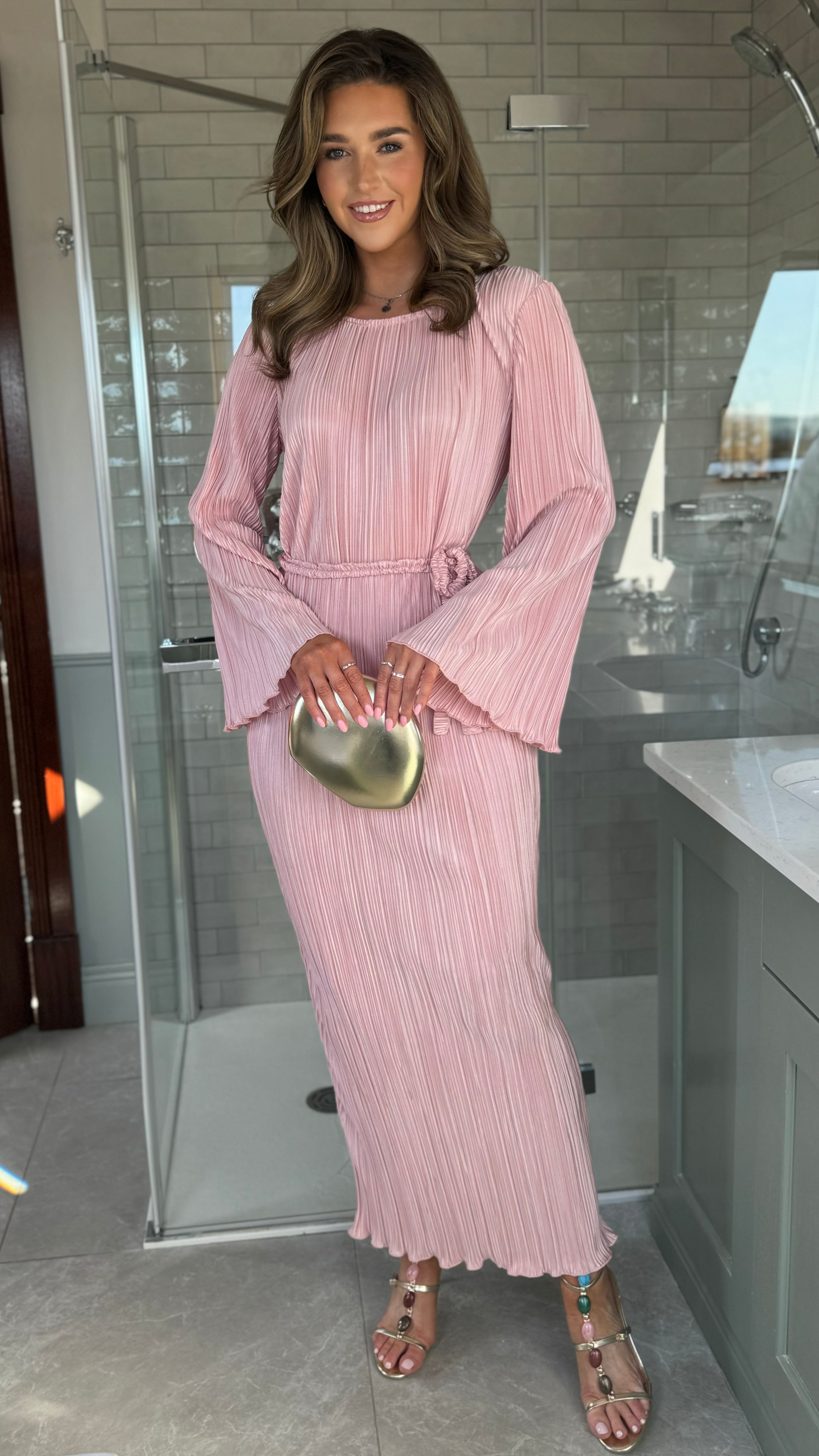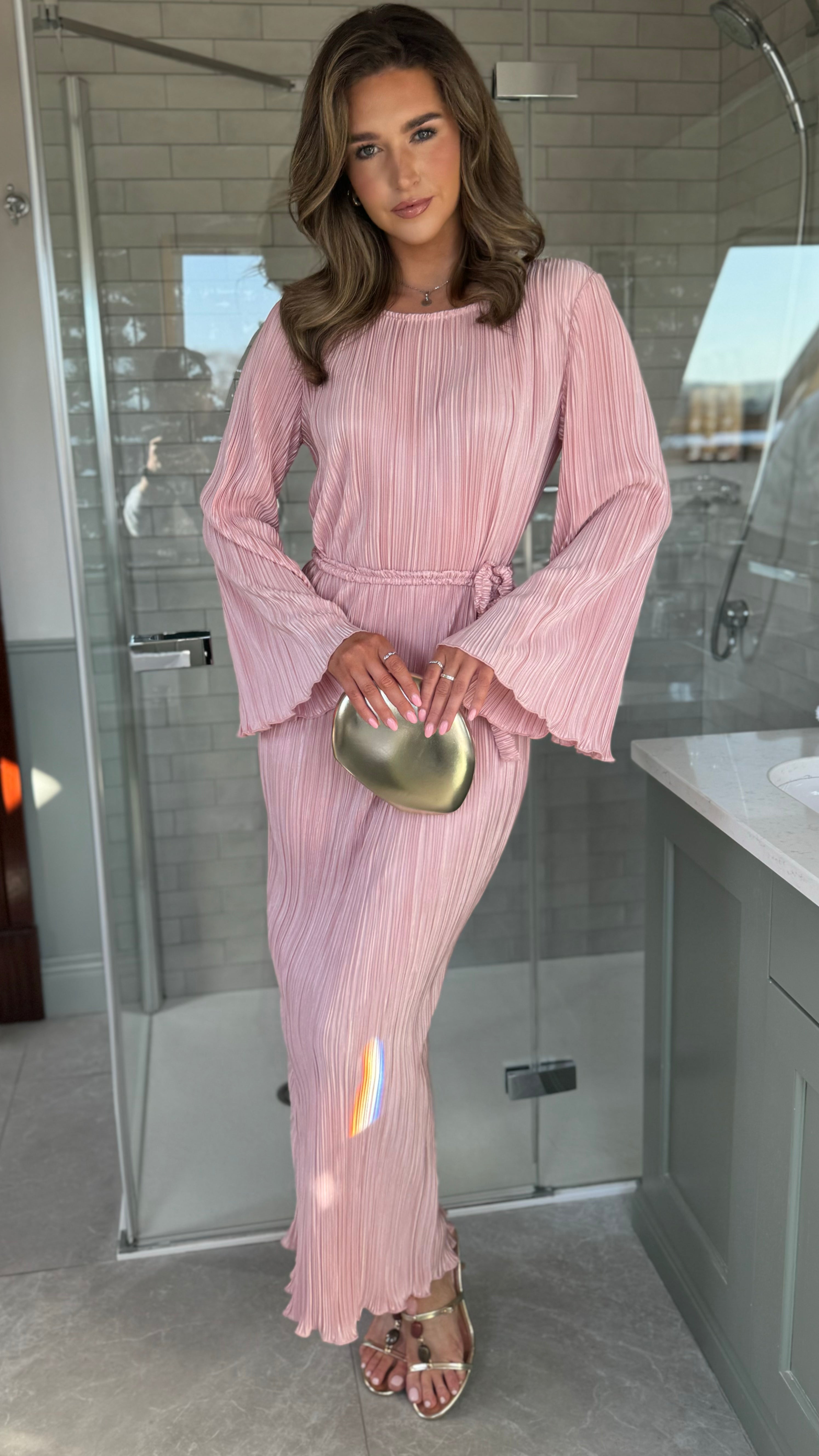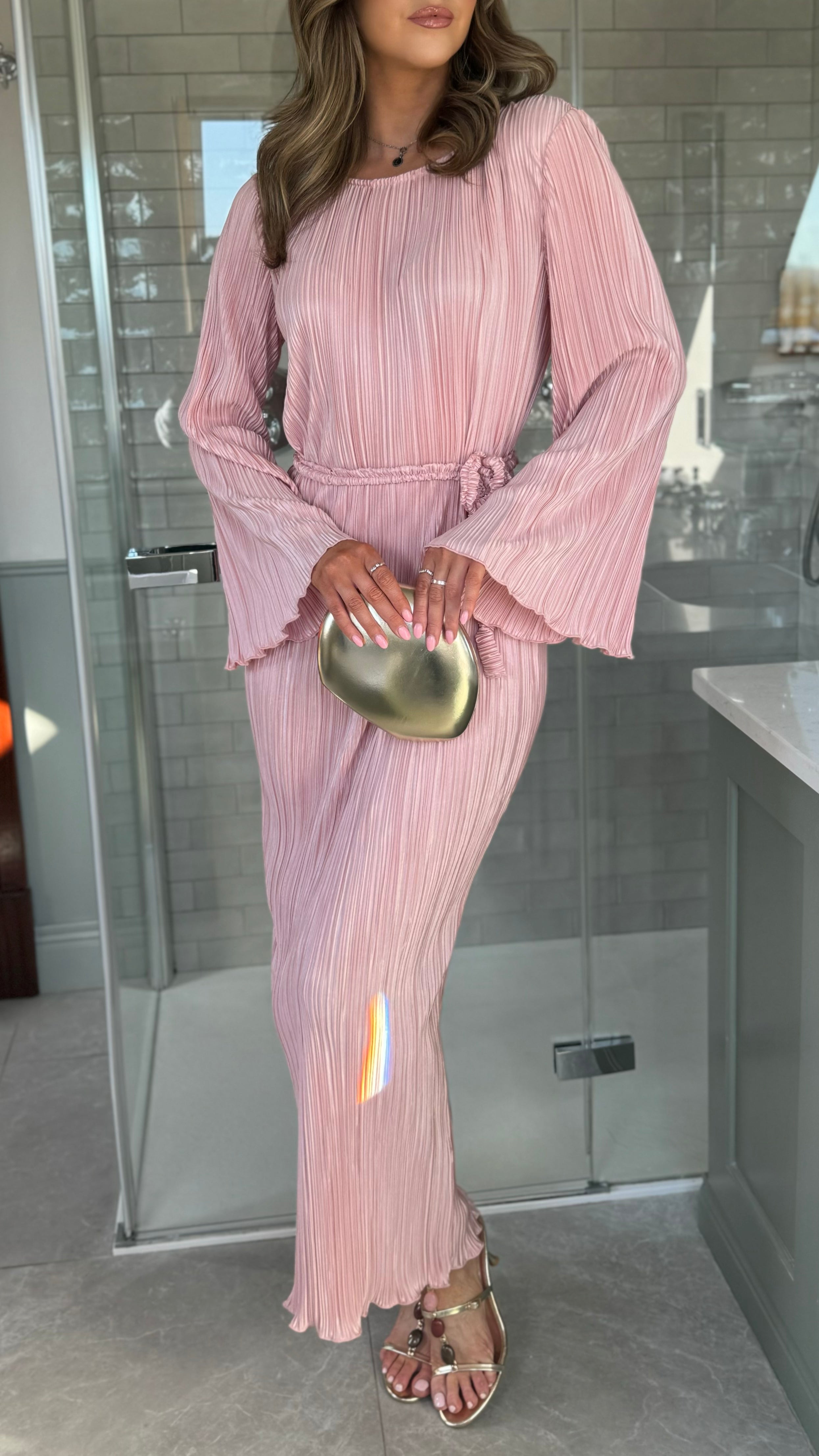 Tyler Pink Plisse Long Sleeve Midi Dress (PRE ORDER)