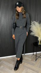 Kelly Grey Turtle Neck Knit Jumper Midi Dress