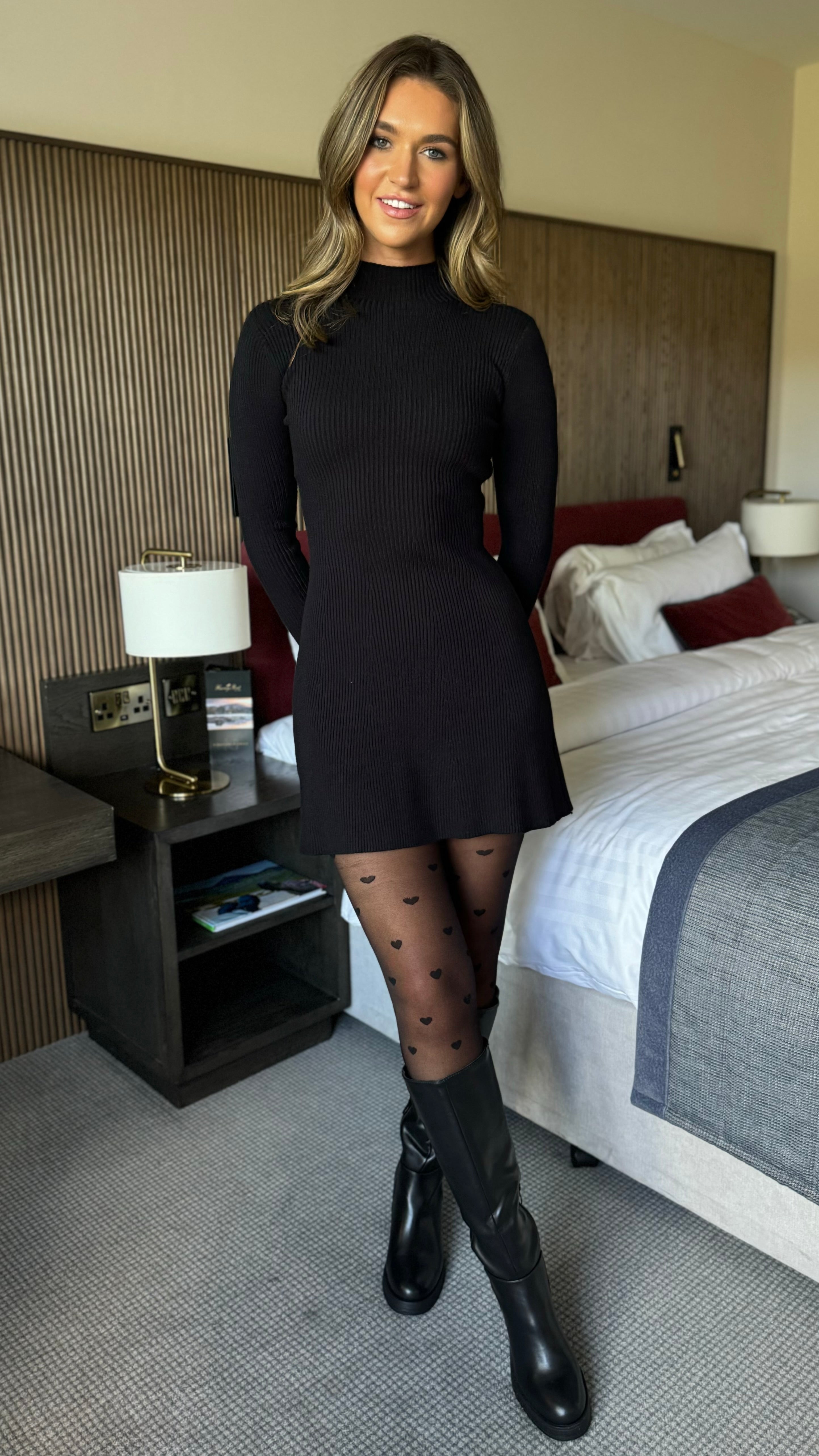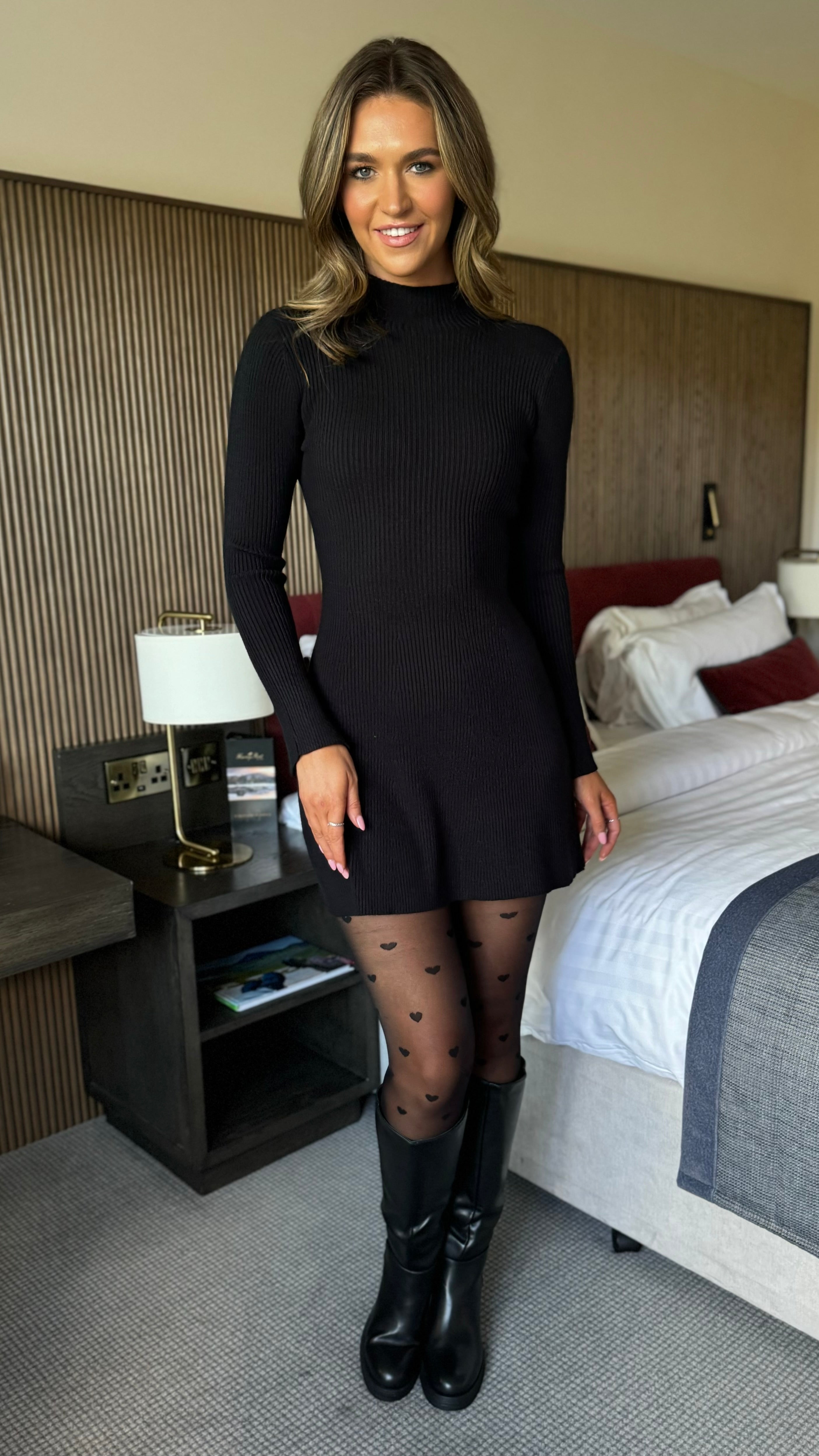 Deirdre Black High Neck Knitted Mini Dress (PRE-ORDER)