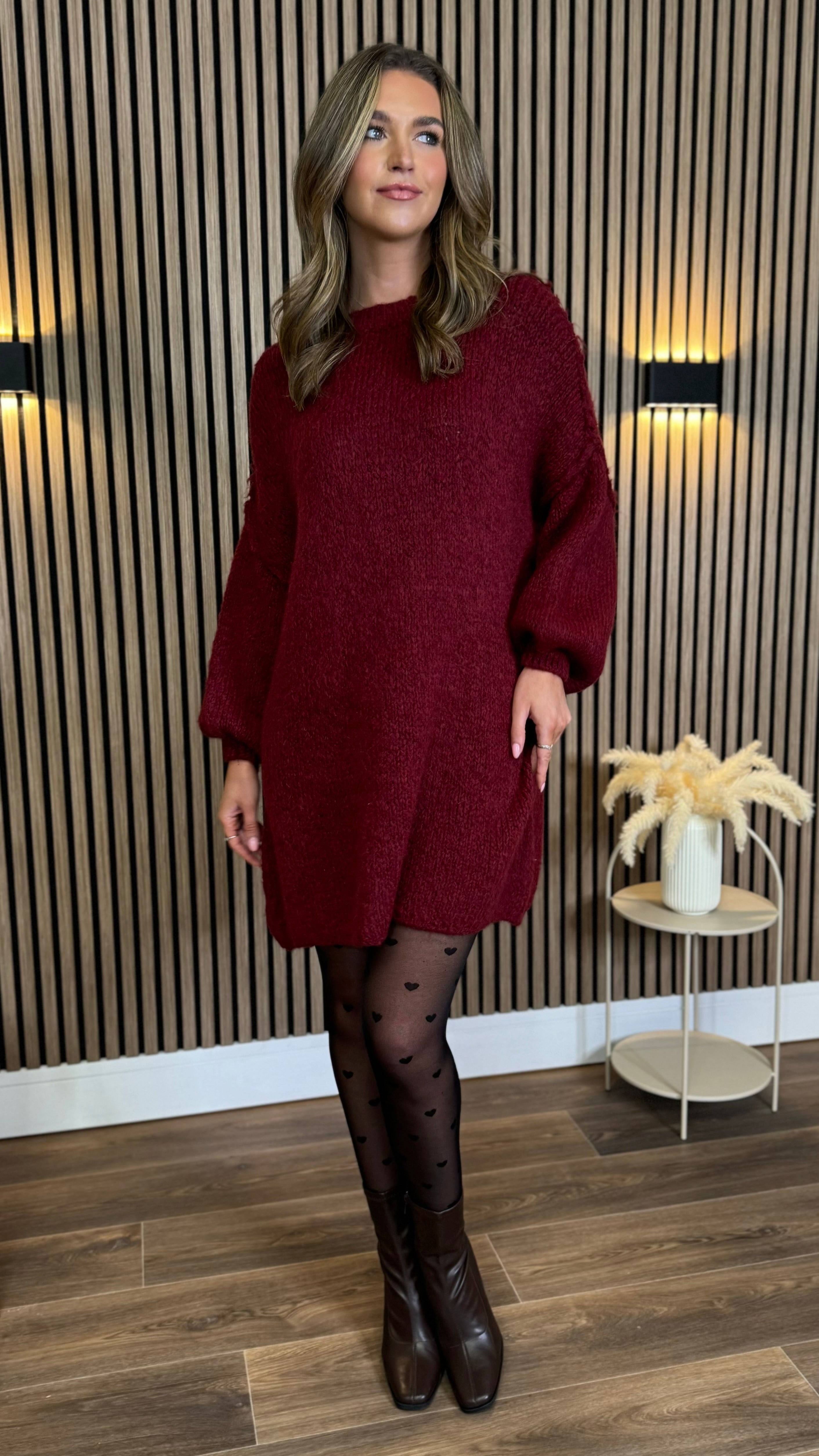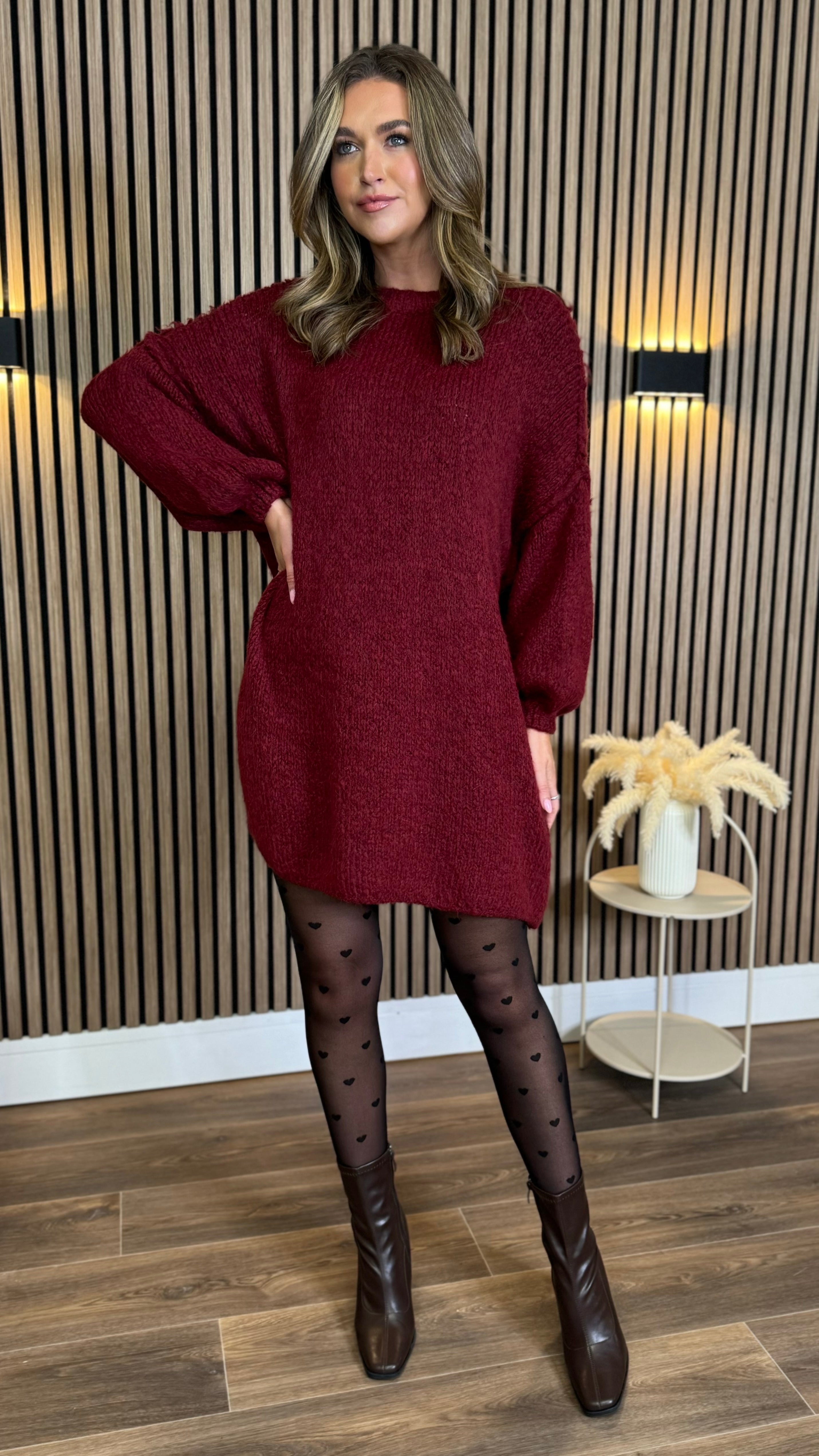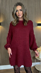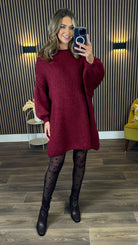 Get ready to cozy up in style with our Renae Burgundy Chunky Knit Jumper Dress. This versatile dress features a chunky knit design that will keep you warm and stylish all season long. Perfect for layering or wearing on its own. Don't compromise on comfort or fashion, get yours today!