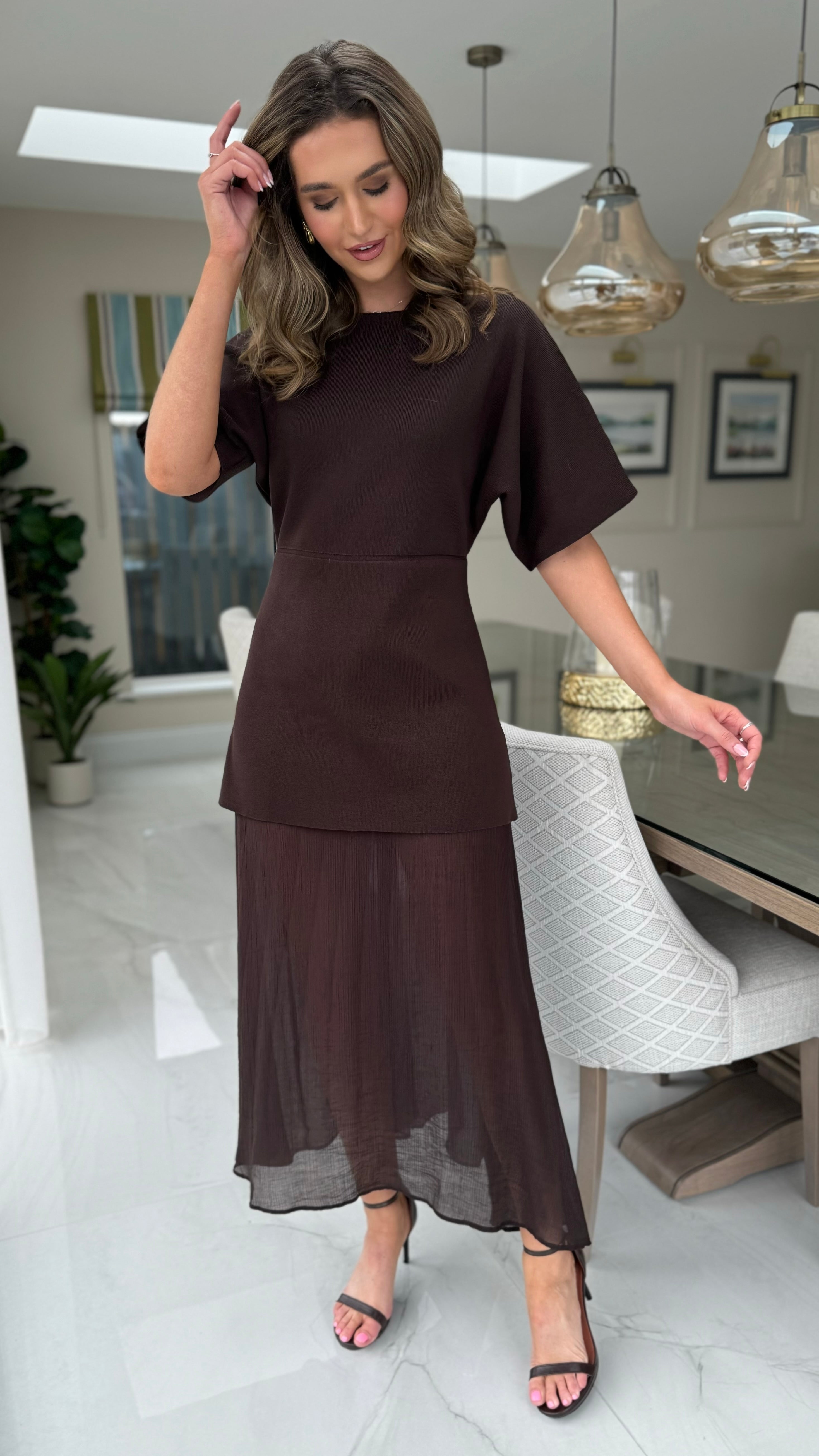Zora Chocolate Brown Knitted Mesh Detail Maxi Dress
