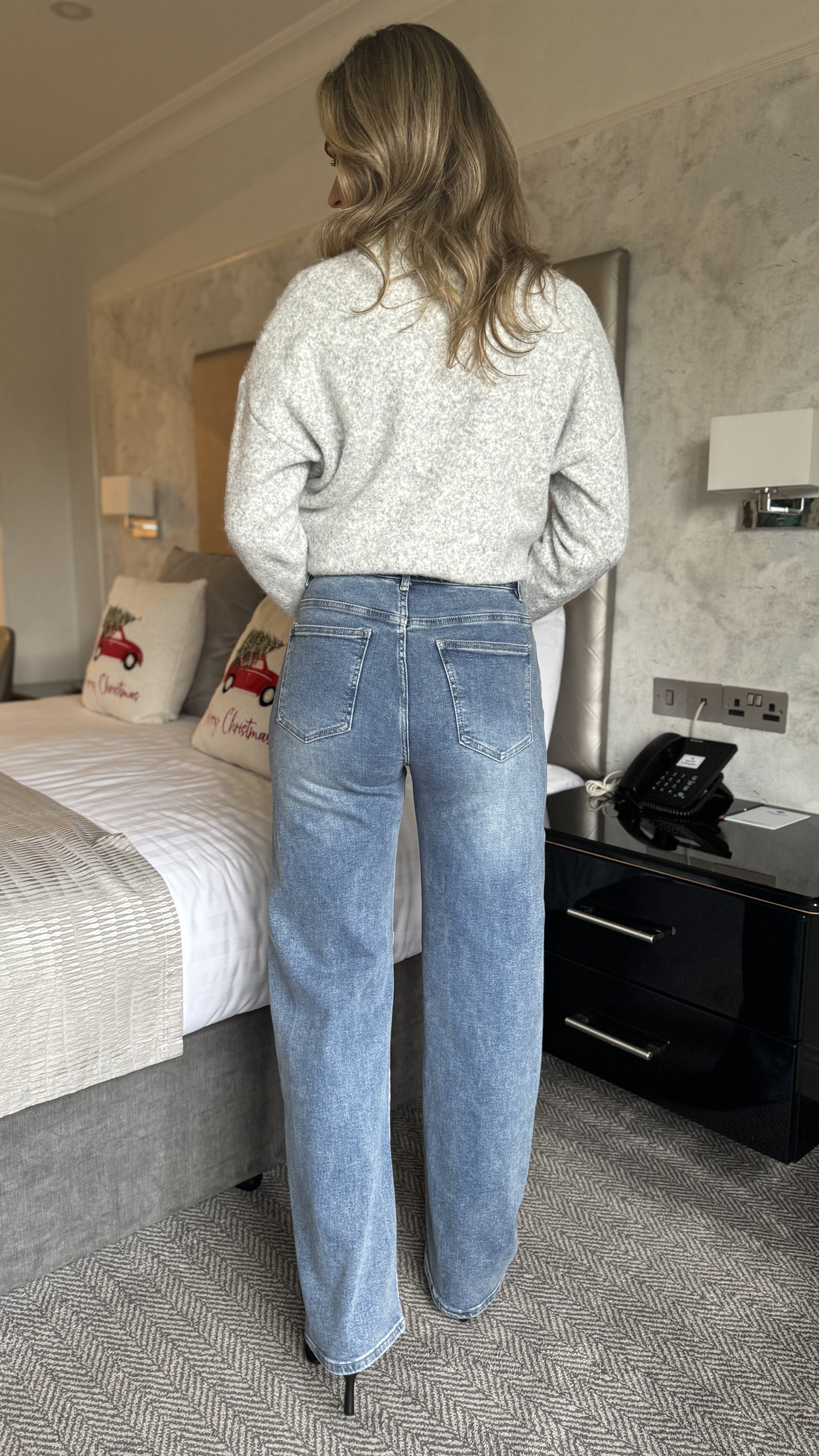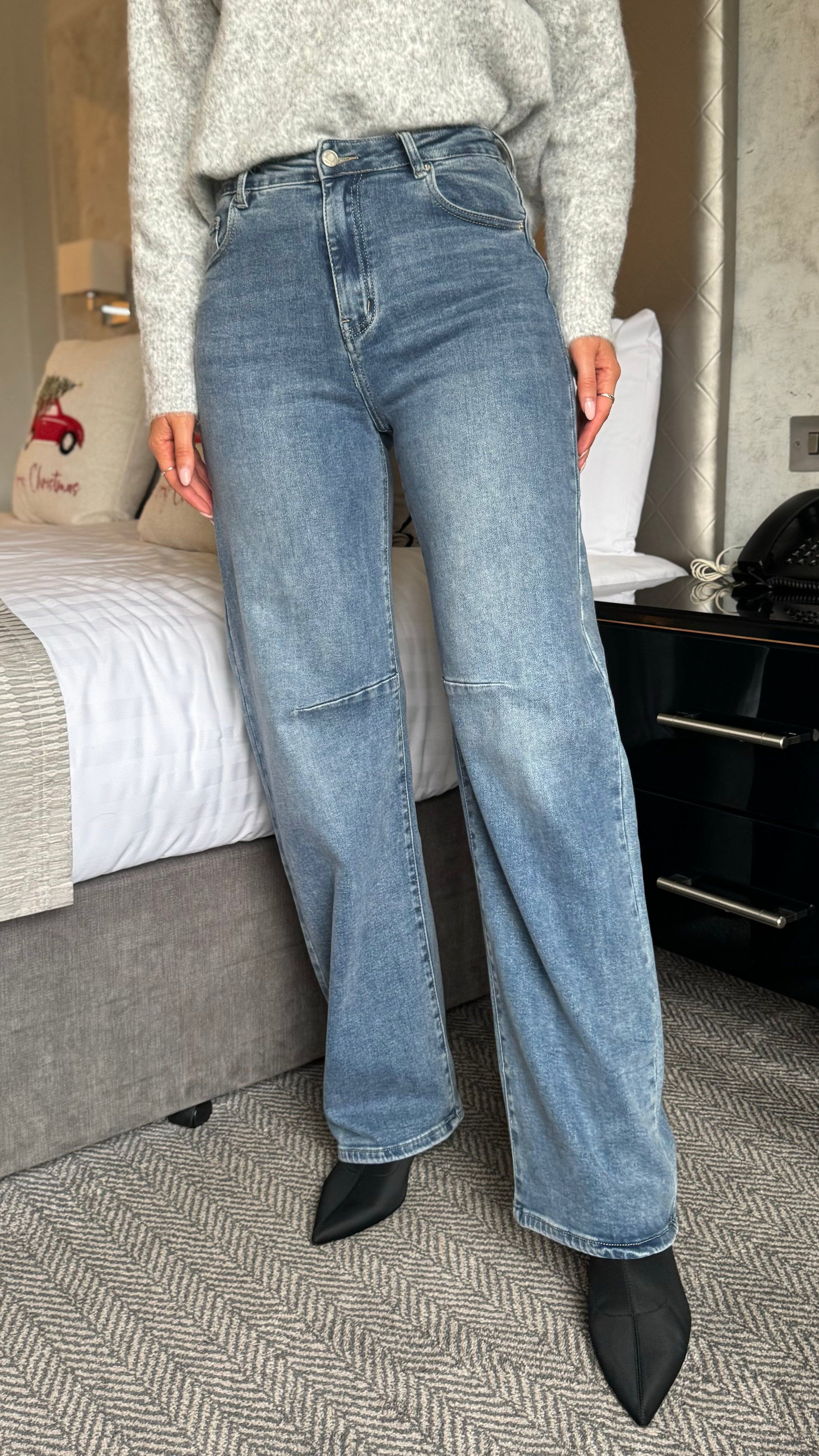 Introducing the Elly Mid-Blue Denim Barrel Jeans – your new go-to for effortless cool. These high-waisted beauties feature a trendy barrel leg silhouette that's equal parts comfy and chic, paired with a flattering faded wash that looks like you've been styling them forever. Dual front and back pockets keep your essentials close, while the secure zip and button closure means you're locked in for the day. Whether you're running errands or catching up with friends, these jeans deliver that perfect blend of relaxed vibes and polished edge.