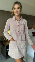 Kenna Dusky Pink Denim Long Sleeve Mini Dress