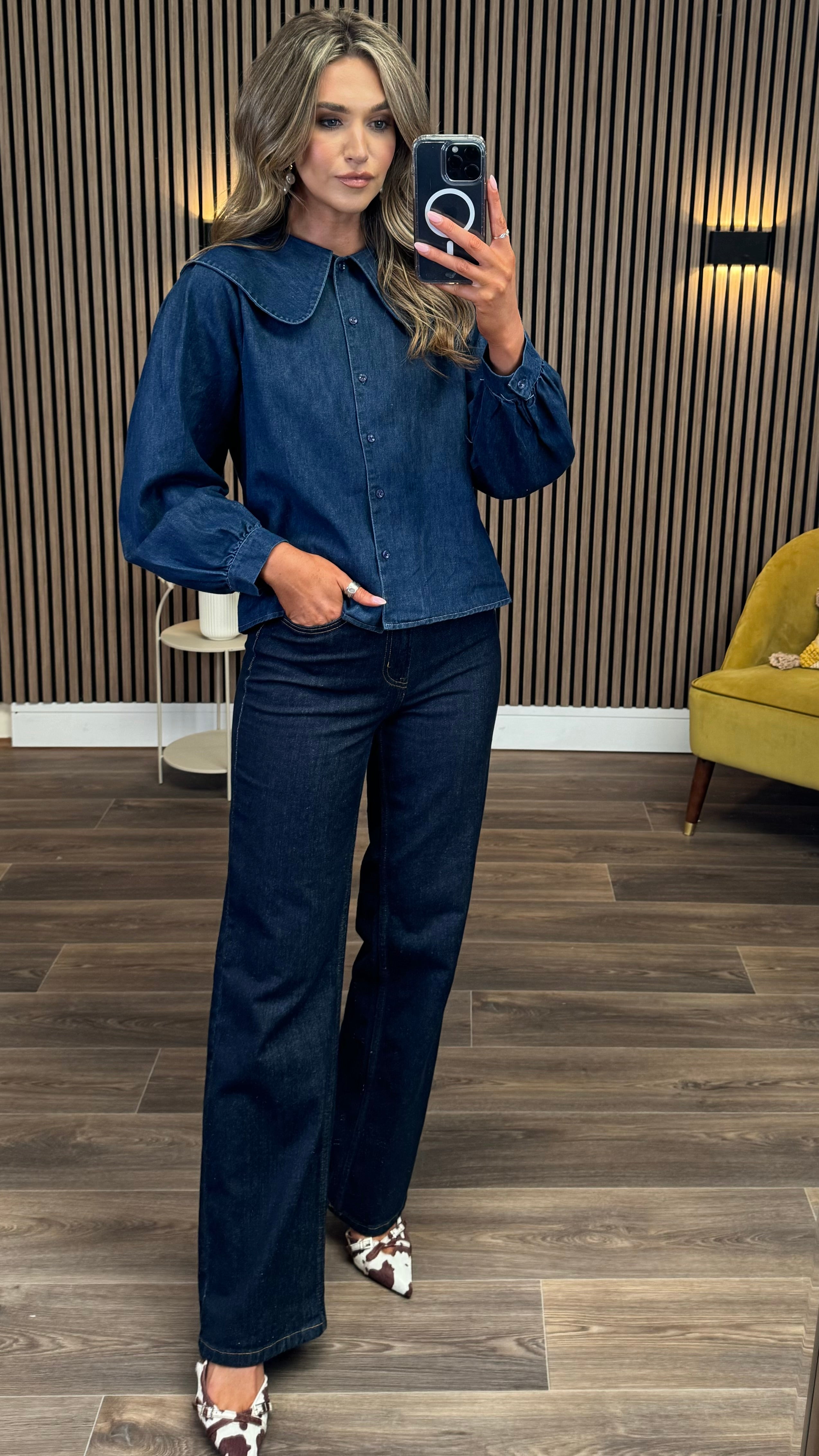 Rock your casual look with our Paisley Dark Denim Collared Long Sleeve Top! This versatile piece brings fun to your wardrobe with its classic collar and rich denim shade. Perfect for mixing and matching with your favourite bottoms. Throw it on and you're ready for anything the day brings!