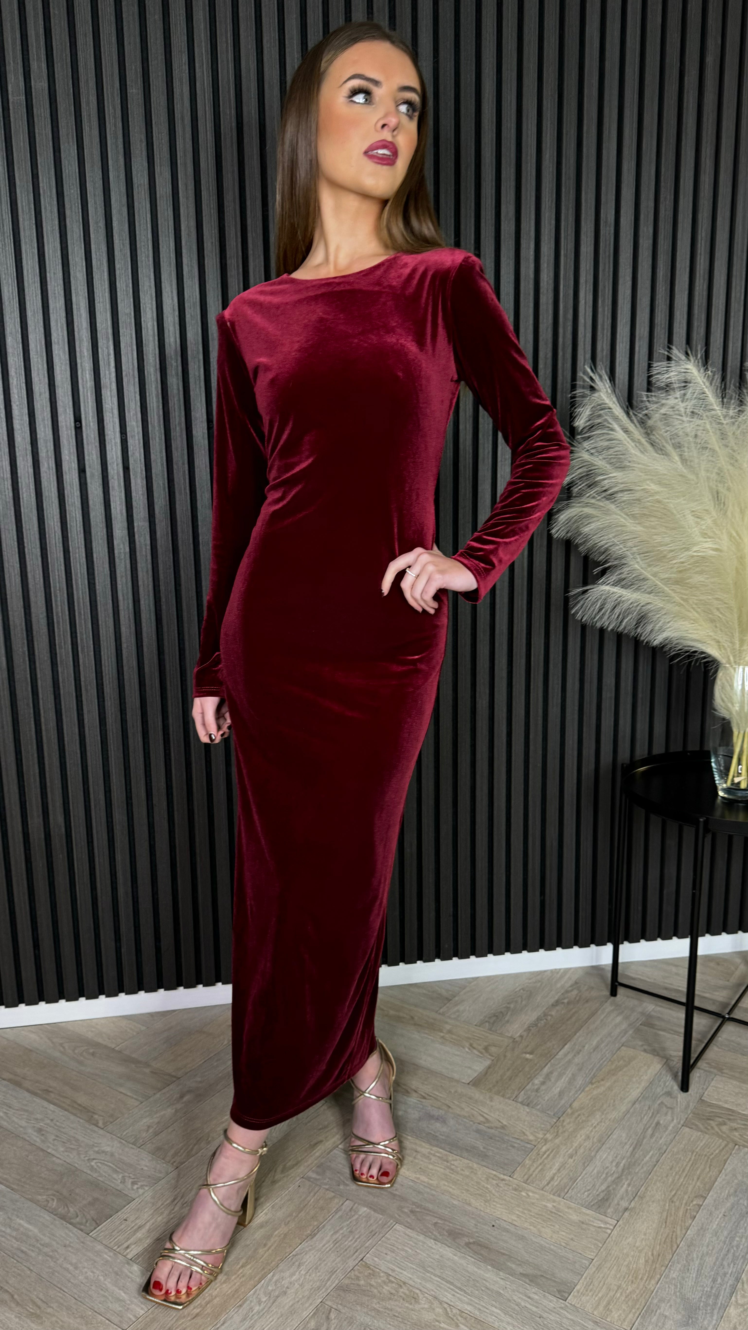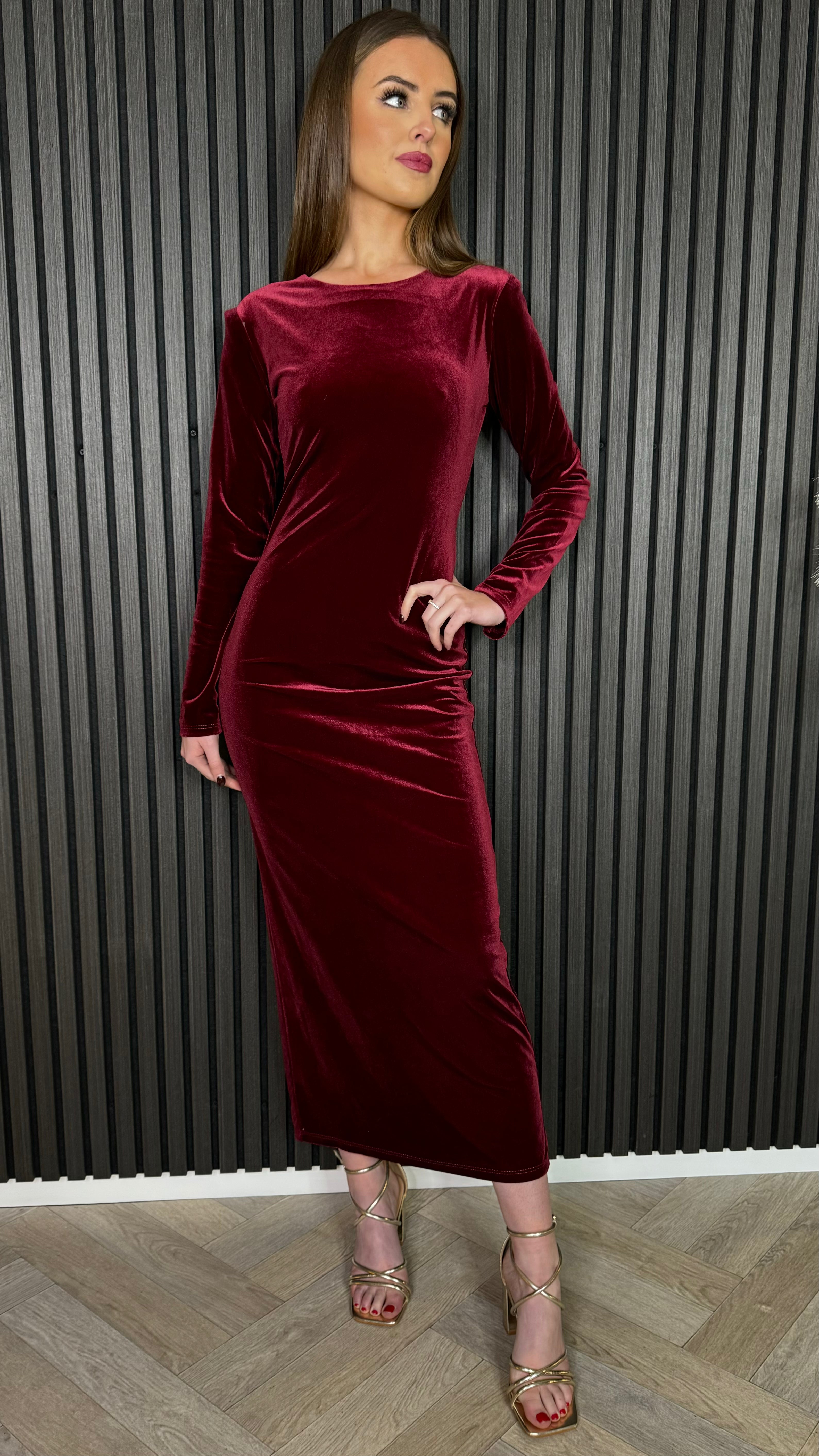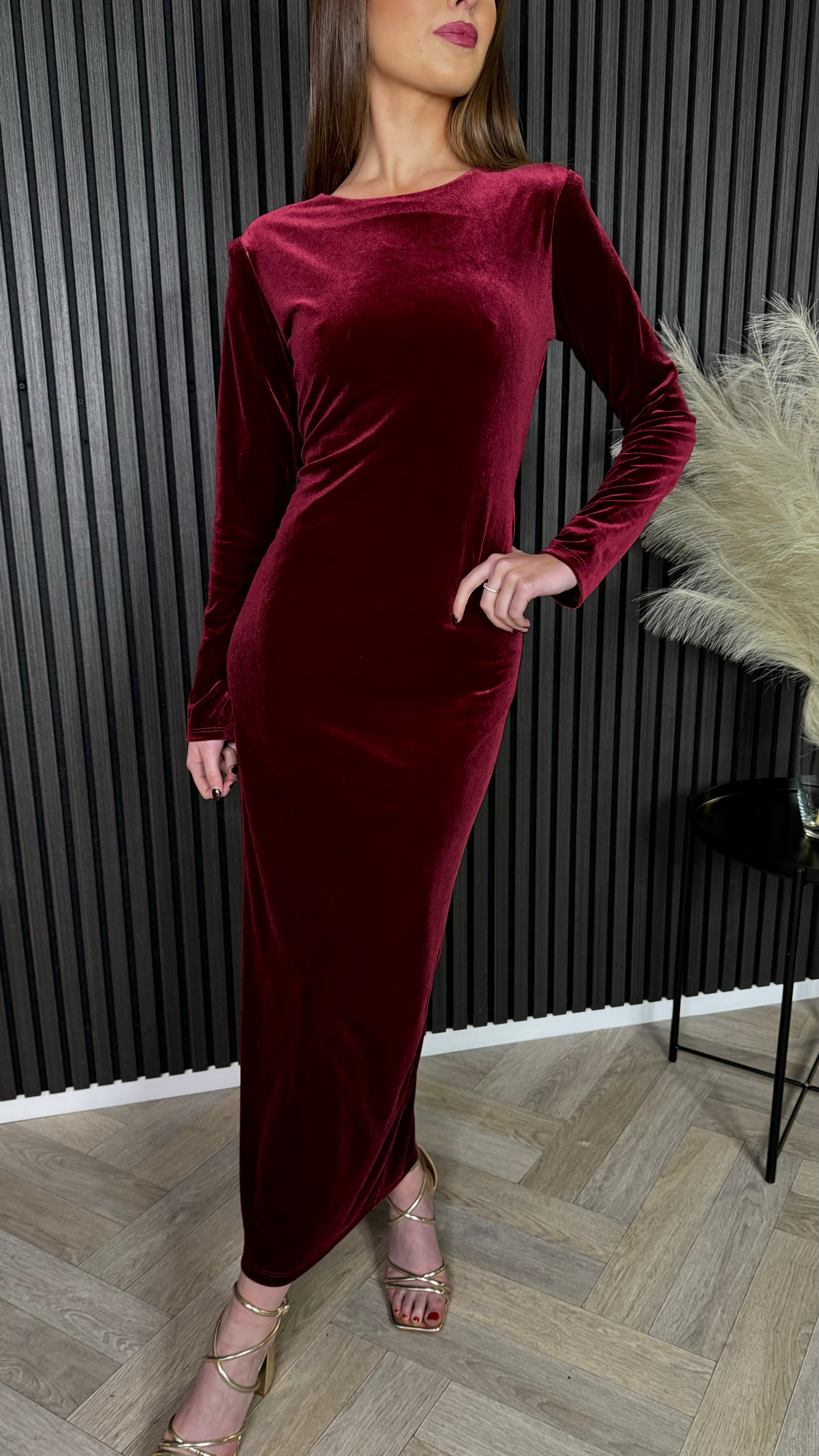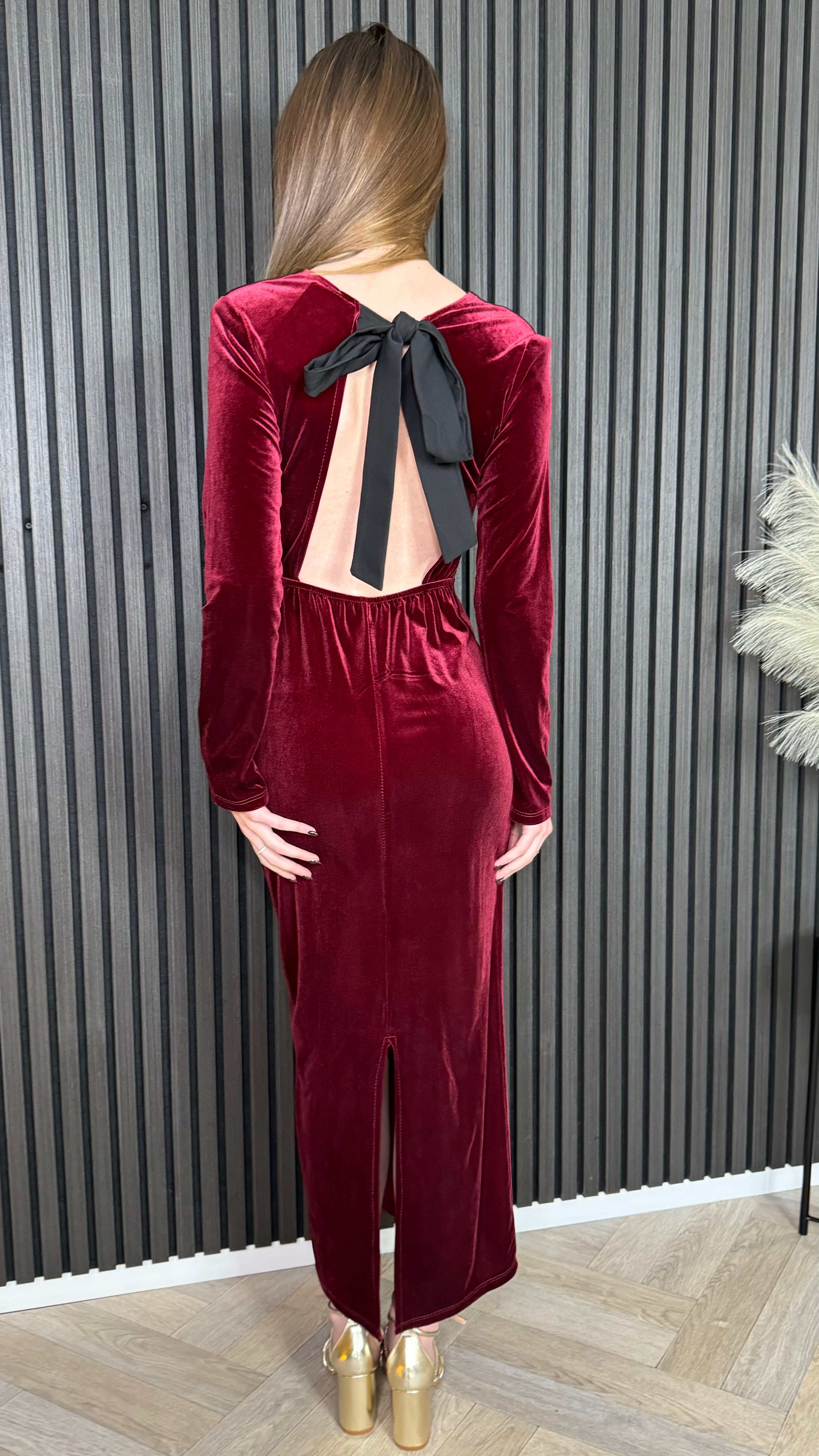 Clarice Burgundy Back Bow Detail Midi Dress