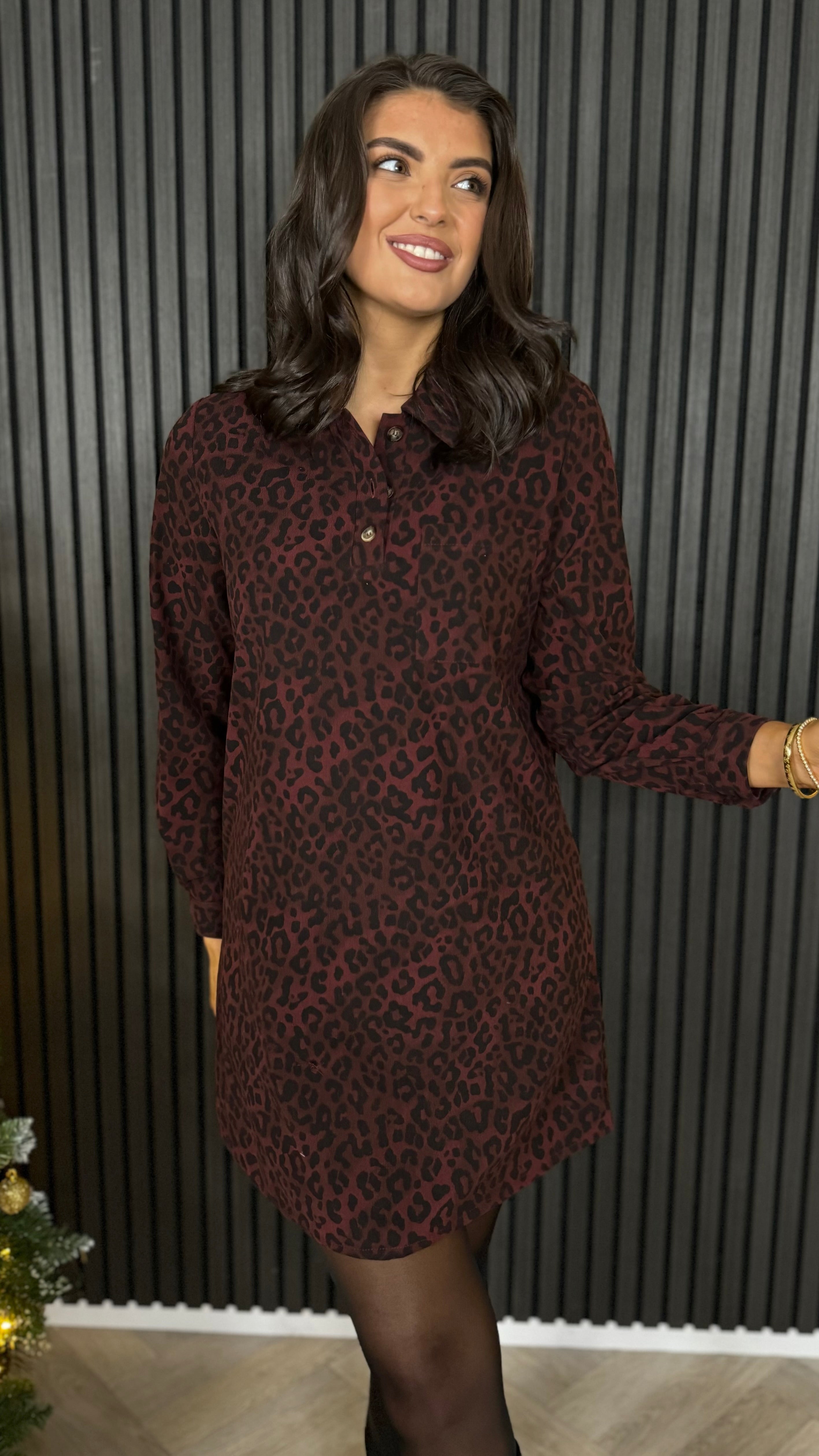 Unleash your wild side with the Rowena Leopard Print Collar Detail Mini Dress—a playful piece that roars with attitude. This chic mini features a striking leopard print that commands attention, paired with long sleeves and functional button cuffs for effortless style. The ribbed fabric hugs your curves in all the right ways, while the collar detail adds a touch of sophistication to this fun, flirty silhouette. Perfect for nights out or turning heads wherever you go, this dress proves that bold prints and mini lengths are always in season.