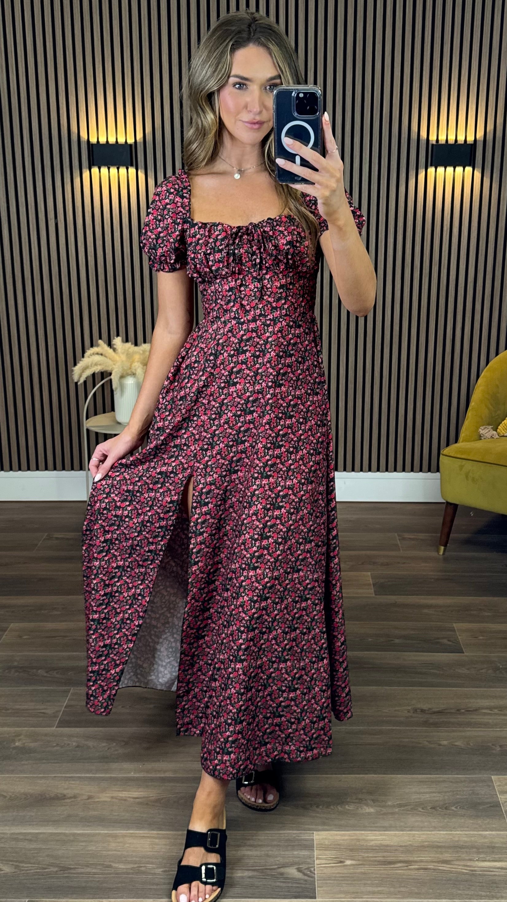 Step into charm with the Alessia Black & Red Floral Milkmaid Midaxi Dress 🌹. Its delicate floral pattern and flattering milkmaid silhouette create a graceful look perfect for any occasion. The midi length adds a touch of elegance, while the soft fabric ensures comfort all day long. Embrace your lovely side with this timeless dress that brings a splash of romance to your wardrobe.